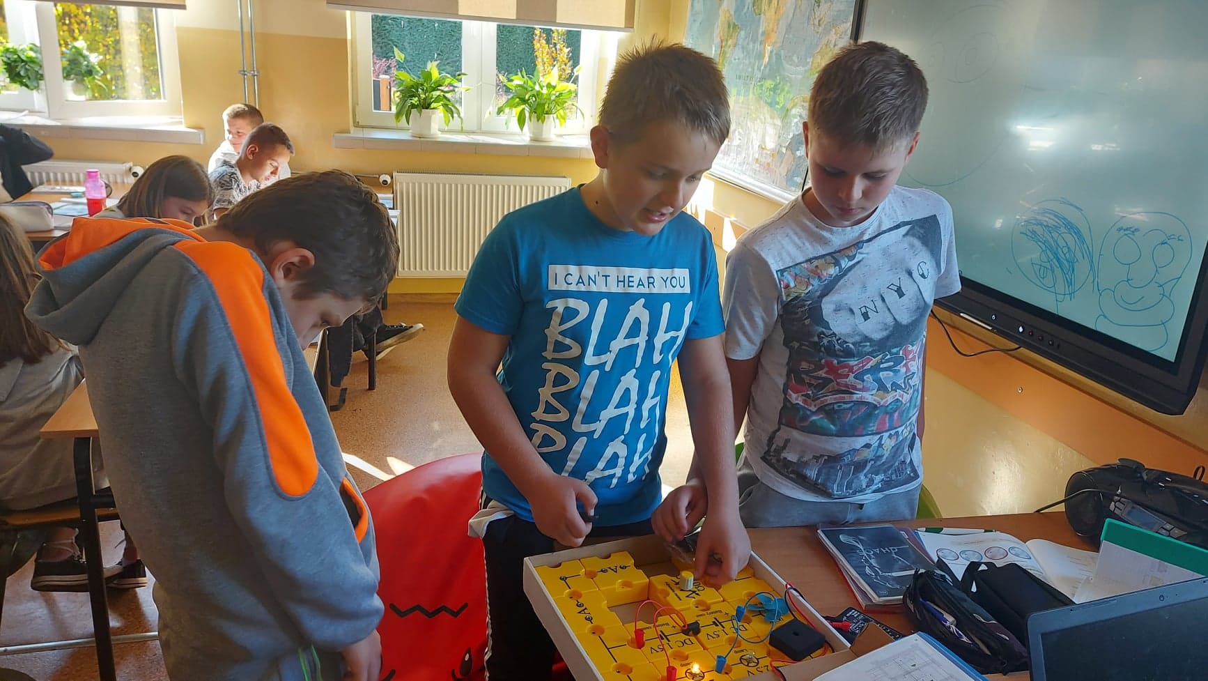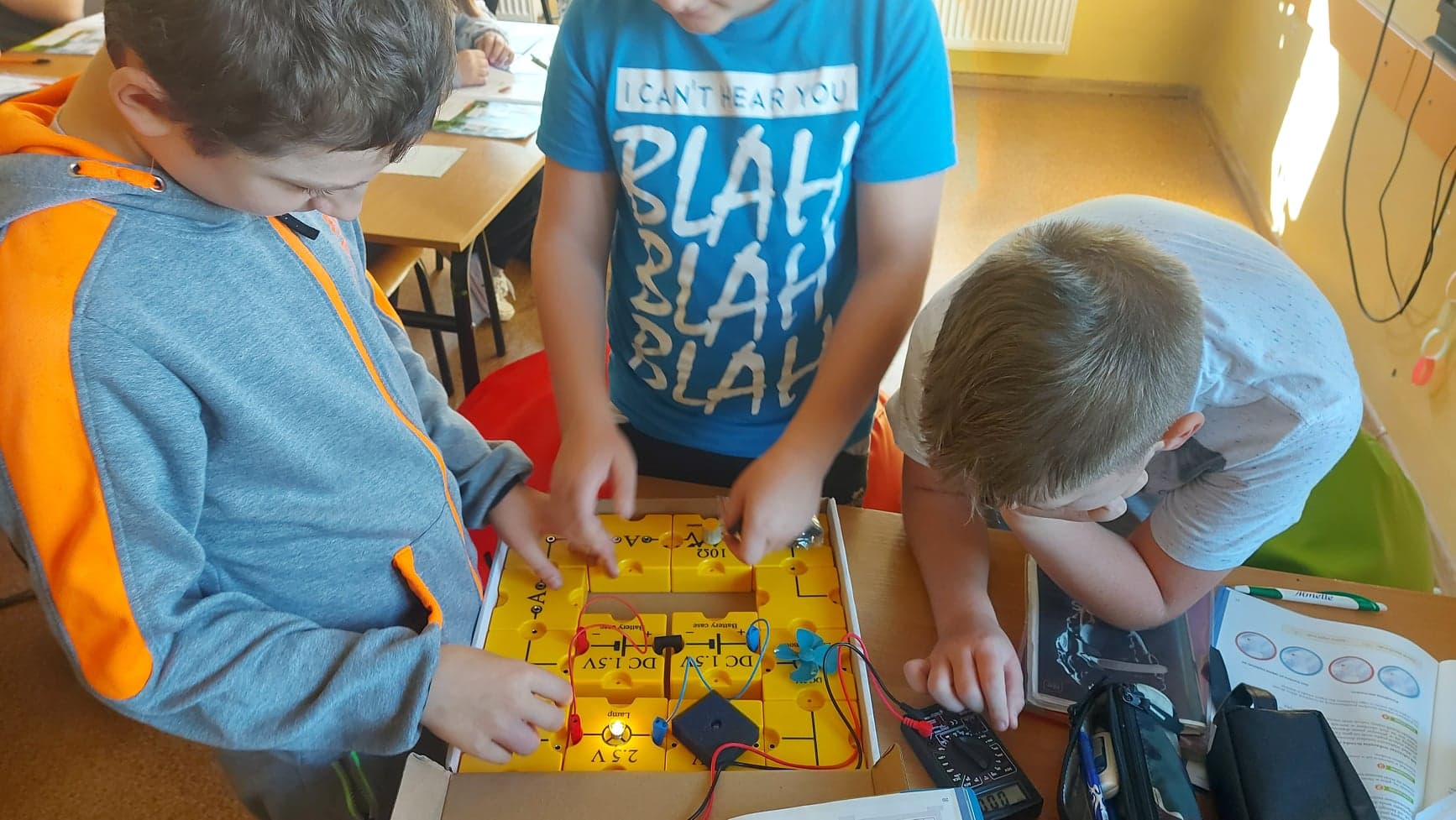 Pozyskane lupy są na bieżąco wykorzystywane przez różnych uczniów w ramach zajęć przyrodniczych. Starsi uczniowie na technice tworzyli własne obwody elektryczne. Klasa 7 na lekcjach chemii miała okazję wykorzystać zestaw doswiadczalny. Badano jakość i właściwości fizyczne powietrza.