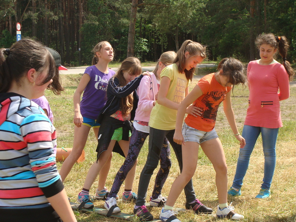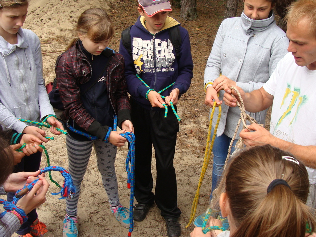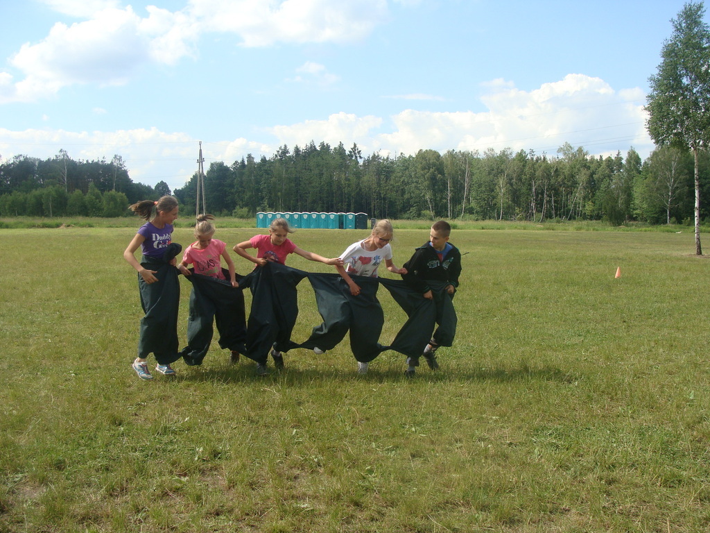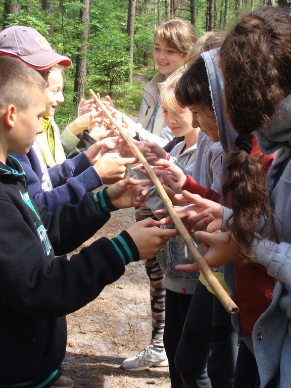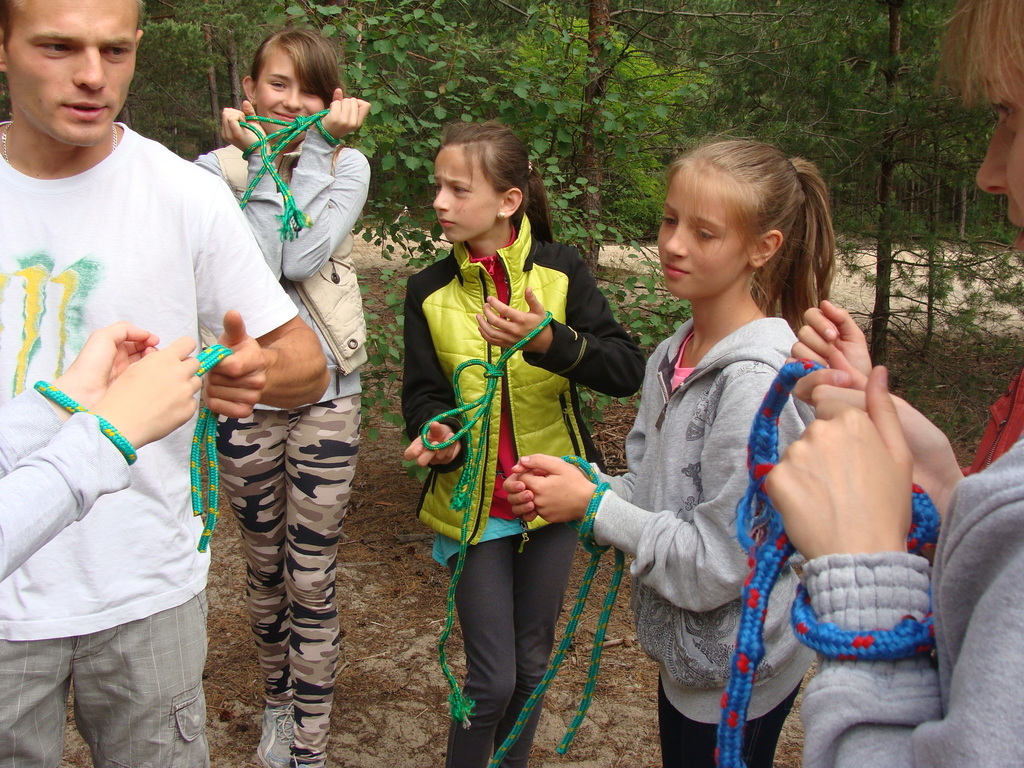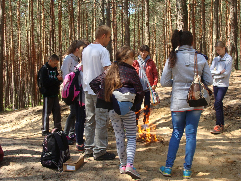 Po tych zmaganiach był czas na posiłek - pieczenie kiełbasek przy ognisku. Po nabraniu sił uczniowie integrowali się poprzez wykonywanie konkurencji w zespołach i ćwiczenia na siłowni na świeżym powietrzu.