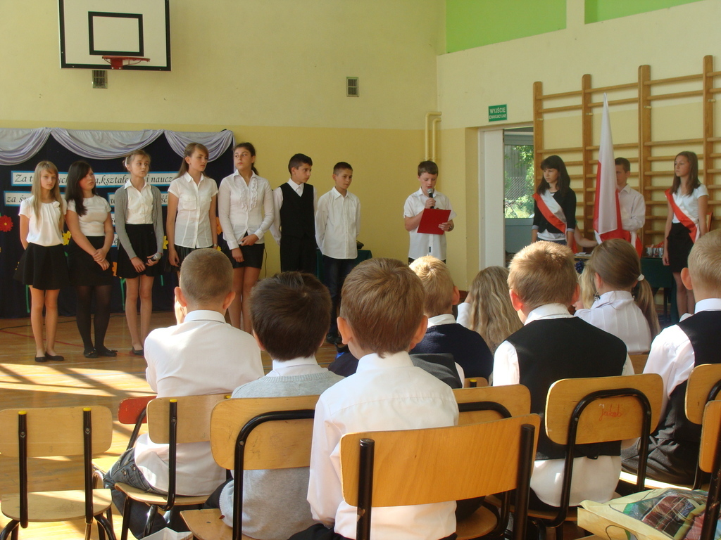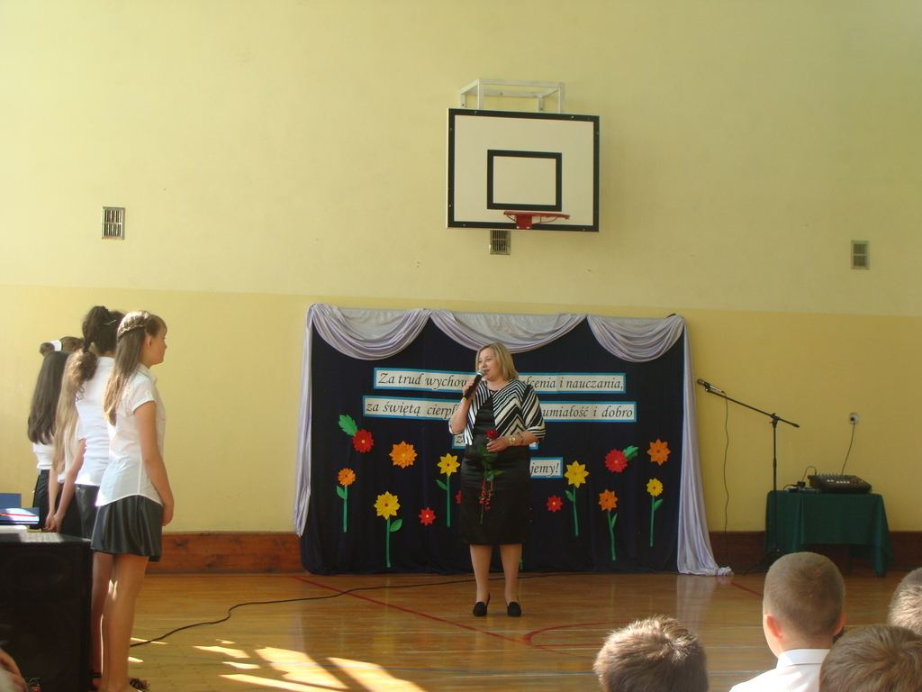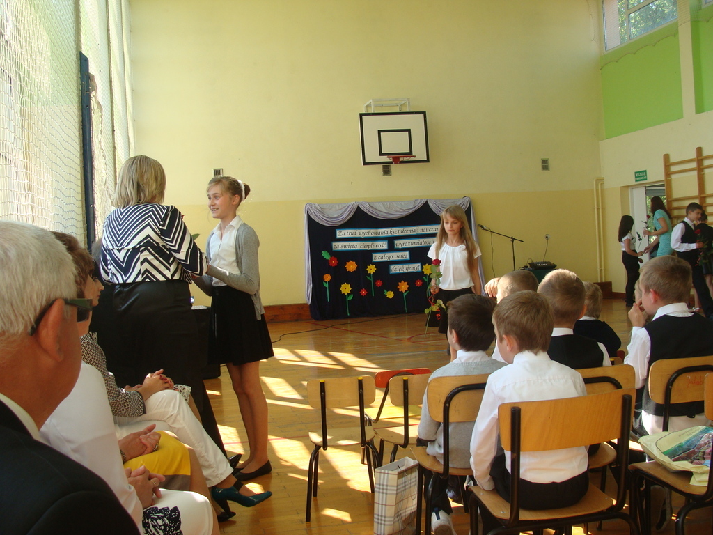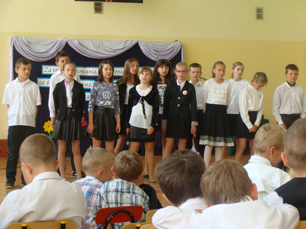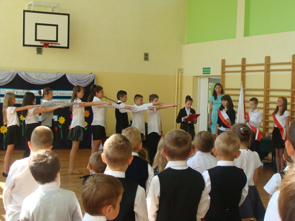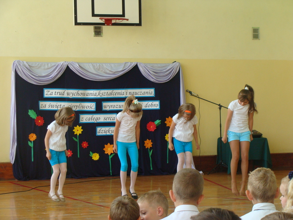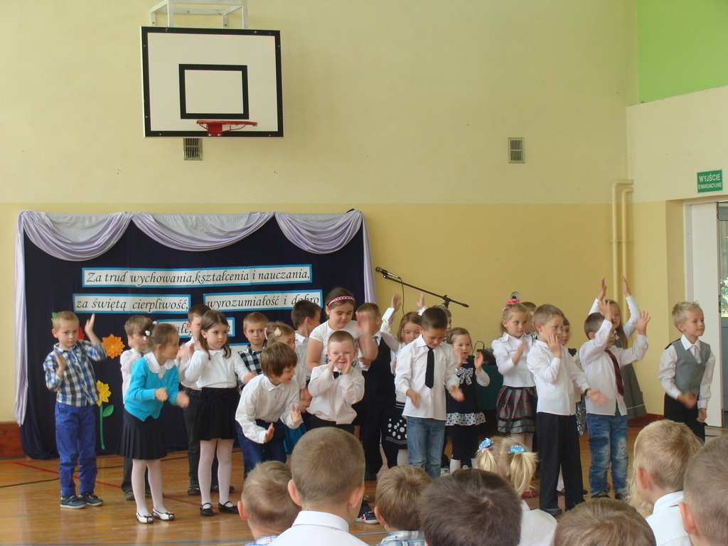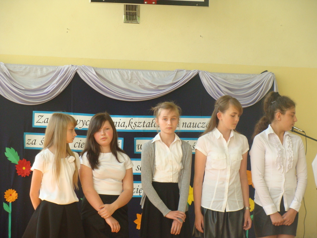 Wszyscy odśpiewali hymn państwowy, a w dalszej części uczniowie klasy szóstej zaprezentowali się w ciekawym programie artystycznym. Podziękowali nauczycielom za pomoc w zdobywaniu wiedzy, innym pracownikom za życzliwość, rodzicom za wsparcie.
