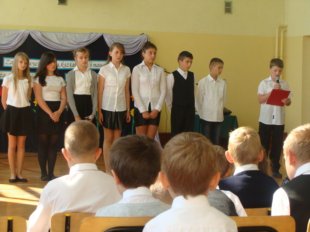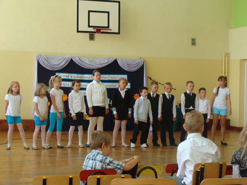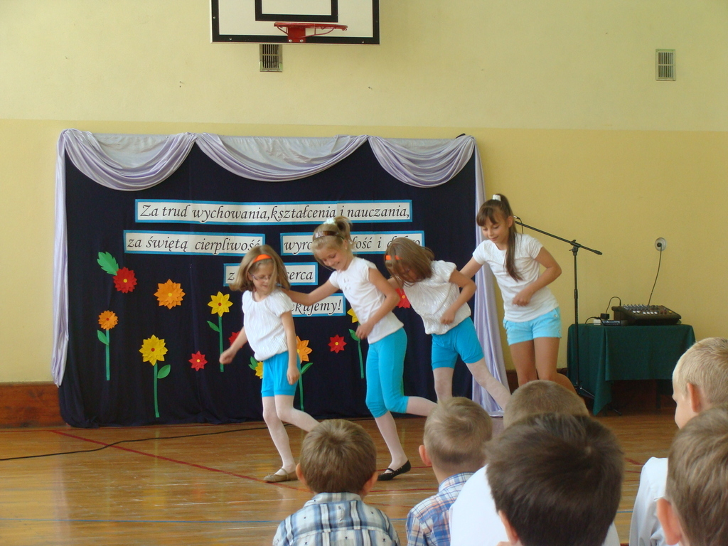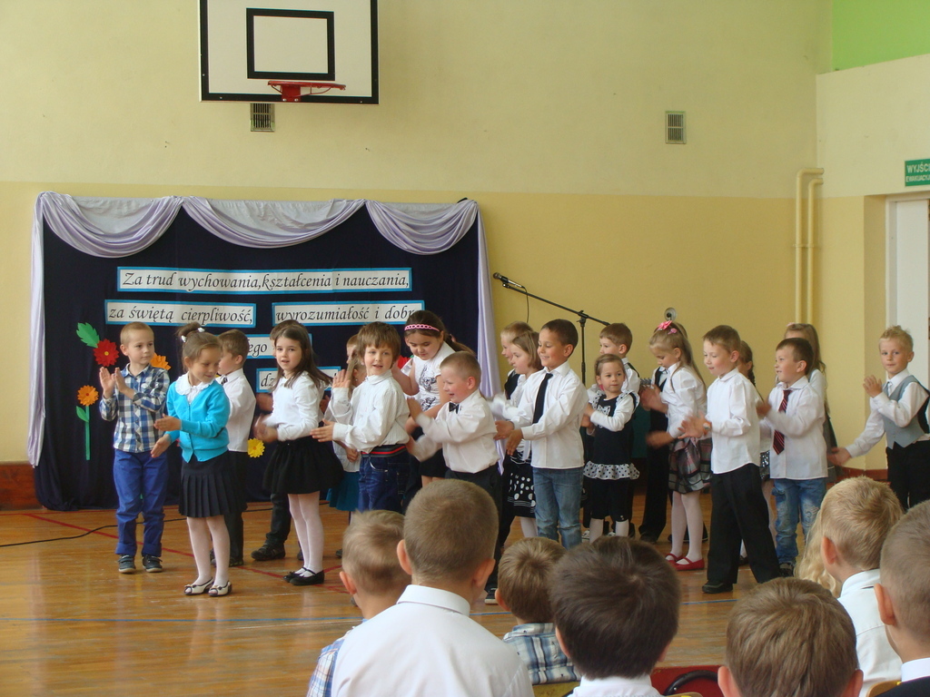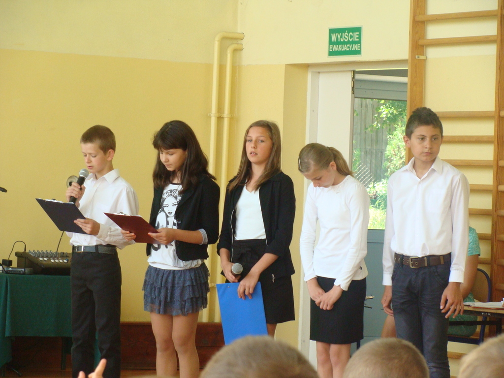 Po wręczeniu nagród wszyscy obejrzeli montaż słowno-muzyczny w wykonaniu uczniów klasy trzeciei, czwartej, piątej i wychowanków oddziału przedszkolnego.
