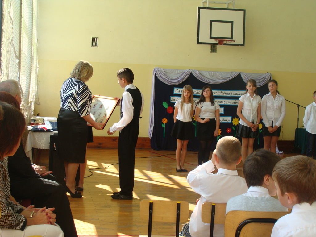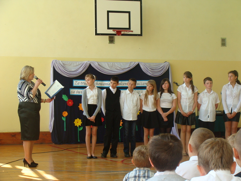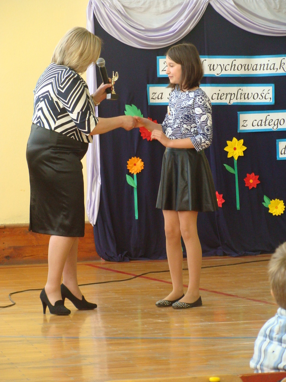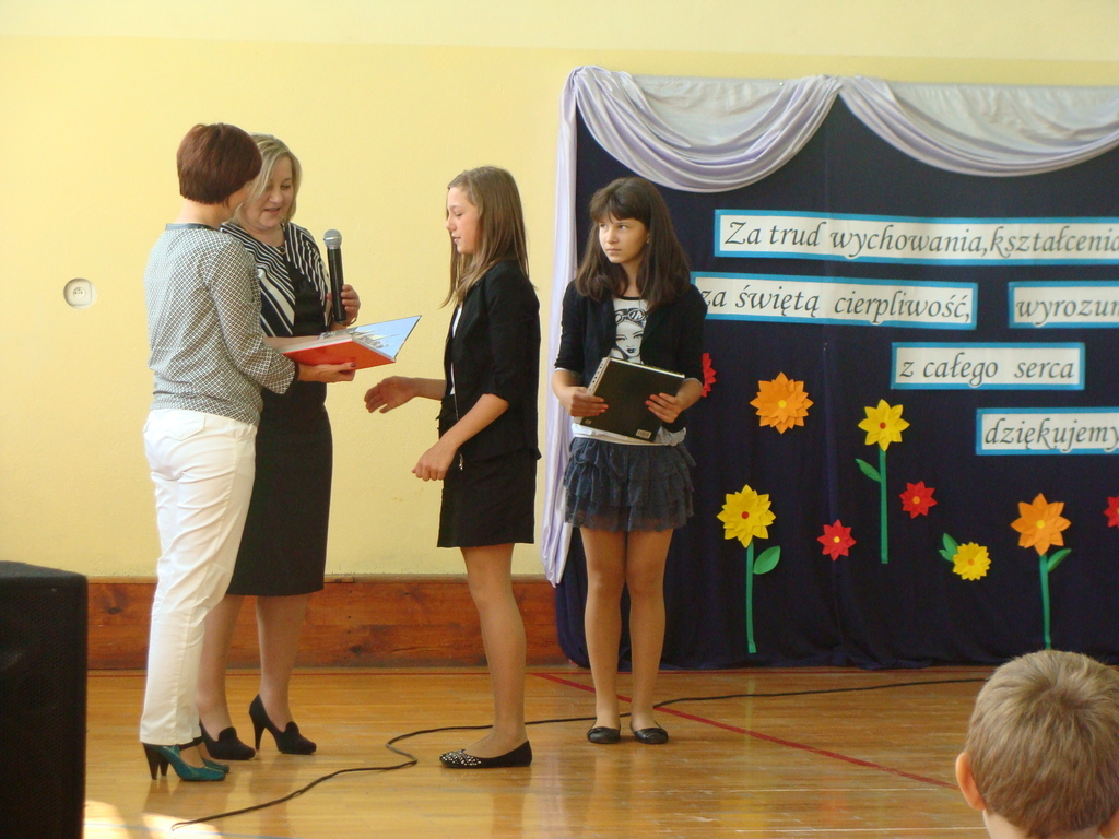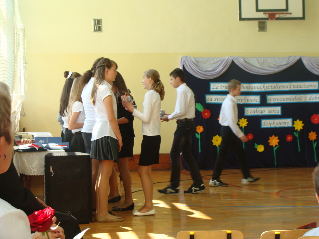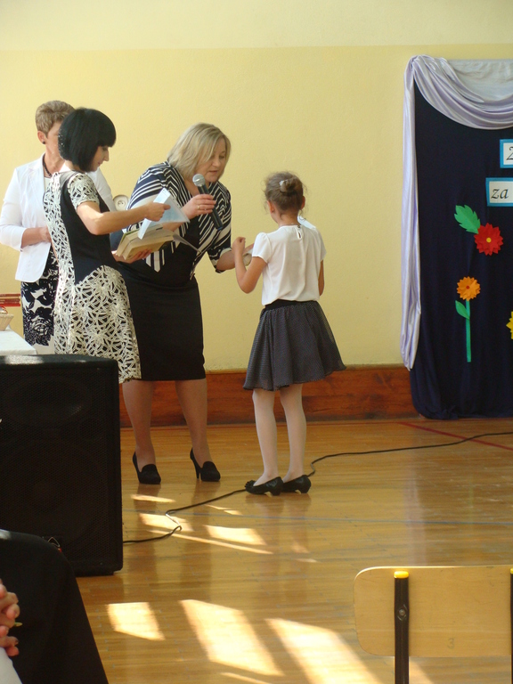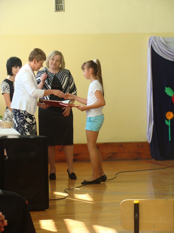 Podczas uroczystej akademii dyrektor szkoły z wychowawcami poszczególnych klas wręczyła świadectwa z wyróżnieniem oraz nagrody uczniom, którzy w tym roku szkolnym osiągnęli najwyższe wyniki w nauce, za wzorową frekwencję, za działalność w Samorządzie Uczniowskim, osiągnięcia sportowe i prace na rzecz szkoły.