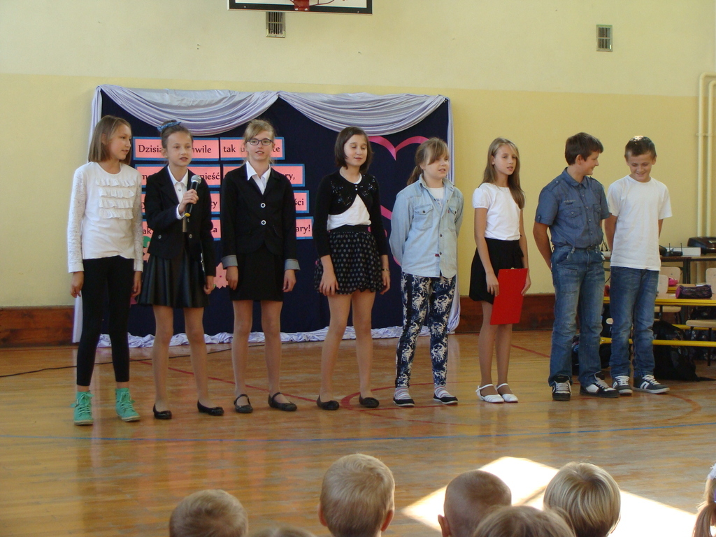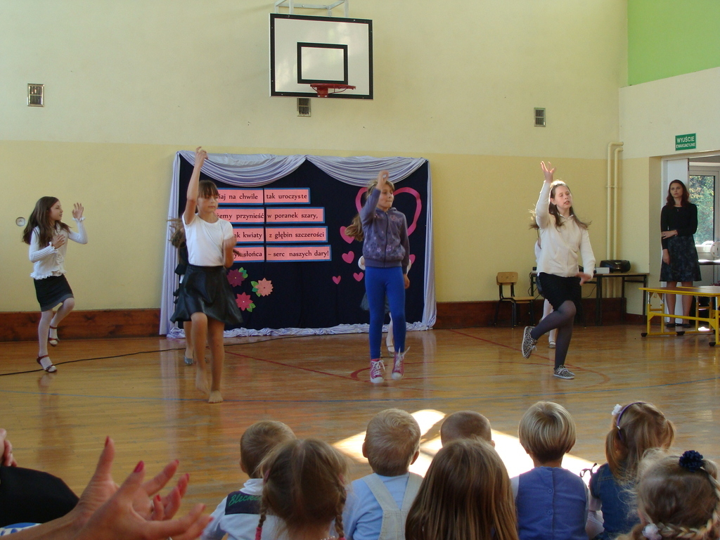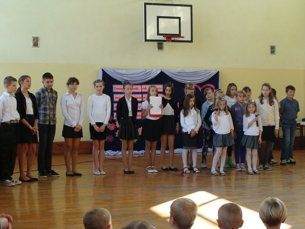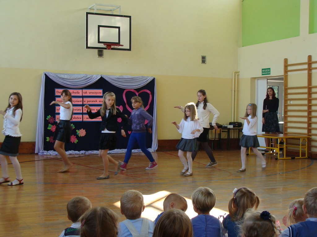 14 października wszyscy nauczyciele, pracownicy szkoły i uczniowie obchodzili uroczyście Dzień Edukacji Narodowej. Podczas akademii został zaprezentowany program artystyczny, w którym uczniowie z klasy czwartej, piątej i szóstej odtworzyli - gestem, słowem i piosenką - klimat szkolnego życia.
