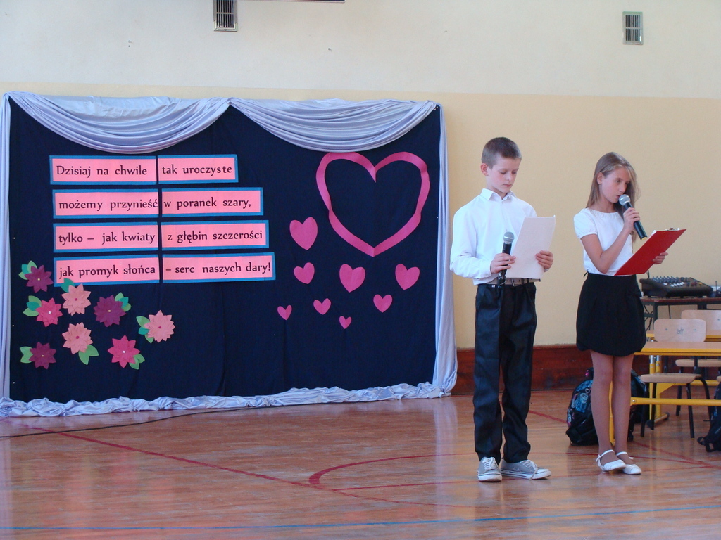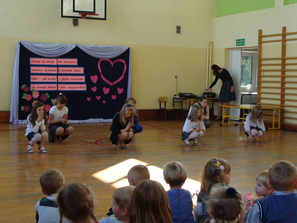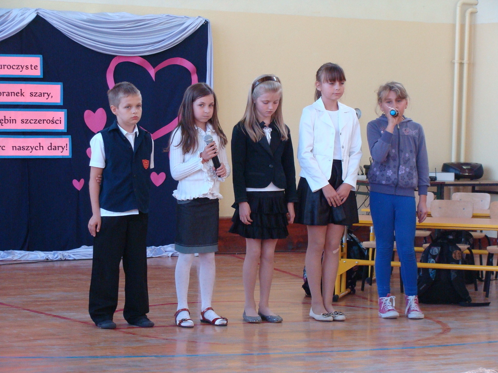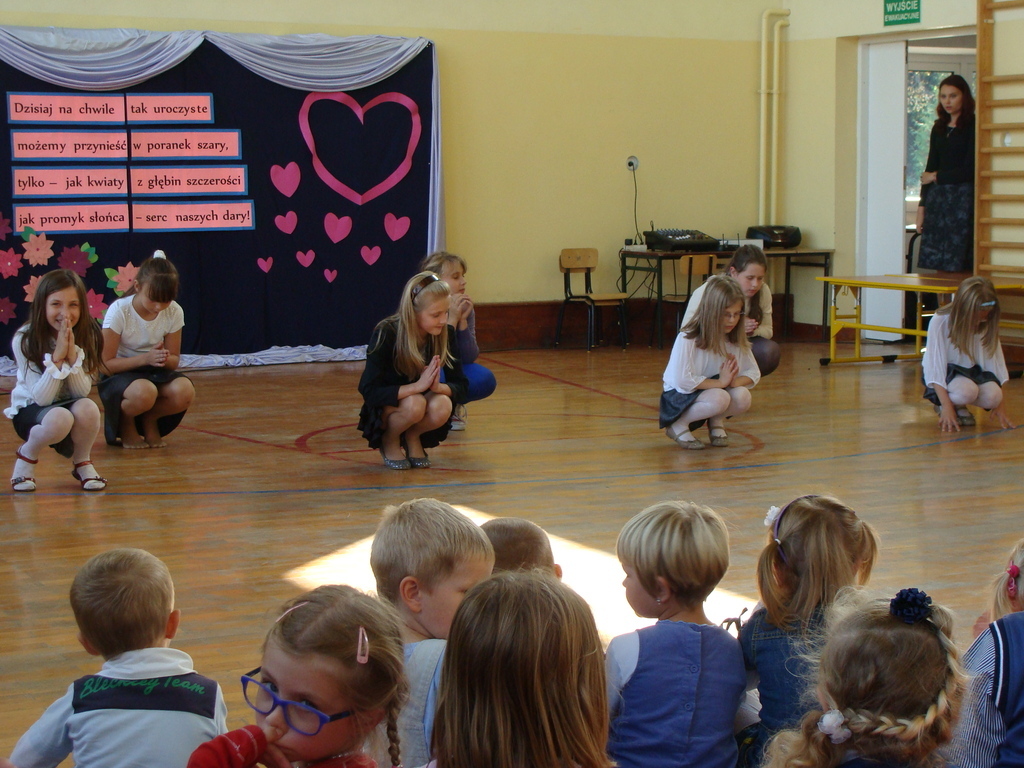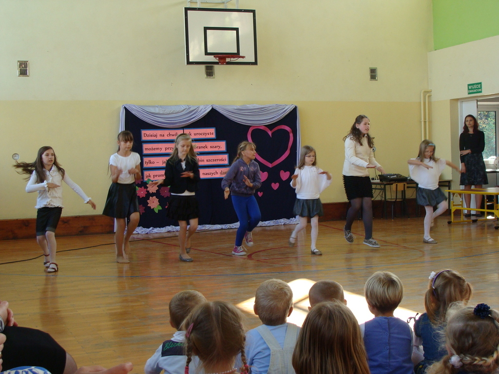 14 października wszyscy nauczyciele, pracownicy szkoły i uczniowie obchodzili uroczyście Dzień Edukacji Narodowej. Podczas akademii został zaprezentowany program artystyczny, w którym uczniowie z klasy czwartej, piątej i szóstej odtworzyli - gestem, słowem i piosenką - klimat szkolnego życia.
