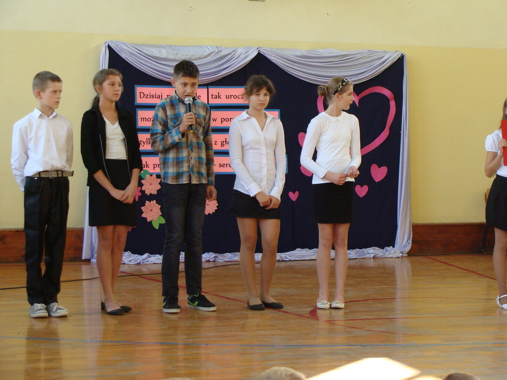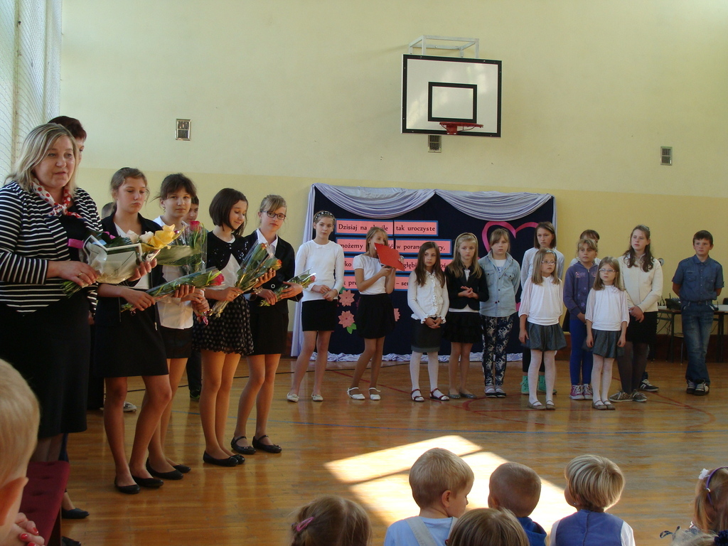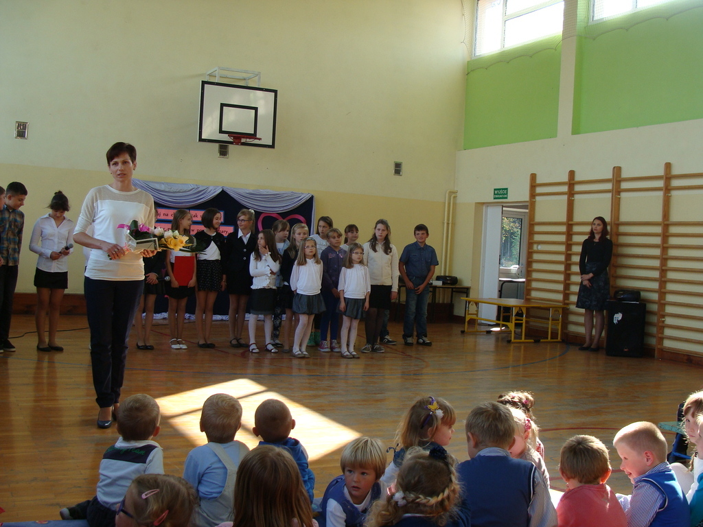 Przewodnicząca Rady Rodziców pani Małgorzata Hasiak złożyła gorące życzenia i podziękowania za trud włożony w kształtowanie młodego pokolenia, a uczniowie wręczyli kwiaty wszystkim pracownikom szkoły.