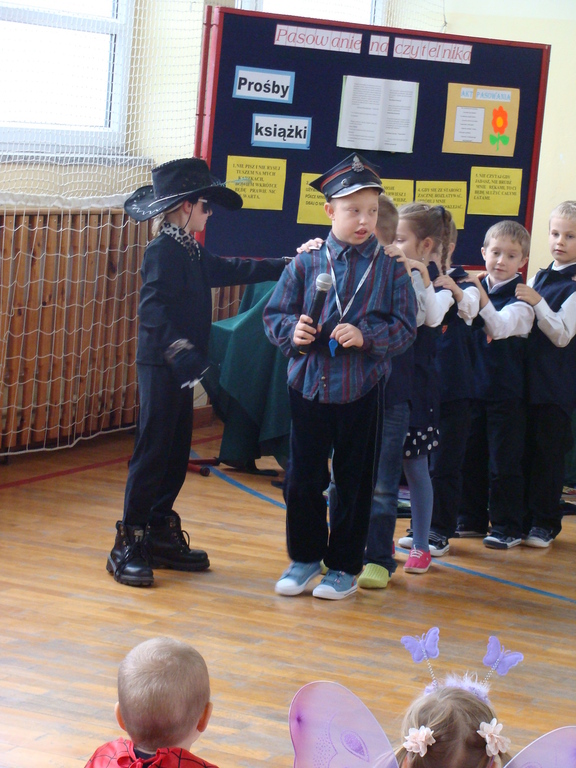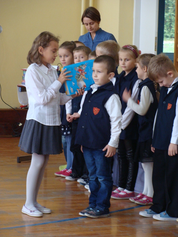 27 listopada szesnaścioro uczniów klasy pierwszej zostało pasowanych na czytelników biblioteki szkolnej. Uroczystość została przygotowana przez uczniów klasy drugiej i trzeciej pod kierunkiem pani Marioli Zielonki - nauczyciela bibliotekarza.