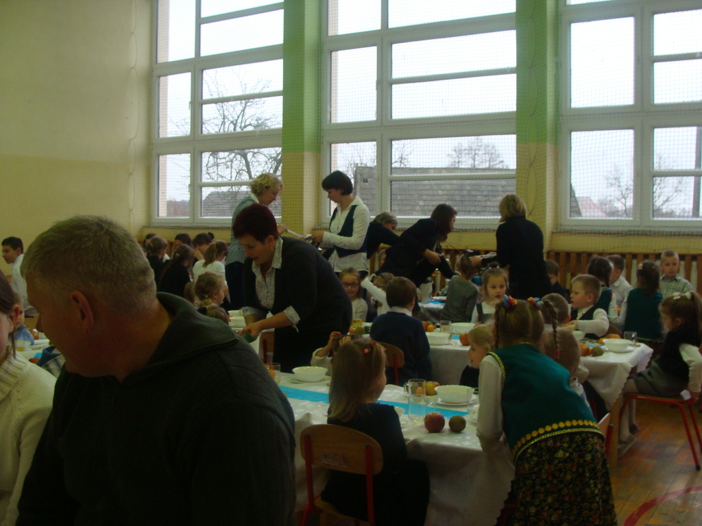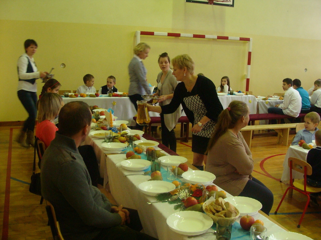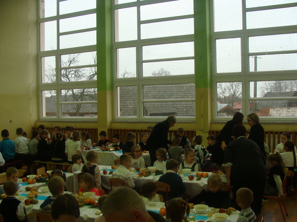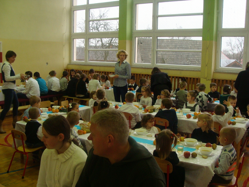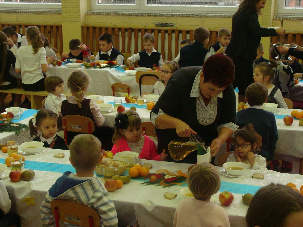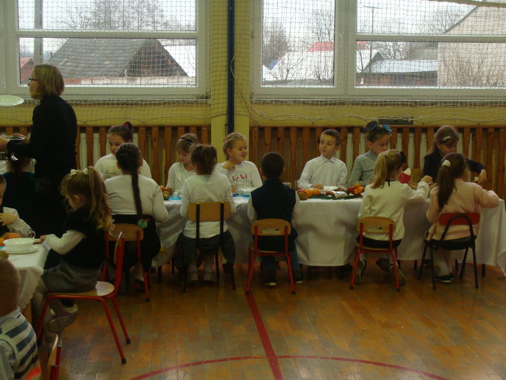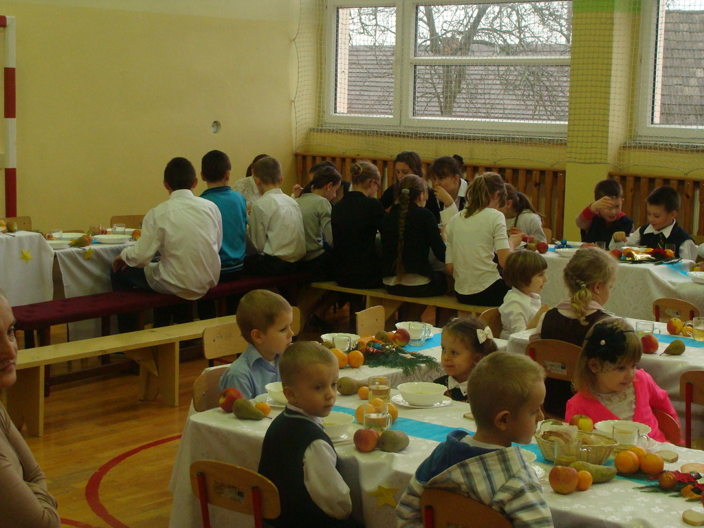Po obejrzeniu przedstawienia odbyło się wspólne dzielenie opłatkiem i poczęstunek.
