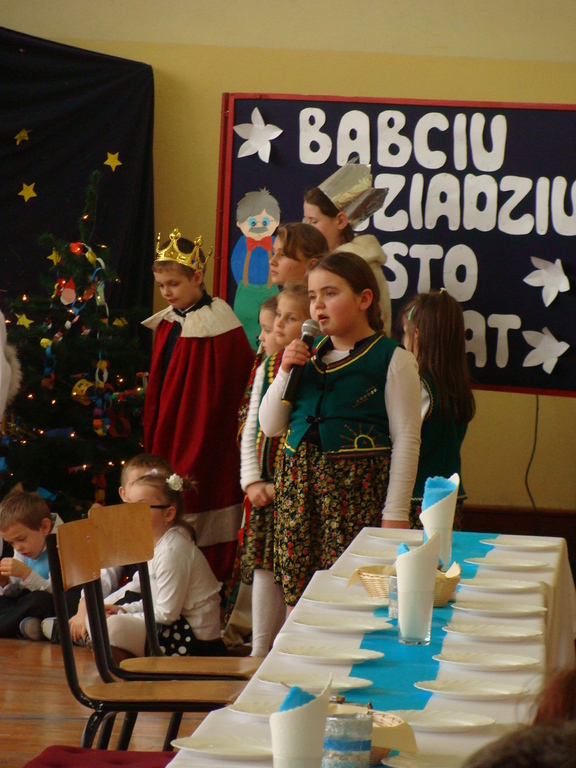 Od wielu juz lat w kalendarz uroczystości szkolnych wpisany jest Dzień Babci i Dziadka. Uroczyste spotkanie z tej okazji odbyło się 21 stycznia. W przygotowanie uroczystości zaangażowali się wychowawcy, nauczyciele, wszyscy uczniowie, wychowankowie i rodzice. Uczniowie klas starszych zaprezentowali licznie przybyłym gościom Jasełka, a wychowankowie punktu przedszkolnego, oddziału przedszkolnego oraz uczniowie klas I-III zaśpiewali piosenki.