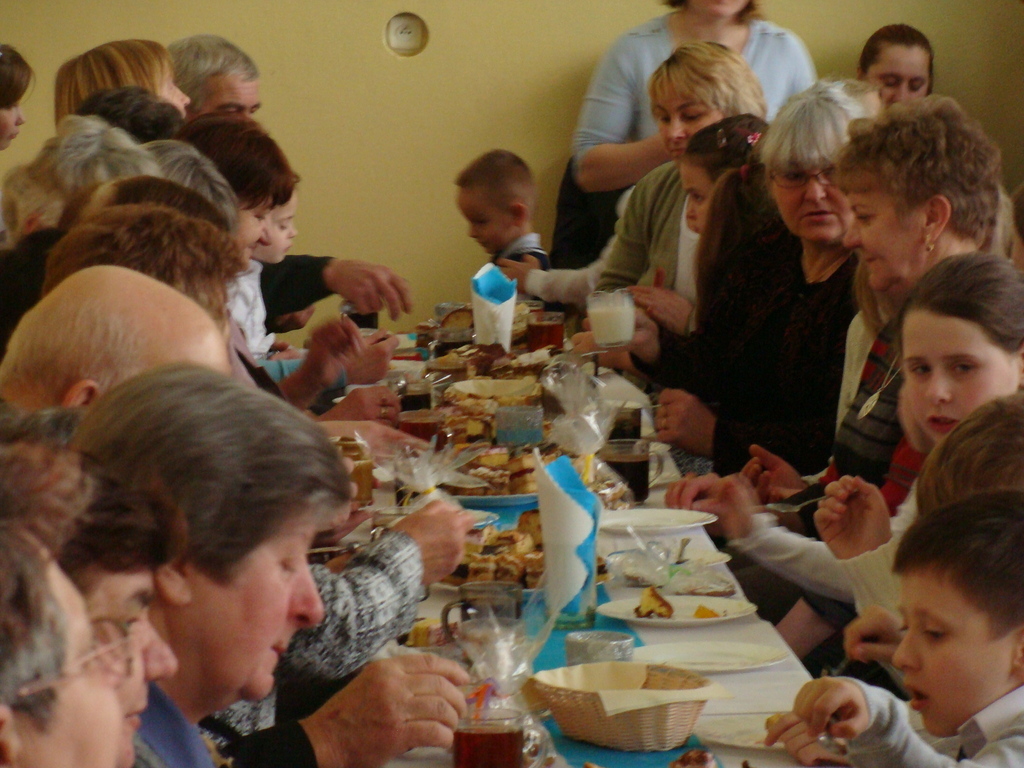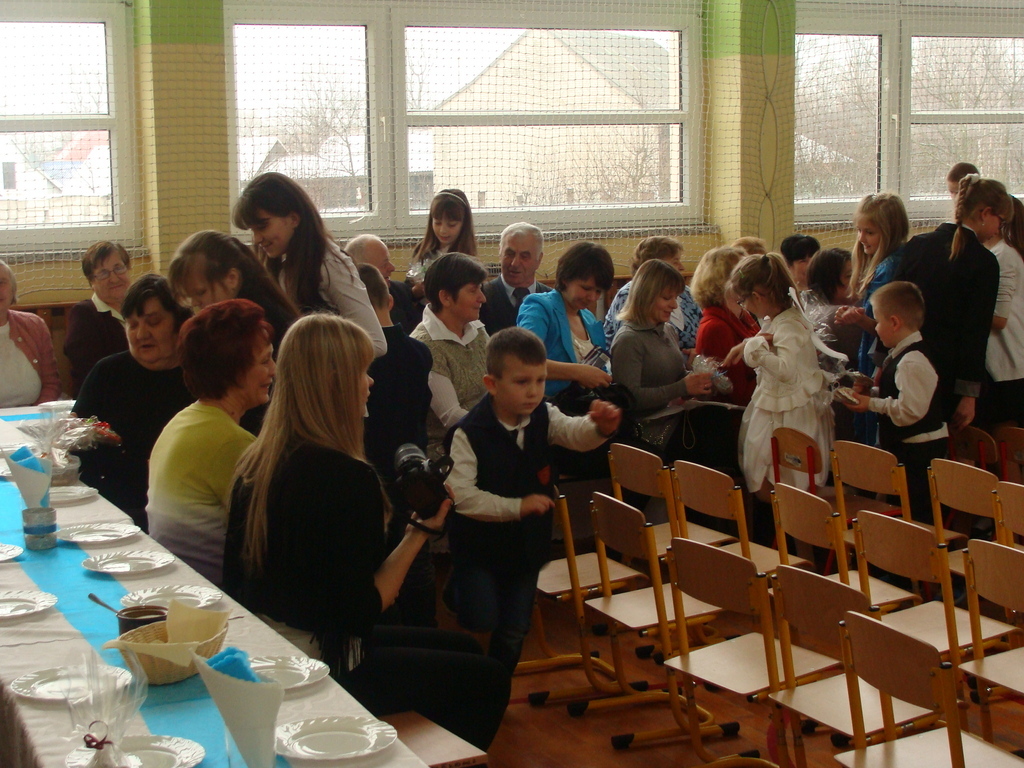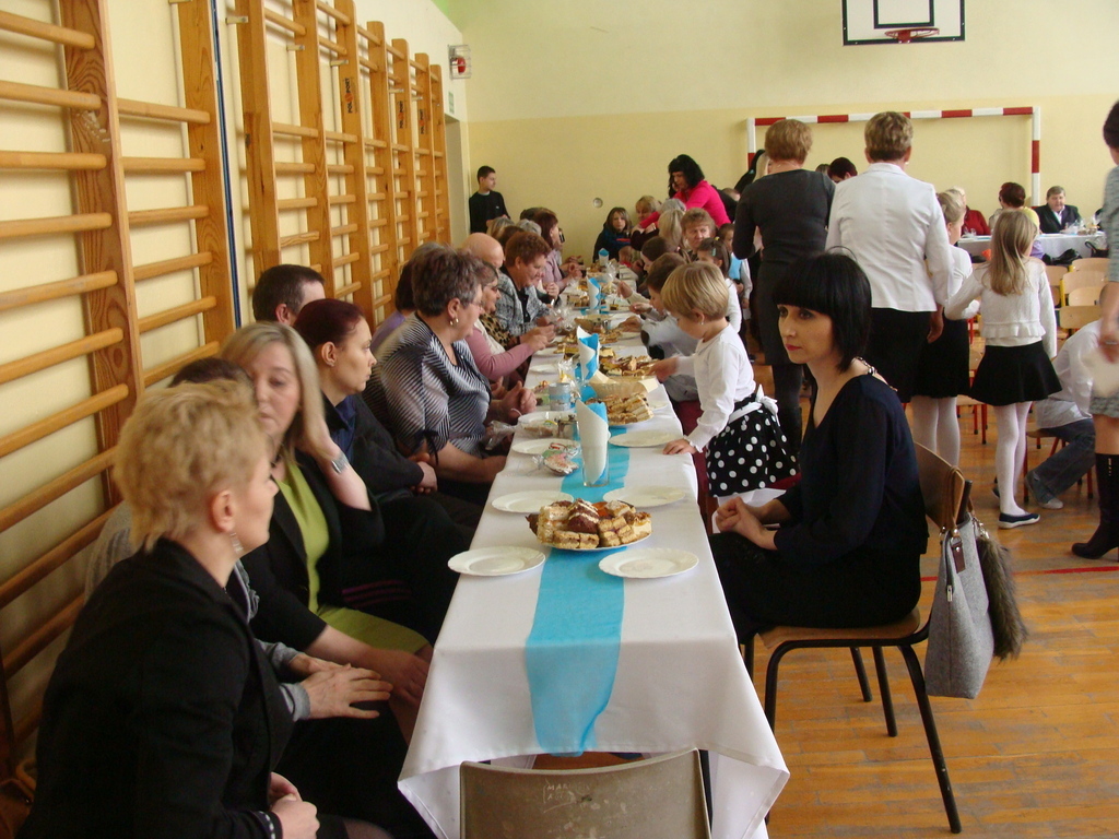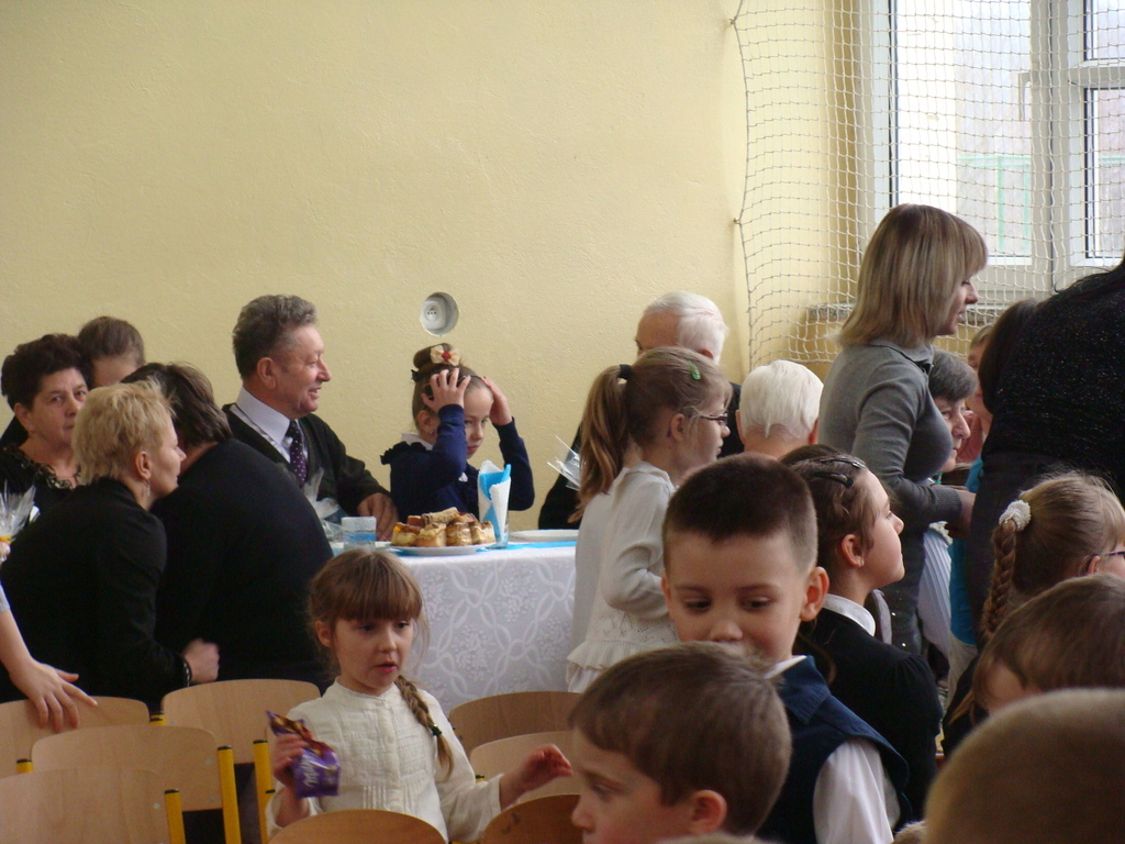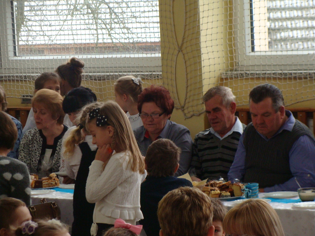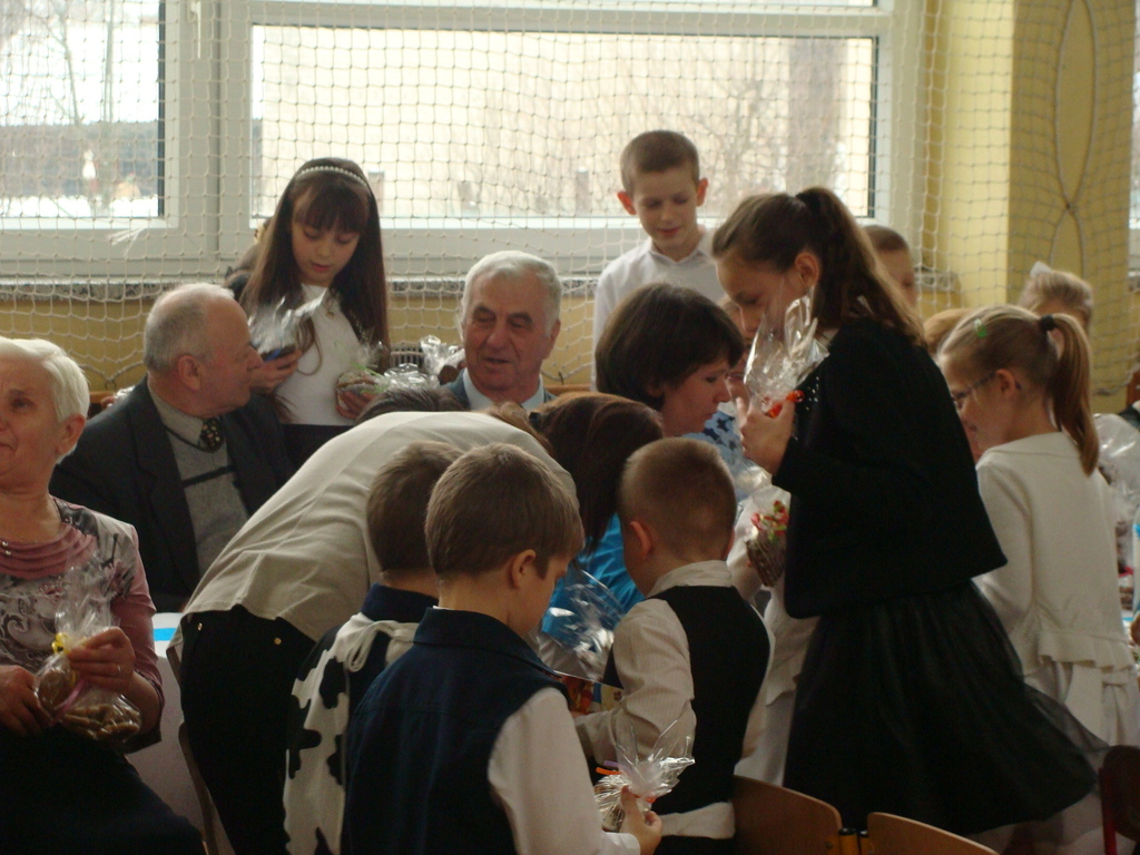Na zakończenie części artystycznej dzieci wręczyły babciom i dziadkom słodkie upominki. Następnie goście zostali zaproszeni na słodki poczęstunek przygotowany przez rodziców, który był okazją do rozmów oraz dzielenia się wrażeniami.