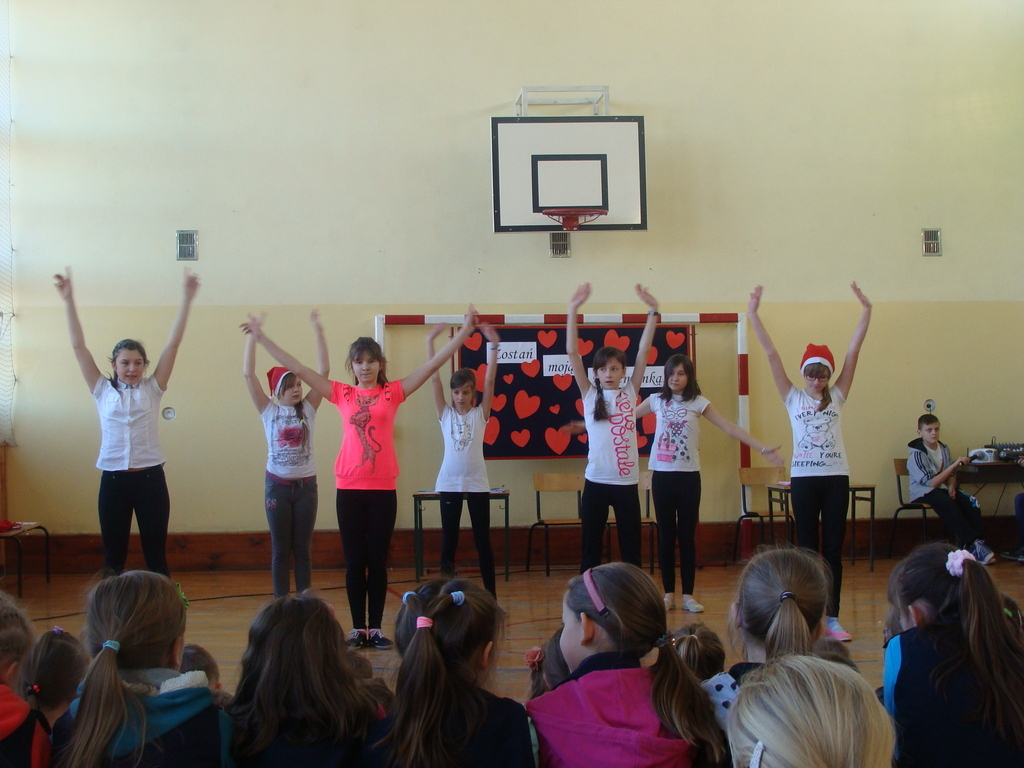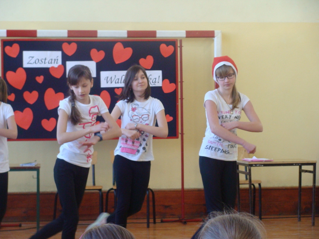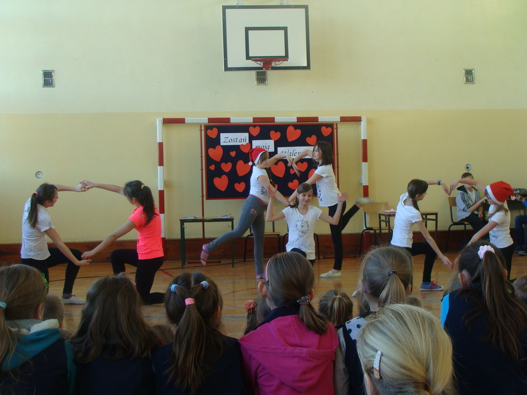Walentynki to jedno z ulubionych świąt dzieci i młodzieży. 16 lutego Samorząd Uczniowski pod kierunkiem opiekunów zaprezentował część artystyczną z okazji tego święta, utrzymaną w konwencji kabaratowej. Młodzi aktorzy przedstawiali scenki z życia zakochanych, a uczennice z klasy szóstej i piątej zatańczyły dla wszystkich zebranych.