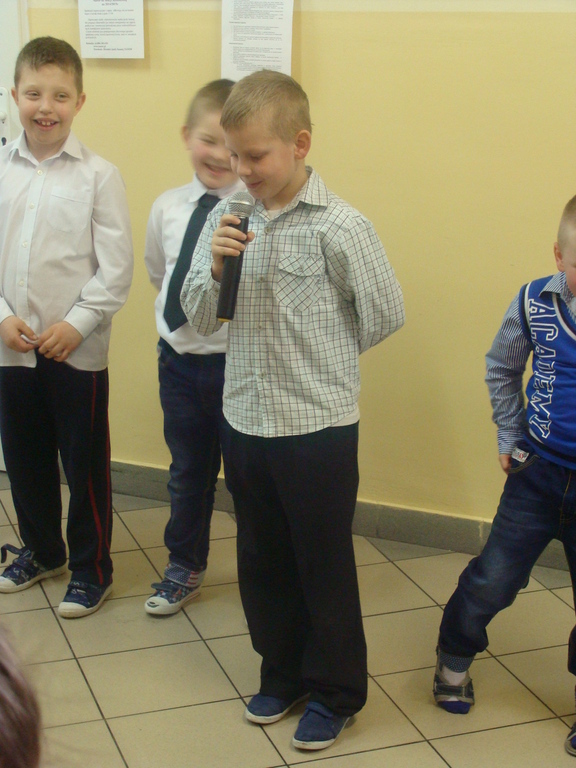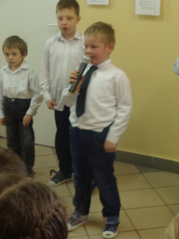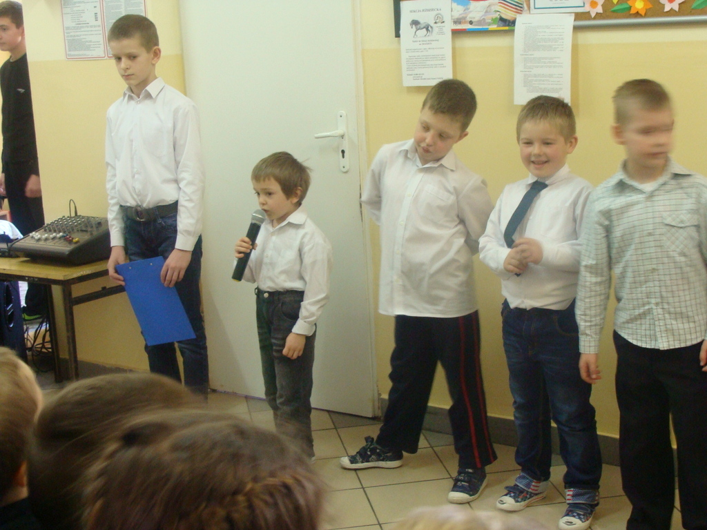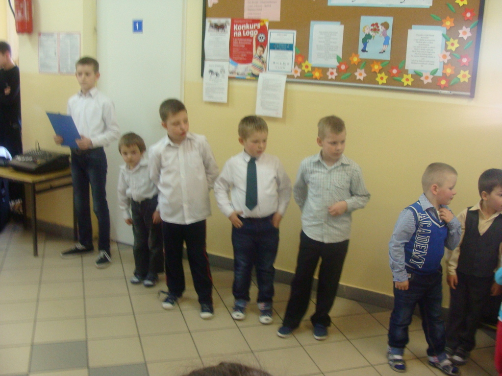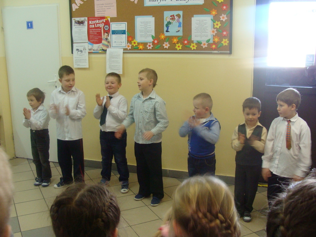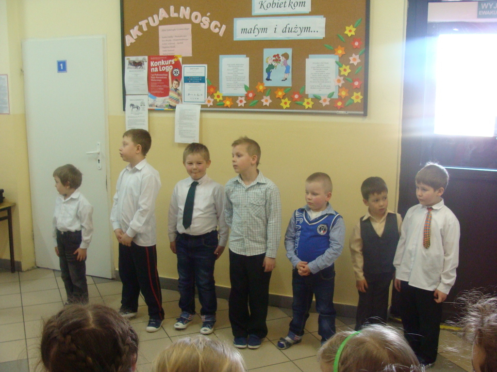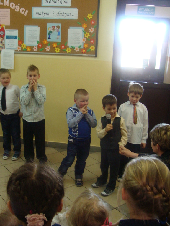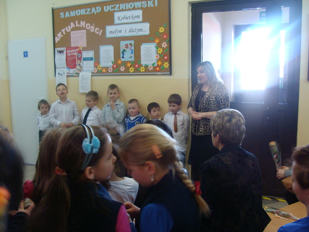 Chłopcy recytowali wiersze, a dziewczęta z klasy piątej i szóstej śpiewały piosenki tematyczne. Na zakończenie popłynęła moc gorących życzeń dla wszystkich pań i dziewcząt, a chłopcy wręczyli słodkie upominki. Wszystkie panie zostały również obdarowane różami przez pana konserwatora.