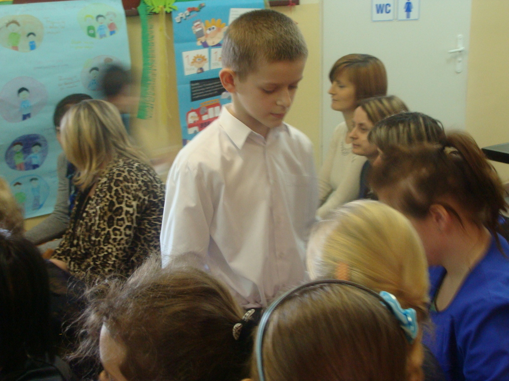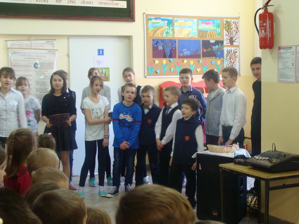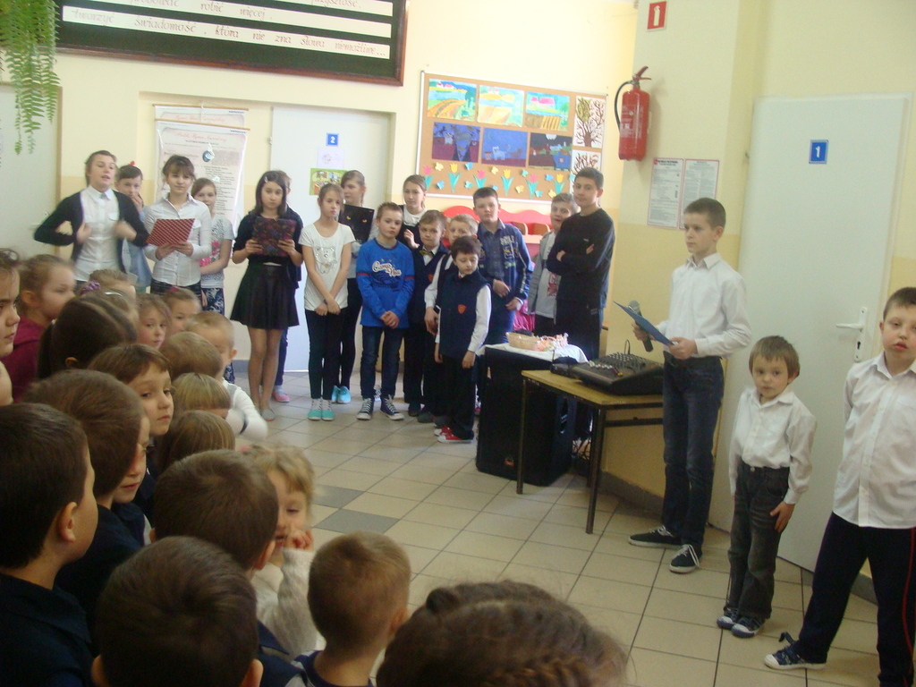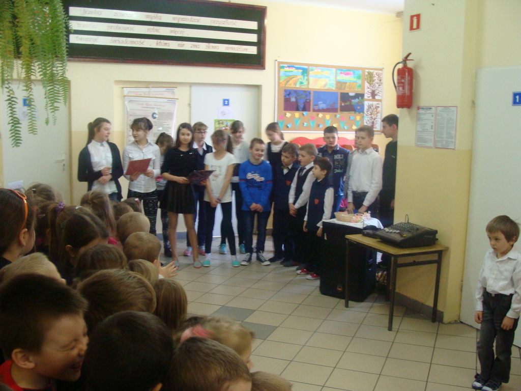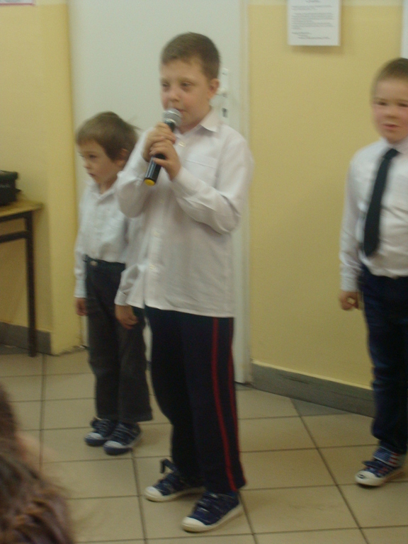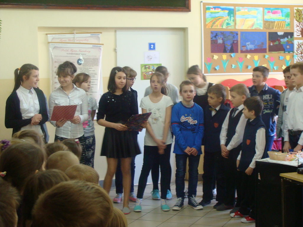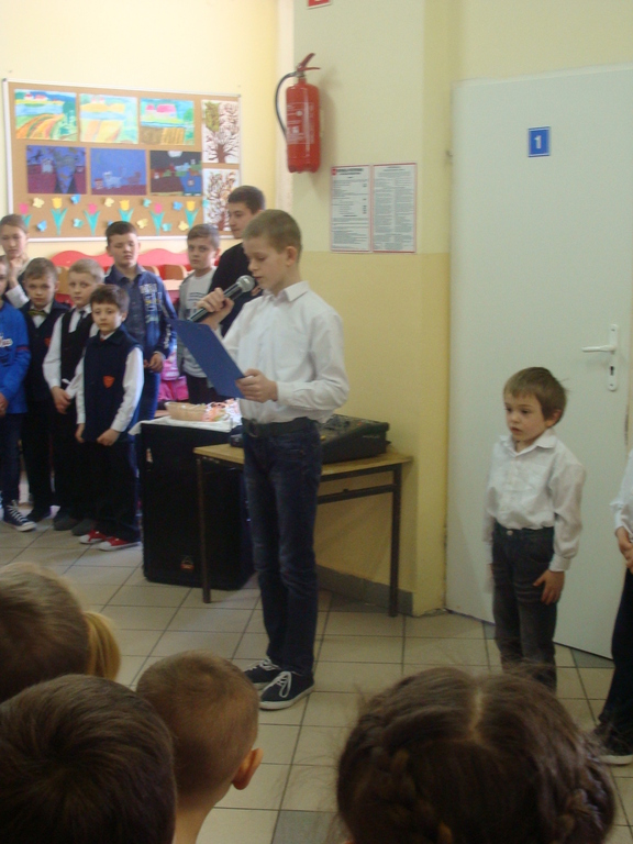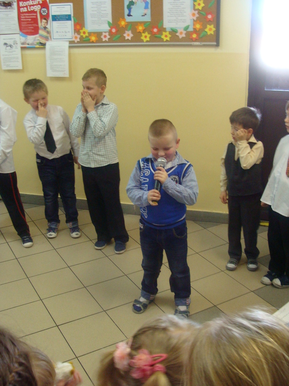 Chłopcy recytowali wiersze, a dziewczęta z klasy piątej i szóstej śpiewały piosenki tematyczne. Na zakończenie popłynęła moc gorących życzeń dla wszystkich pań i dziewcząt, a chłopcy wręczyli słodkie upominki. Wszystkie panie zostały również obdarowane różami przez pana konserwatora.