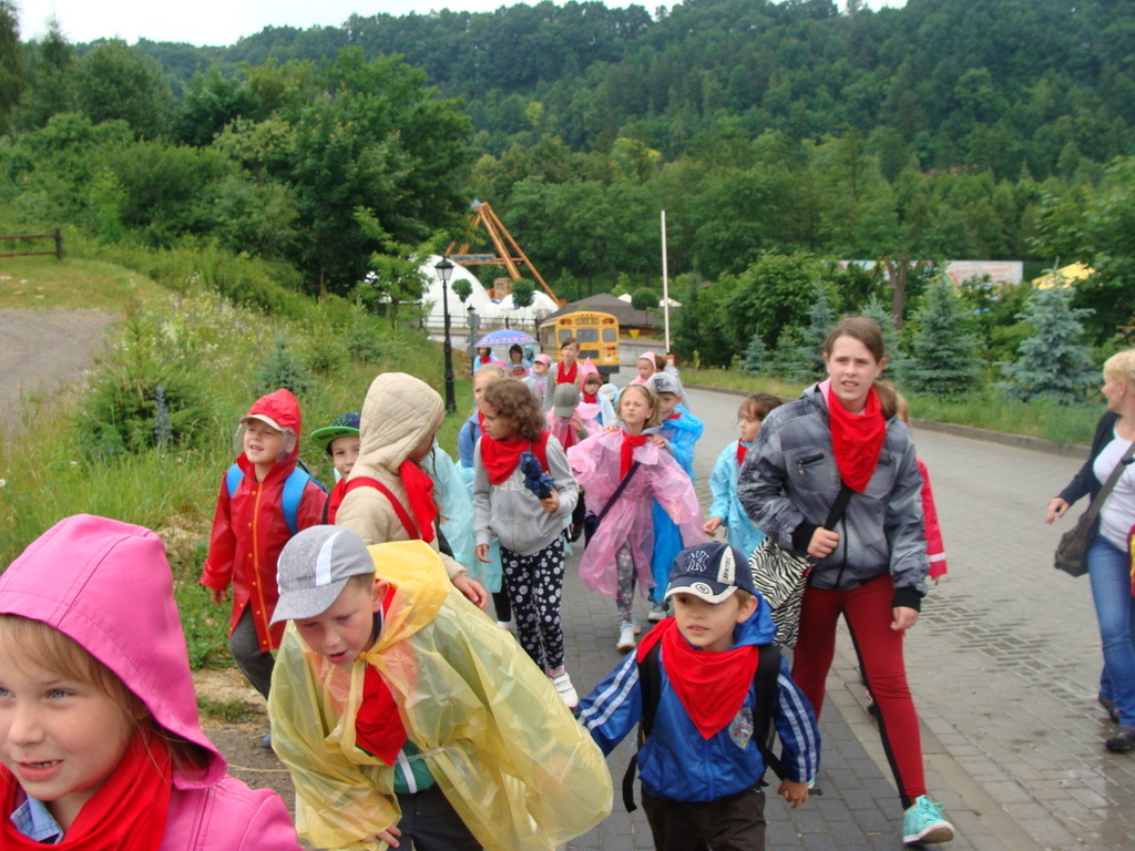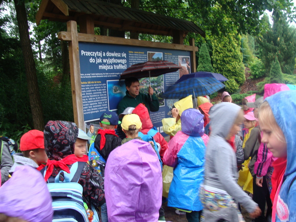 19 czerwca wychowankowie oddziału przedszkolnego, uczniowie klas I-III i niektórzy uczniowie klasy IV i V wraz z wychowawcami wyjechali na wycieczkę do Bałtowa. Niestety, w Bałtowie na uczestników wycieczki czekał... deszcz. Pomimo tego dzieci w kolorowych płaszczykach rozpoczęły zwiedzanie. Pan przewodnik opowiedział o historii powstania parku, gdzie odnaleziono pierwsze ślady dinozaurów oraz wiele ciekawostek z nimi związanych.