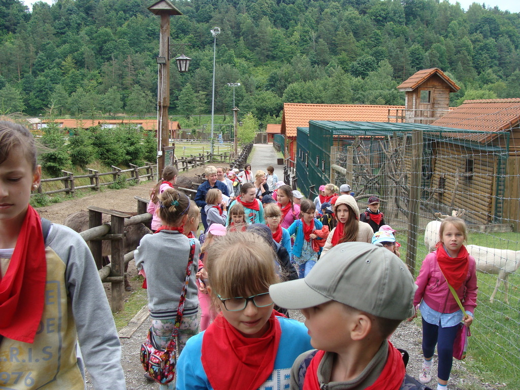 Kiedy pogoda stała się bardziej łaskawa uczestnicy wycieczki pojechali School Busem do Zwierzyńca Bałtowskiego, gdzie mogli podziwiać rzadko spotykane zwierzęta. Po długo wyczekiwanym obiedzie dzieci zwiedziły okolice Bałtowa kolejką bałtowską. Kolejną atrakcją były zabawy na placu zabaw, a nawet odkopywanie szczątków dinozaurów.
