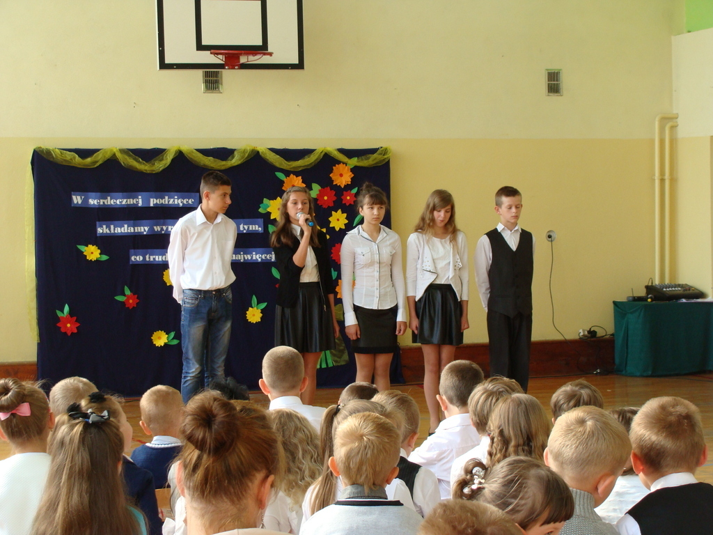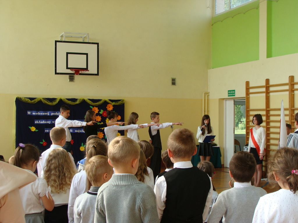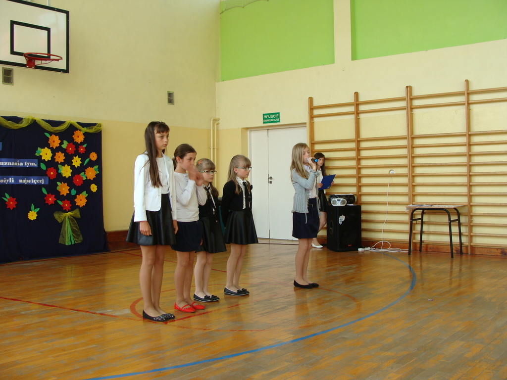 Wszyscy odśpiewali hymn państwowy, a w dalszej części uczniowie klasy szóstej zaprezentowali się w programie artystycznym.