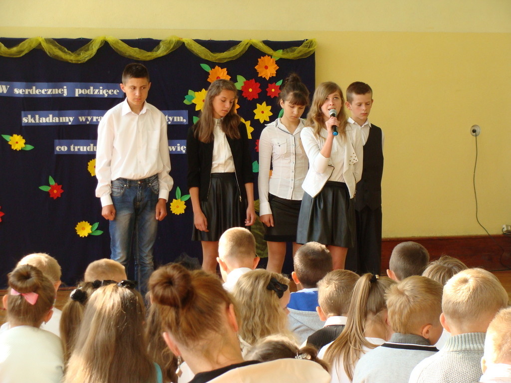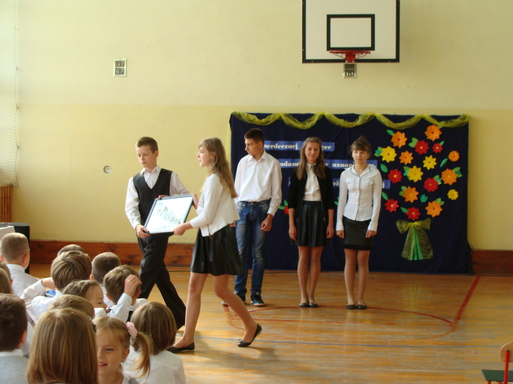 Po wręczeniu nagród wszyscy obejrzeli montaż słowno-muzyczny w wykonaniu uczniów klasy trzeciej i czwartej.