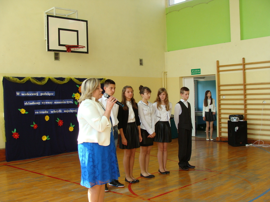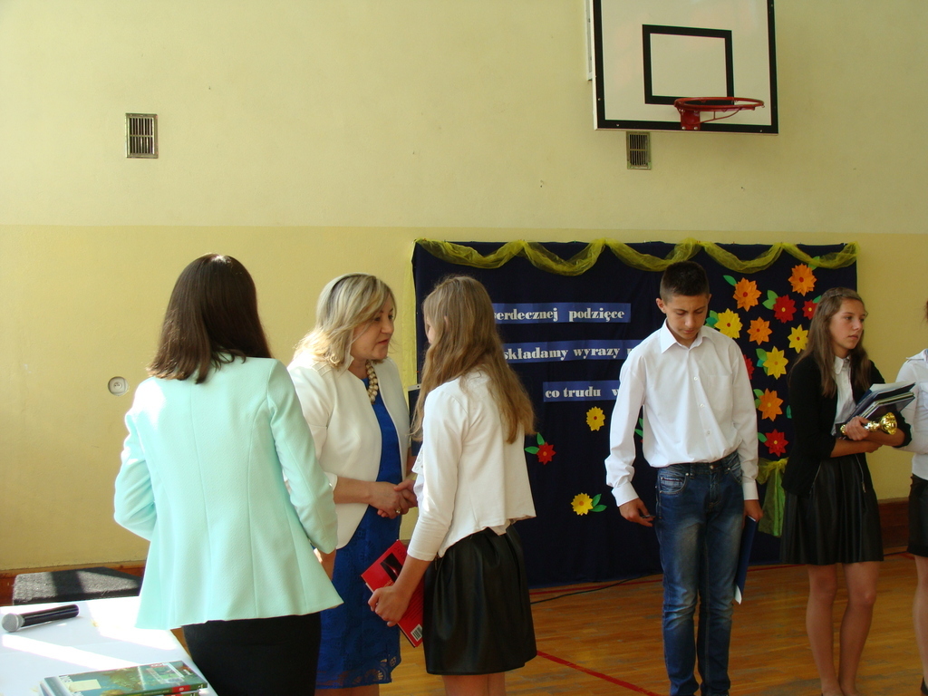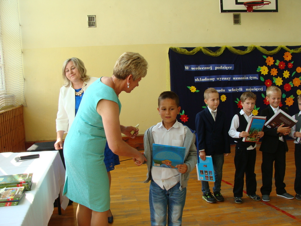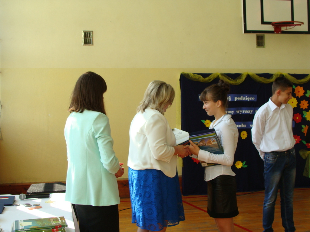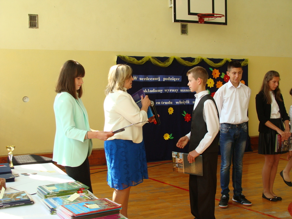 Podczas uroczystej akademii dyrektor szkoły z wychowawcami poszczególnych klas wręczyła świadectwa z wyróżnieniem oraz nagrody uczniom, którzy w tym roku szkolnym osiągnęli najwyższe wyniki w nauce, za wzorową frekwencję, za działalność w Samorządzie Uczniowskim, osiągnięcia sportowe i godne reprezetnowanie szkoły w środowisku lokalnym.