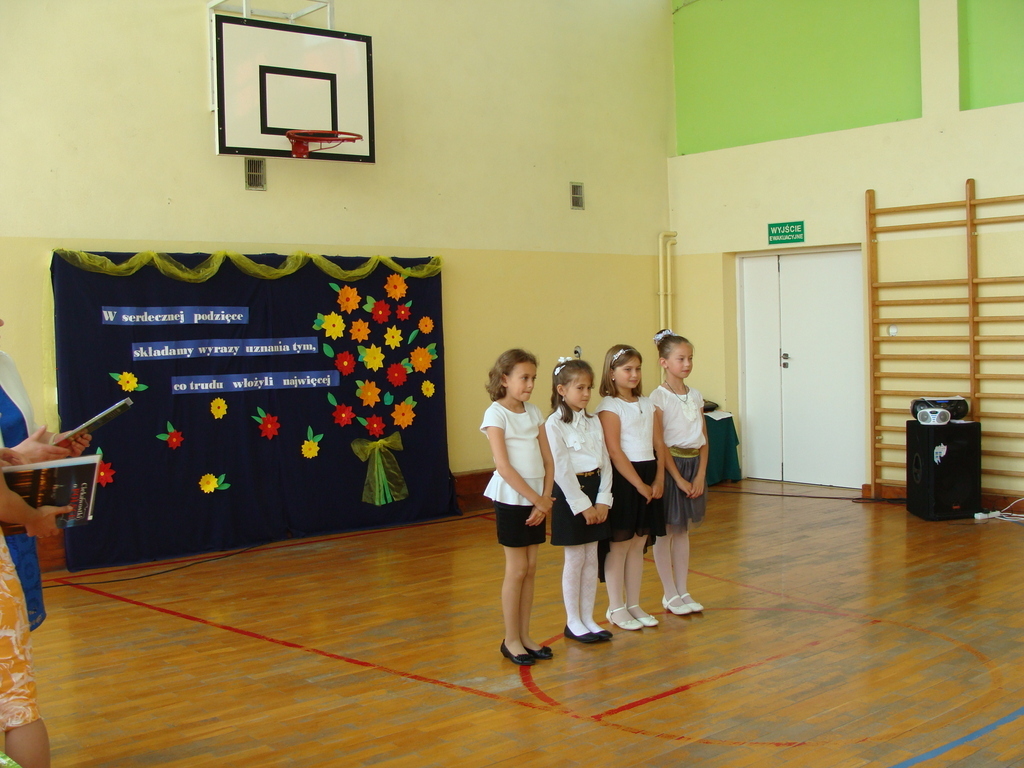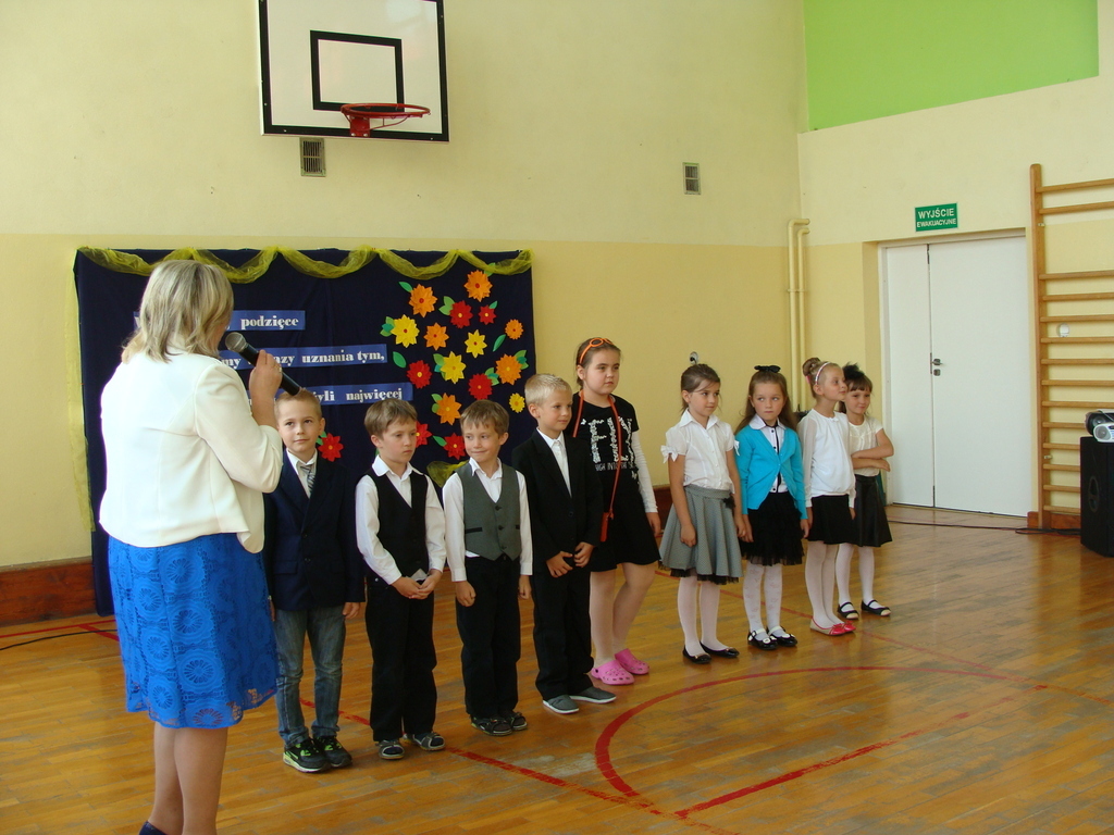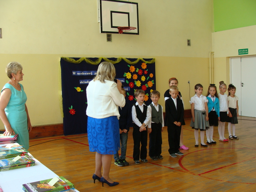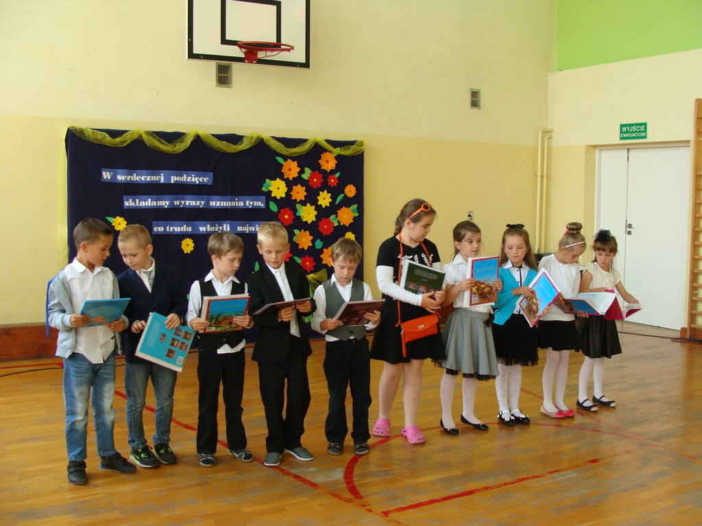 26 czerwca o godzinie 8.00 uroczyste zakończenie roku szkolnego rozpoczęło się od mszy świętej, którą odprawił ksiądz Stanisław Kolano. Na sali gimnastycznej zgromadzili się wychowankowie punktu przedszkolnego i oddziału przedszkolnego, uczniowie, nauczyciele, pracownicy oraz rodzice.