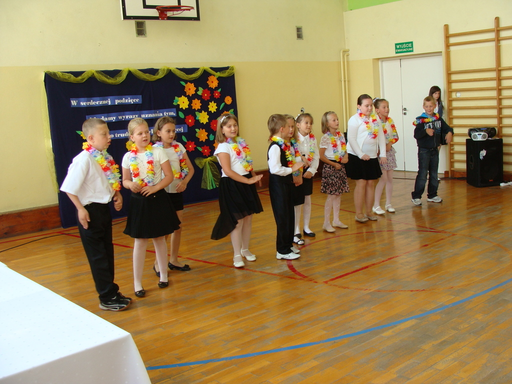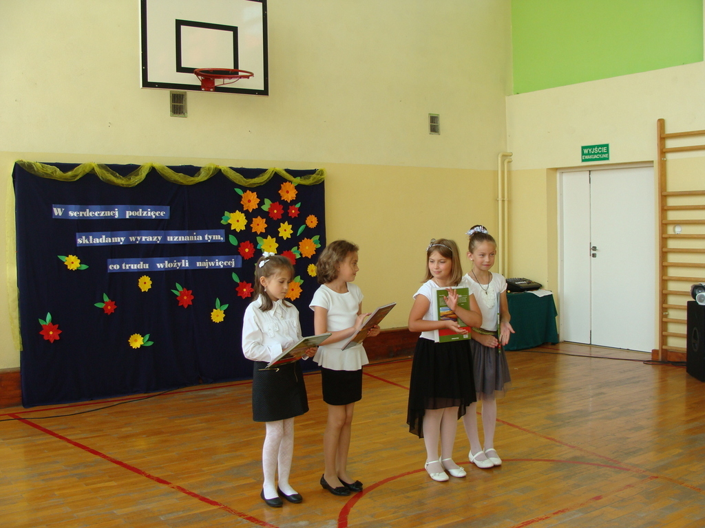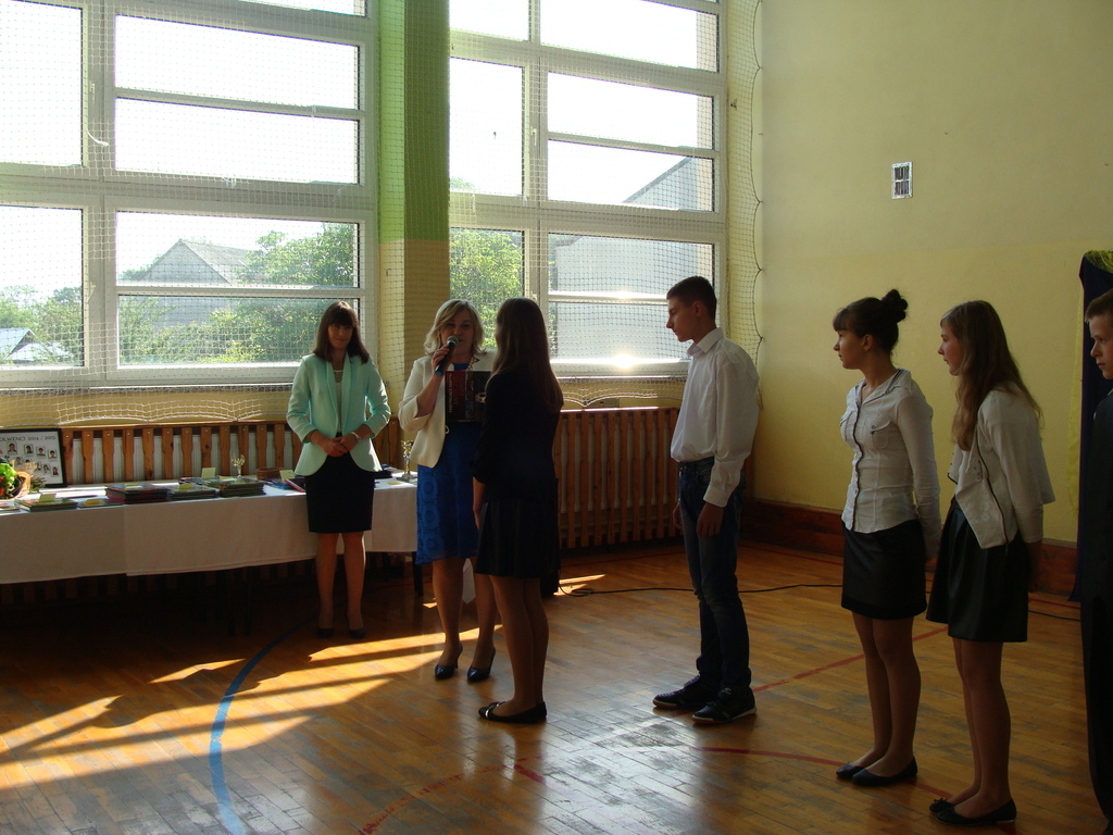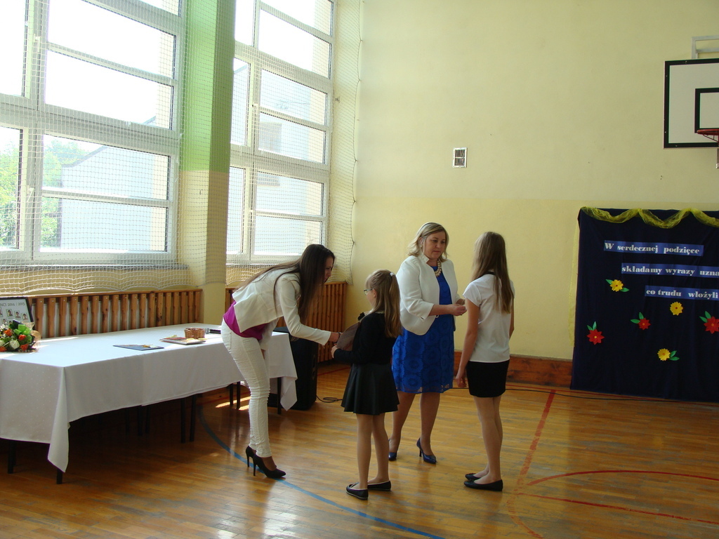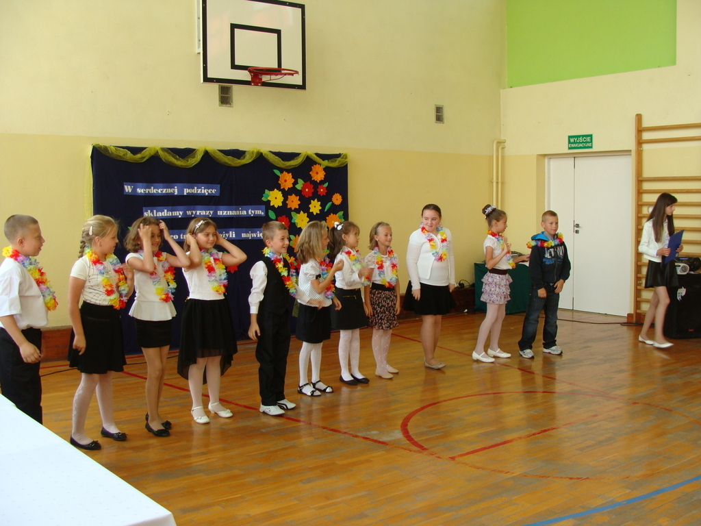 26 czerwca o godzinie 8.00 uroczyste zakończenie roku szkolnego rozpoczęło się od mszy świętej, którą odprawił ksiądz Stanisław Kolano. Na sali gimnastycznej zgromadzili się wychowankowie punktu przedszkolnego i oddziału przedszkolnego, uczniowie, nauczyciele, pracownicy oraz rodzice.