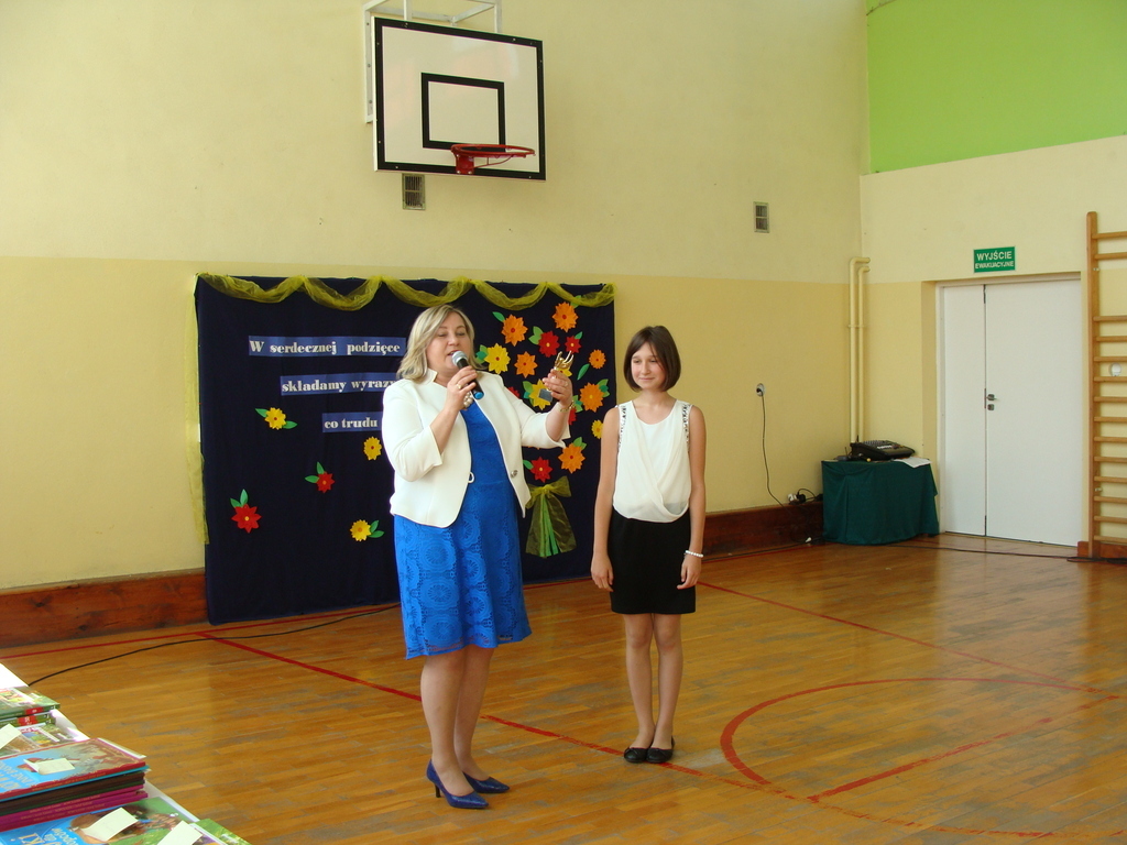Po uroczystym ślubowaniu pani dyrektor wręczyła absolwentom świadectwa ukończenia Publicznej Szkoły Podstawowej w Krzeszowie Górnym oraz liczne nagrody. Kamila Waliłko otrzymała statuetkę sportowca za godne reprezentowanie szkoły w licznych zawodach sportowych, także ogólnopolskich.