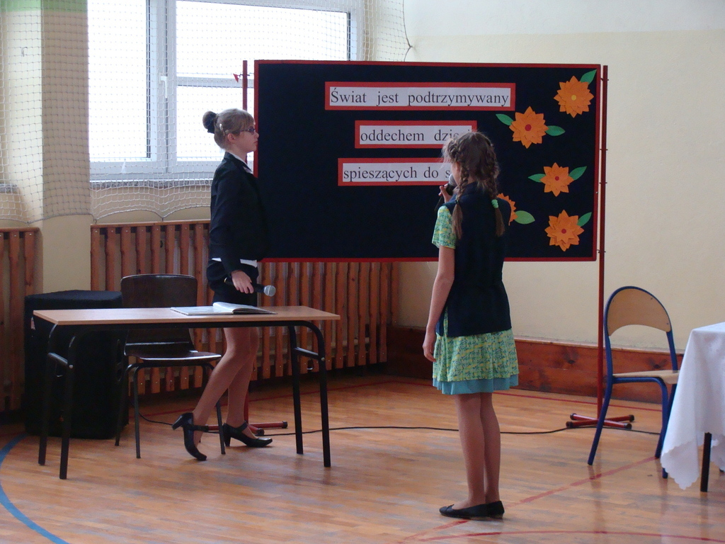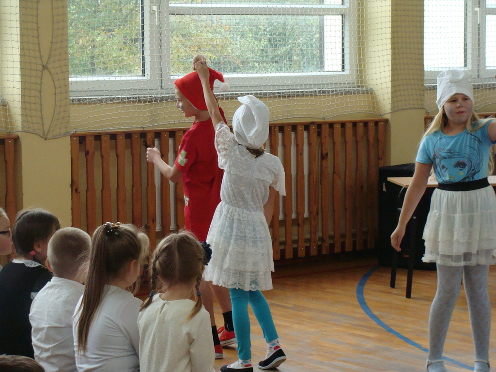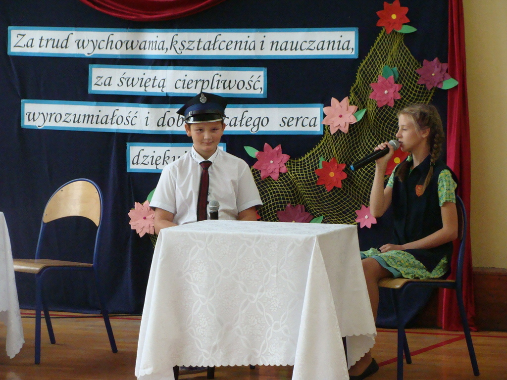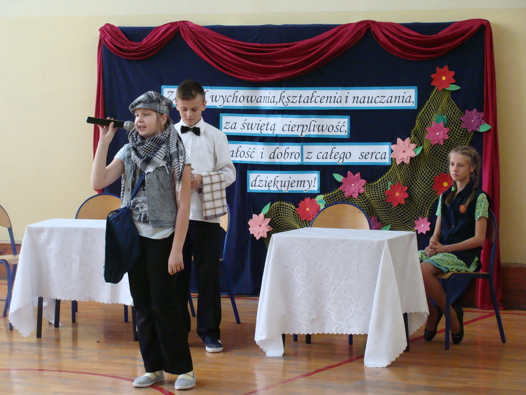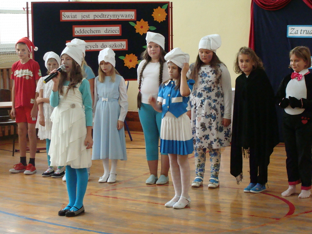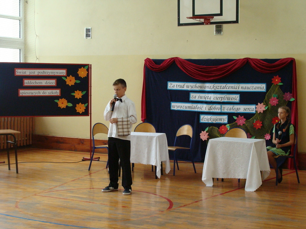 W części artystycznej zaprezentowali przedstawienie pt. "Czy szkoła jest potrzebna?". Tańcem, wierszem i piosenką wyrazili podziękowanie i słowa uznania dla trudnej pracy pedagogów. Wiele ciepłych słów popłynęło w kierunku nauczycieli i pracowników naszej szkoły.