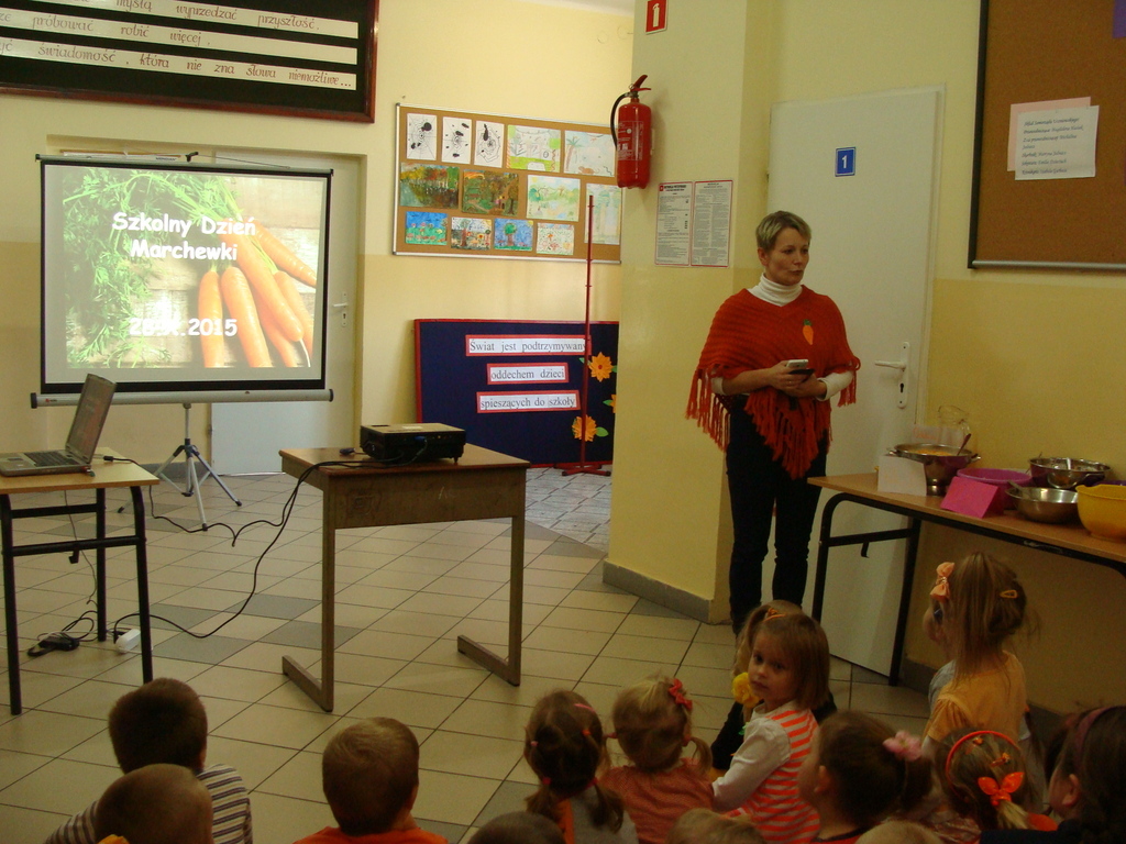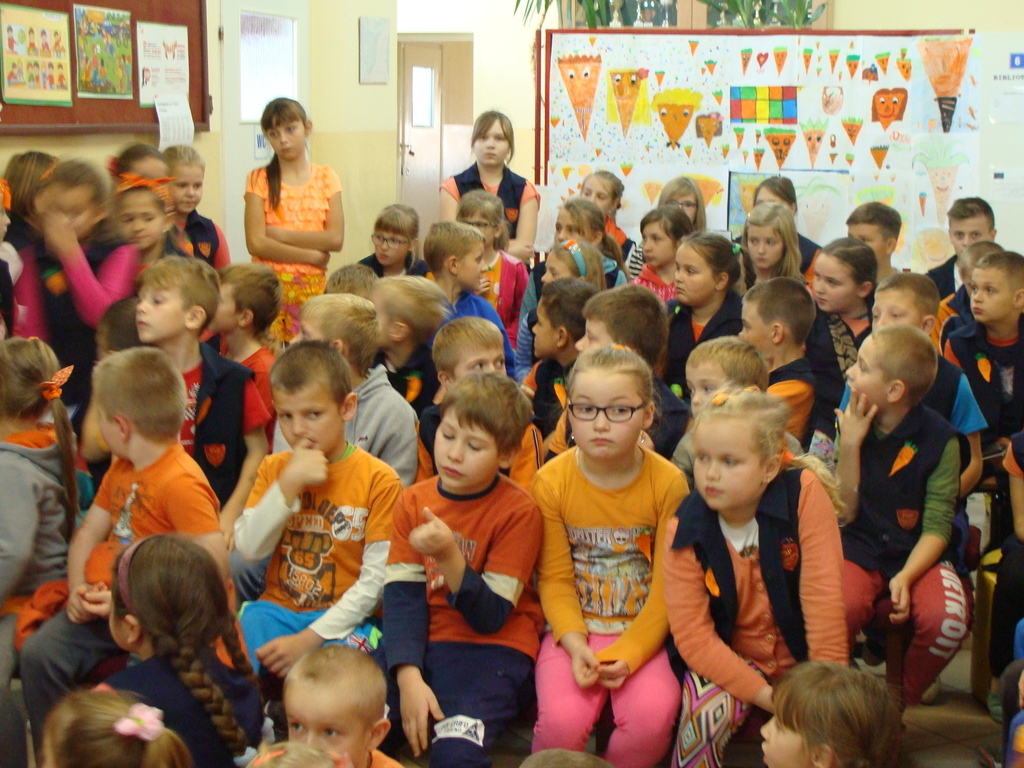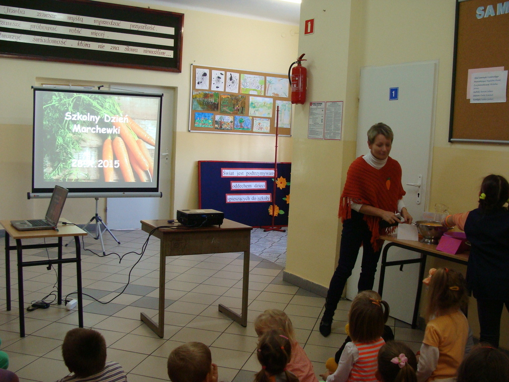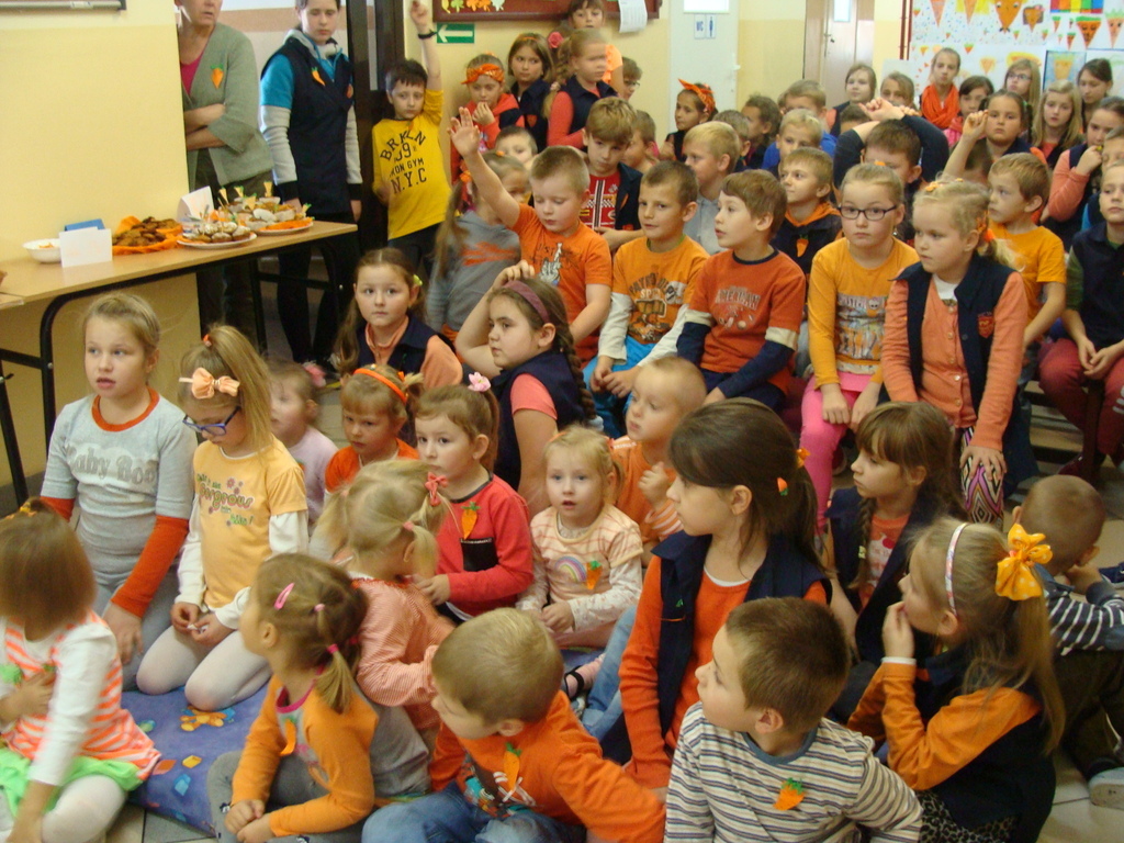 28 października odbył się dzień marchewki. Tego dnia wszyscy wychowankowie i uczniowie ubrani byli na pomarańczowo. Na zajęciach świetlicowych uczniowie rysowali i malowali marchewki. Z wychowawcami przygotowali przekąski z marchewki do degustacji. Uczniowie klasy czwartej przygotowali referat na temat właściwości jakie posiada marchew, z klasy piątej przypinali marchewki z kolorowego papieru a z klasy szóstej przygotowali prezentację.