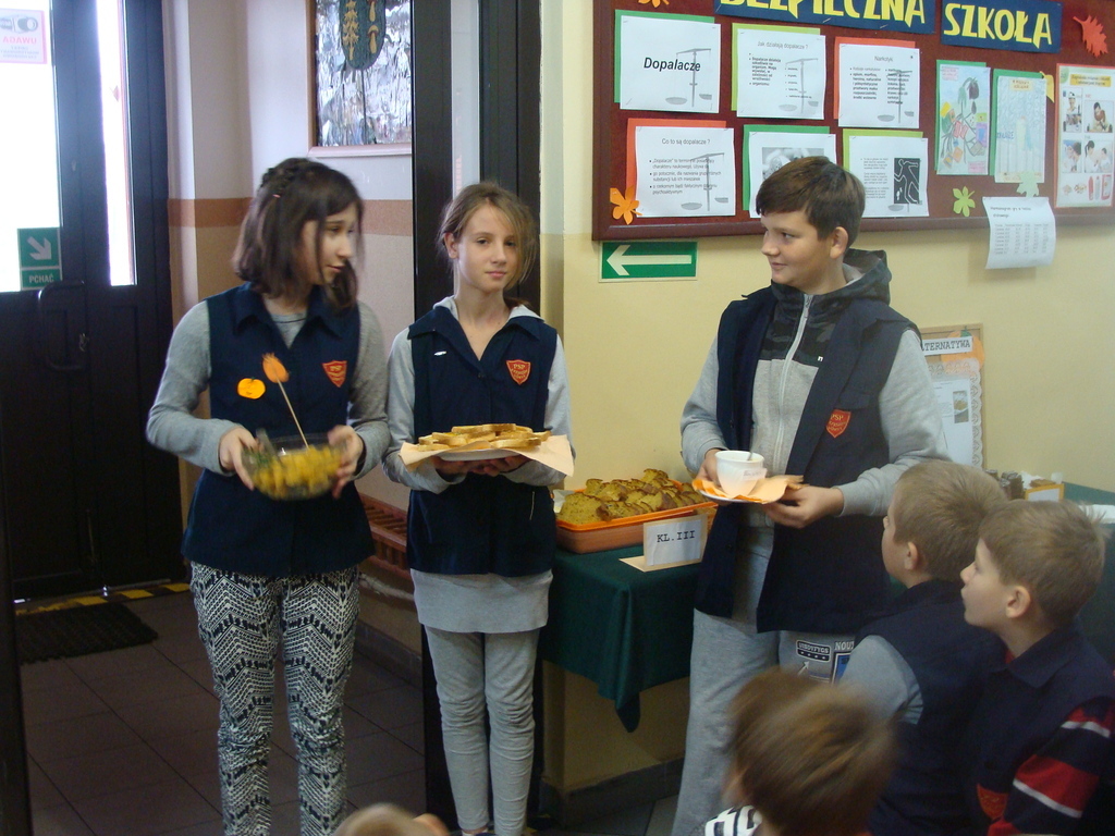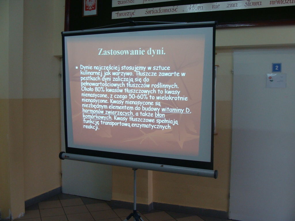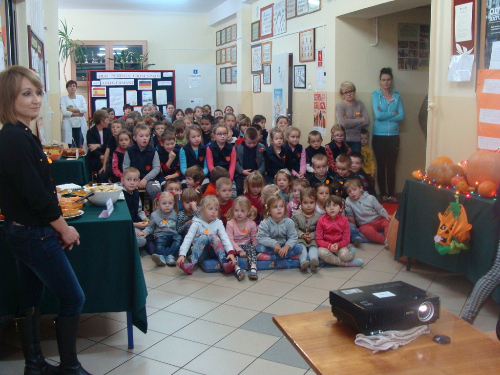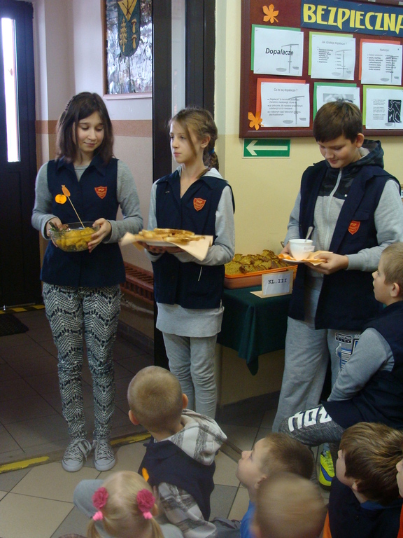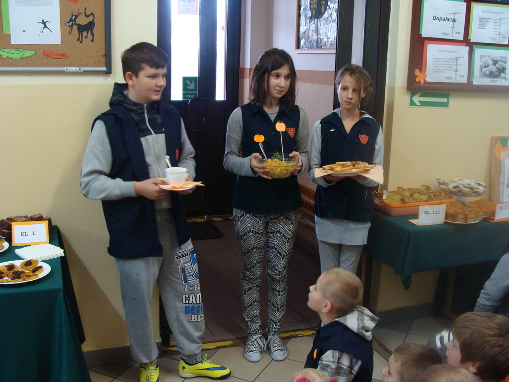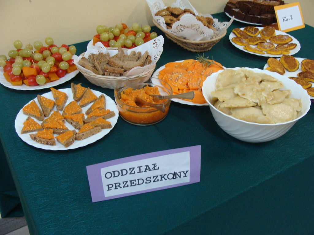 26 listopada w naszej szkole obchodziliśmy Święto Dyni. Wszyscy mieliśmy okazję zapoznać się z zaletami płynącymi ze spożywania tego warzywa oraz z przepisami na zdrowe dyniowe zamienniki popularnych niezdrowych przekąsek (frytki, chipsy). Uczniowie klasy szóstej przygotowali prezentację multimedialną na temat zalet płynących z jedzenia dyni oraz przedstawili jej główne jadalne gatunki. Po krótkiej części "oficjalnej" nastąpiła prezentacja przygotowanych przez wszystkie klasy potraw oraz najprzyjemniejsza część dnia- wspólna degustacja. Całą uroczystość uświetniała wystawa różnych odmian dyń- ogromnym zainteresowaniem cieszyły się te największe okazy.