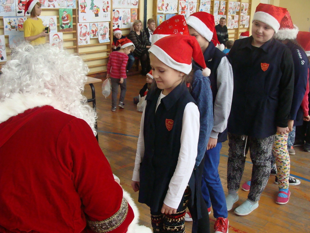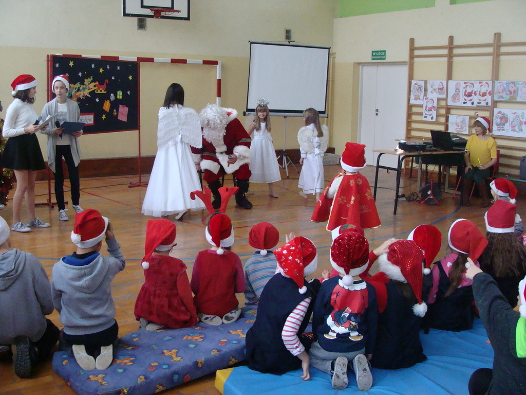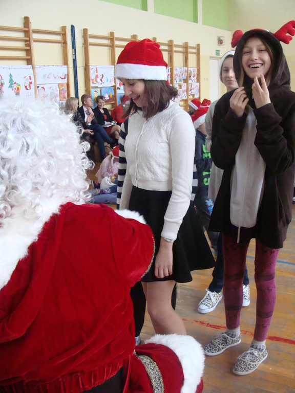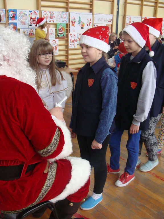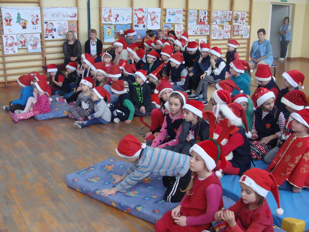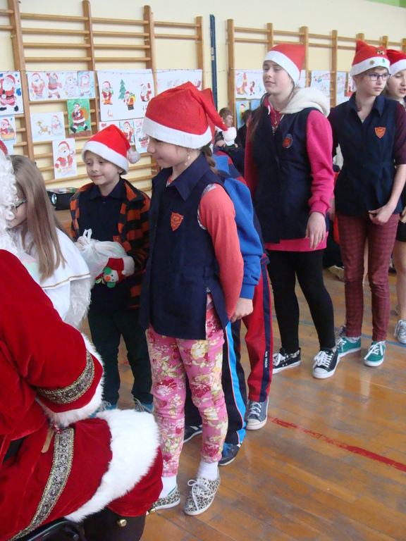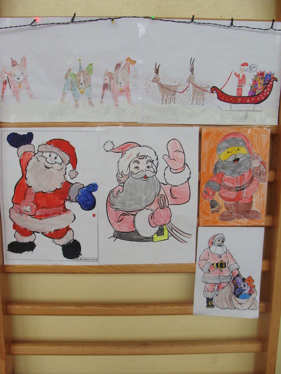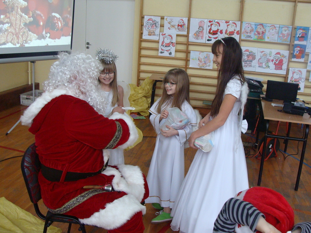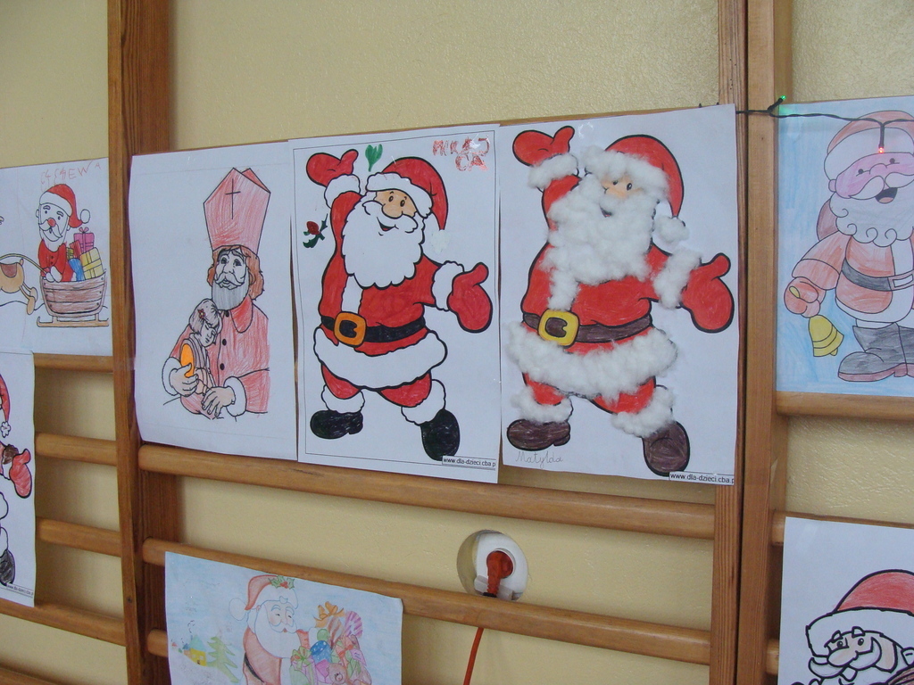 7 grudnia naszą szkołę odwiedził wyjątkowy gość- Święty Mikołaj. Przyniósł ze sobą wór pełen prezentów dla wszystkich grzecznych dzieci. Dzieci nie pozostały dłużne i również przygotowały Mikołajowi wspaniałe prezenty w postaci piosenek, wierszyków i plakatów z podobizną Świętego. Specjalnie na tę okazję wypisały też swoje dobre uczynki, by Mikołaj miał namacalne "dowody" ich dobrych serduszek.