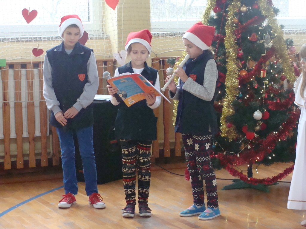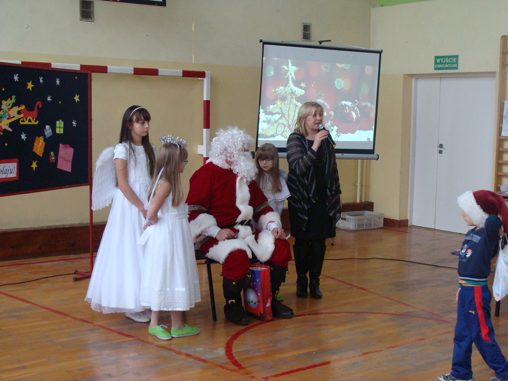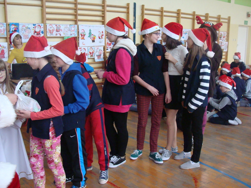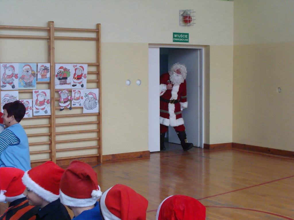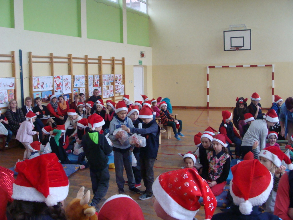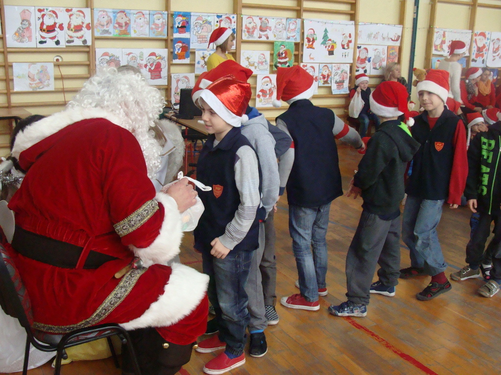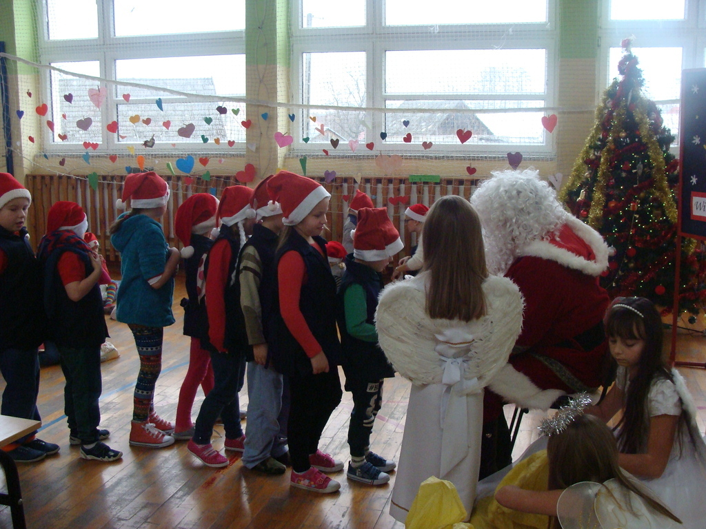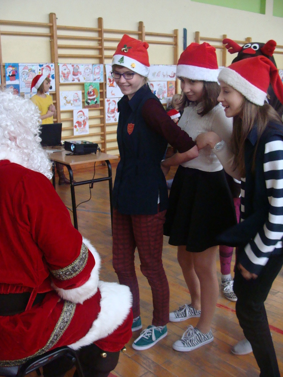 7 grudnia naszą szkołę odwiedził wyjątkowy gość- Święty Mikołaj. Przyniósł ze sobą wór pełen prezentów dla wszystkich grzecznych dzieci. Dzieci nie pozostały dłużne i również przygotowały Mikołajowi wspaniałe prezenty w postaci piosenek, wierszyków i plakatów z podobizną Świętego. Specjalnie na tę okazję wypisały też swoje dobre uczynki, by Mikołaj miał namacalne "dowody" ich dobrych serduszek.
