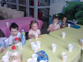 W czasie pobytu w sali zabaw ciekawą niespodzianką okazało się wykonanie indywidualnych "psotnych" zdjęć.