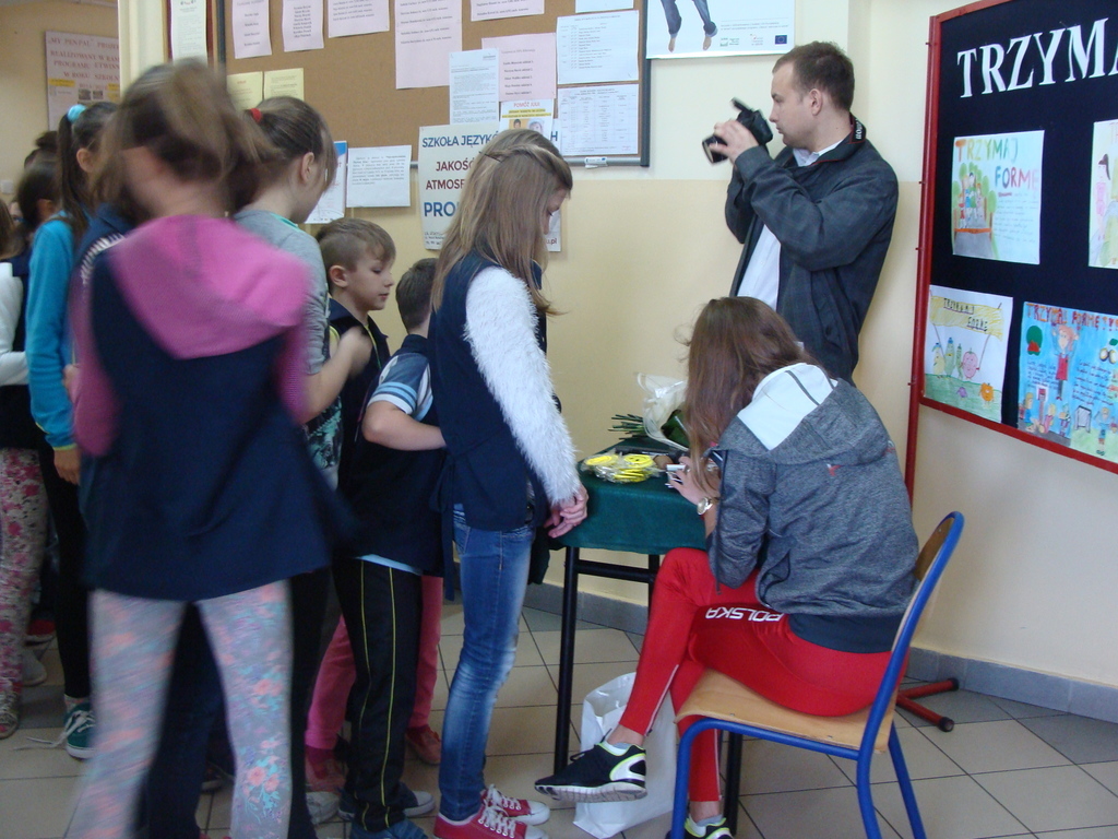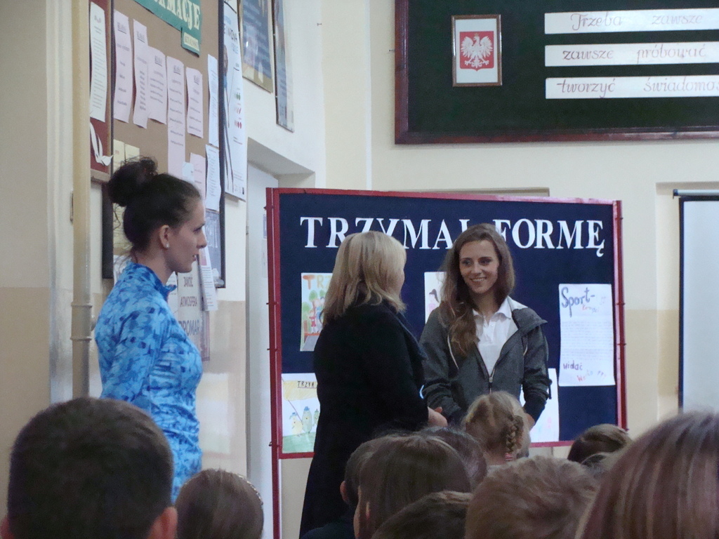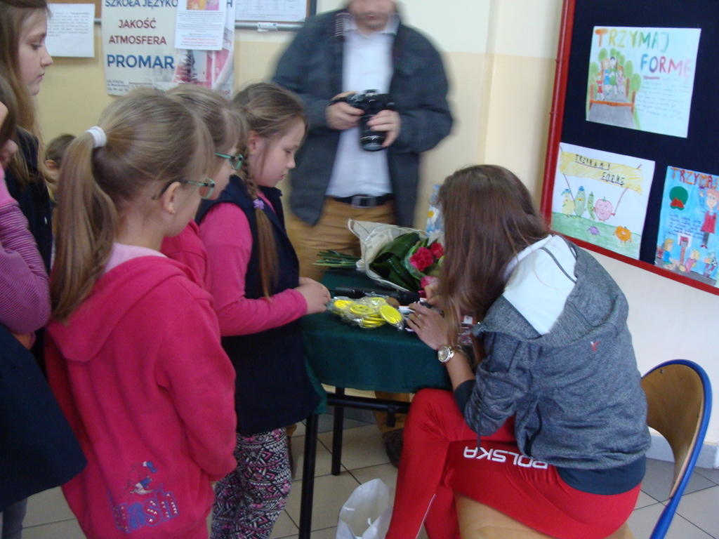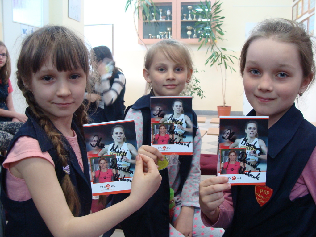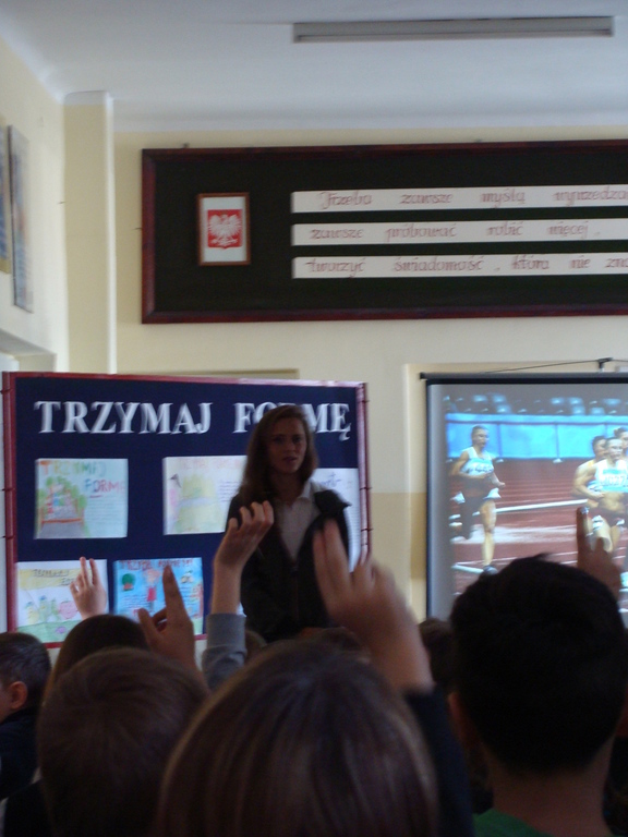 Spotkanie odbyło się pod hasłem „Trzymaj Formę”. Danuta Urbanik przedstawiła krótką prezentację o swoich osiągnięciach, odpowiadała na pytania uczniów. Mówiła o tym jak ważna jest wytrwałość w dążeniu do określonego celu oraz praca na sobą. Na koniec spotkania sportsmenka rozdała swoje zdjęcie z autografem oraz odblaskowy breloczek. Każde dziecko miało okazję zrobić pamiątkowe zdjęcie z lekkoatletką.