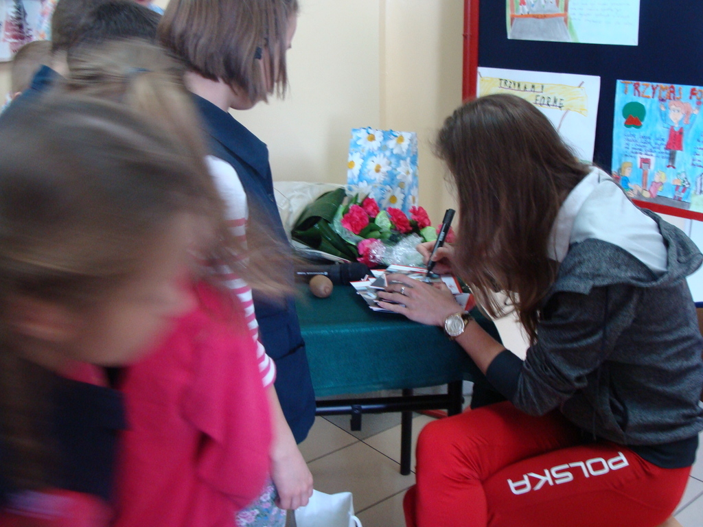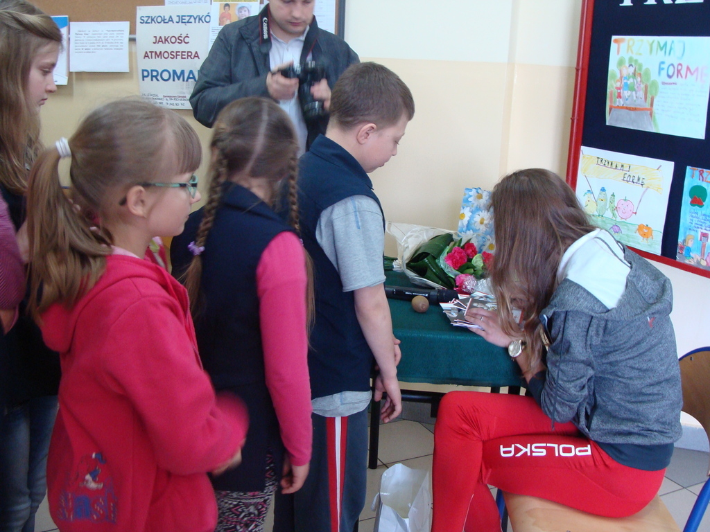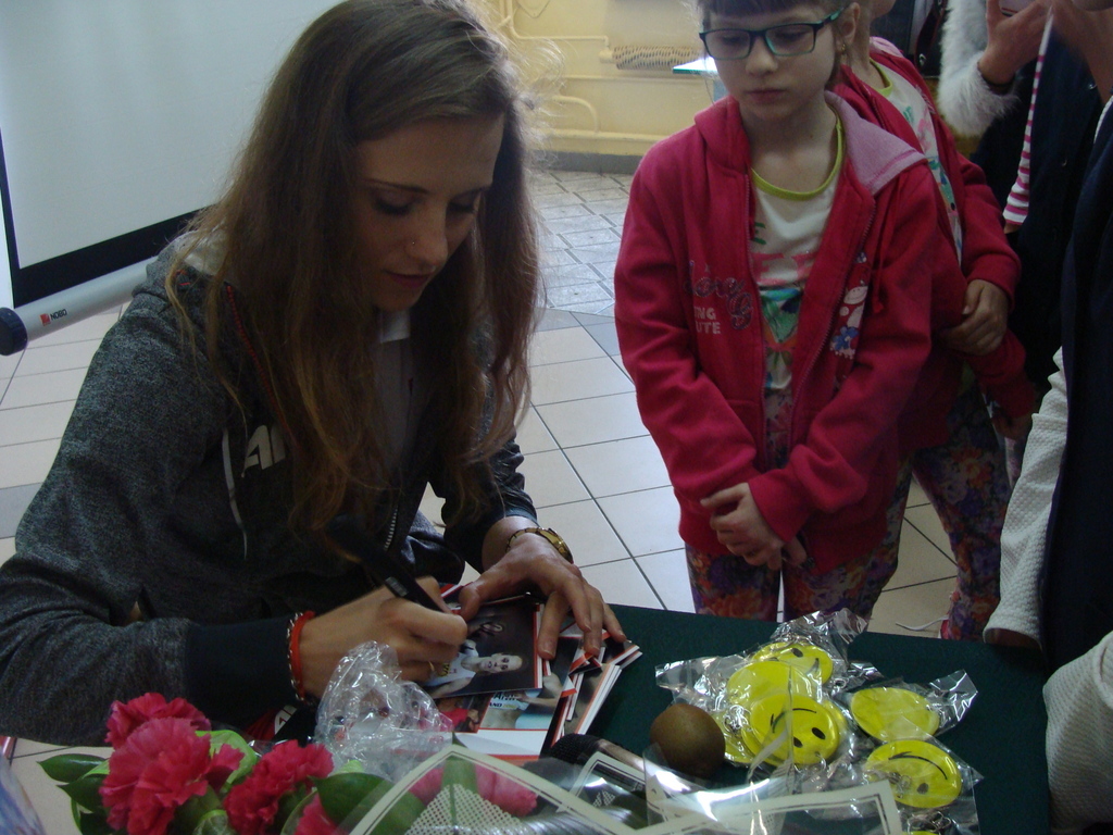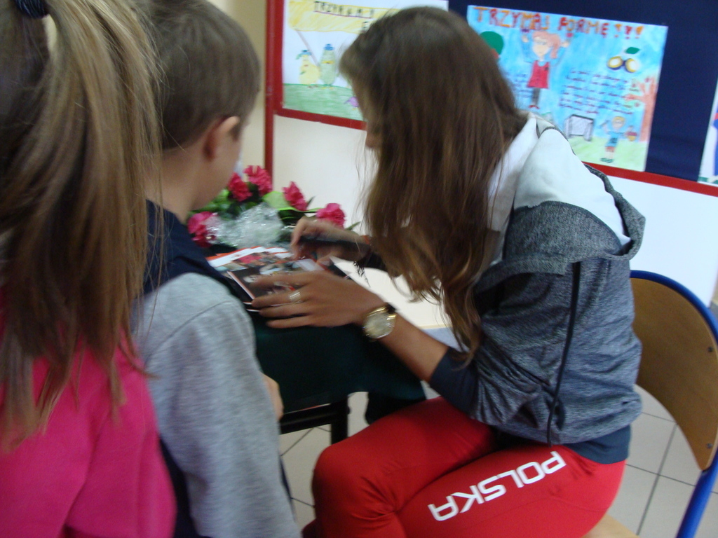 Spotkanie odbyło się pod hasłem „Trzymaj Formę”. Danuta Urbanik przedstawiła krótką prezentację o swoich osiągnięciach, odpowiadała na pytania uczniów. Mówiła o tym jak ważna jest wytrwałość w dążeniu do określonego celu oraz praca na sobą. Na koniec spotkania sportsmenka rozdała swoje zdjęcie z autografem oraz odblaskowy breloczek. Każde dziecko miało okazję zrobić pamiątkowe zdjęcie z lekkoatletką.
