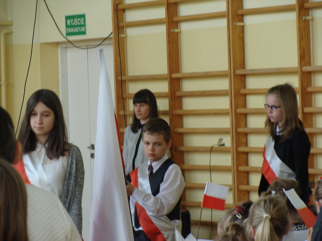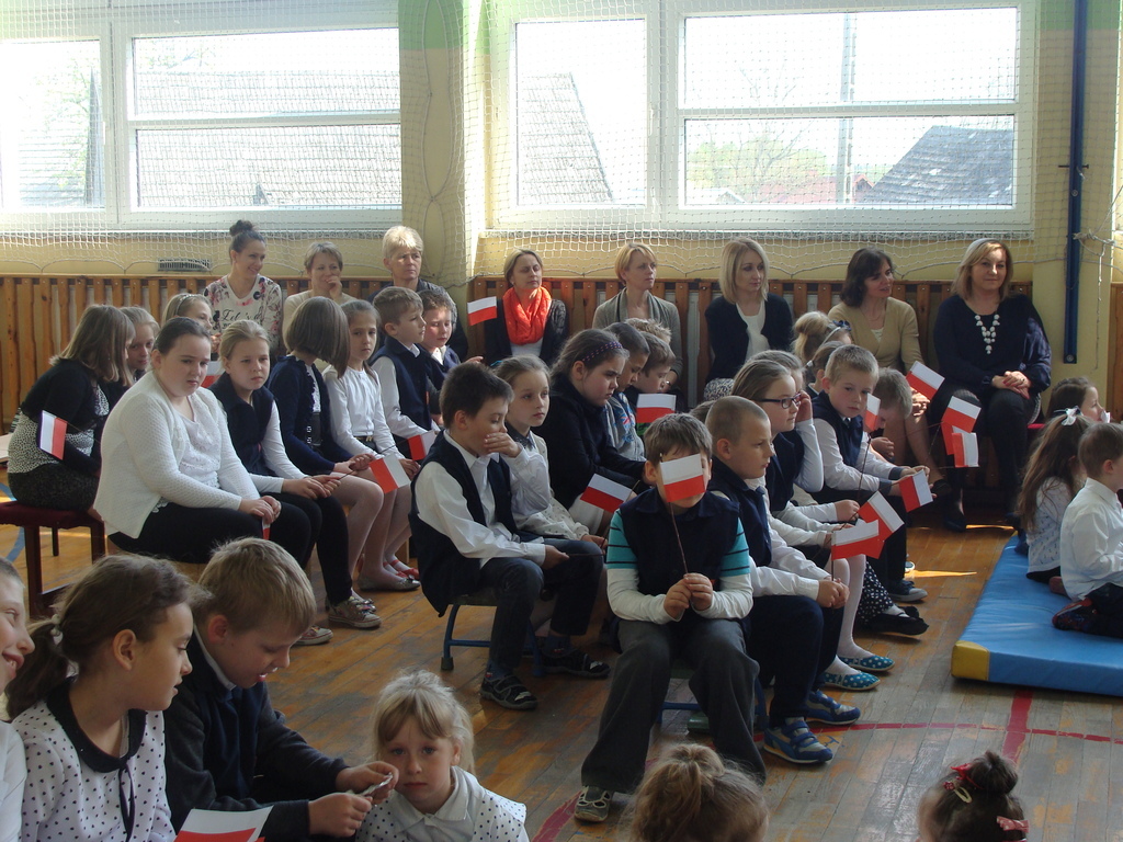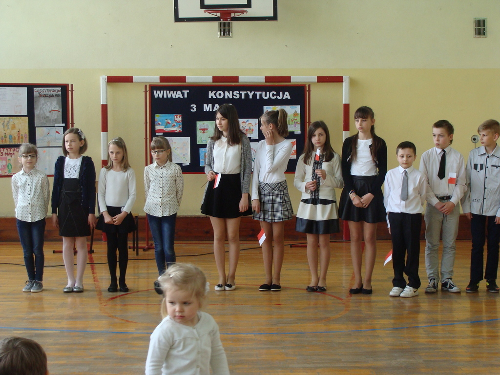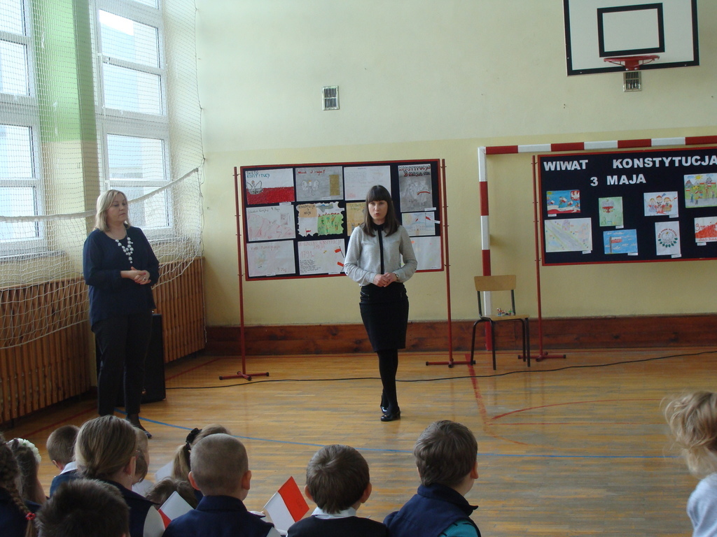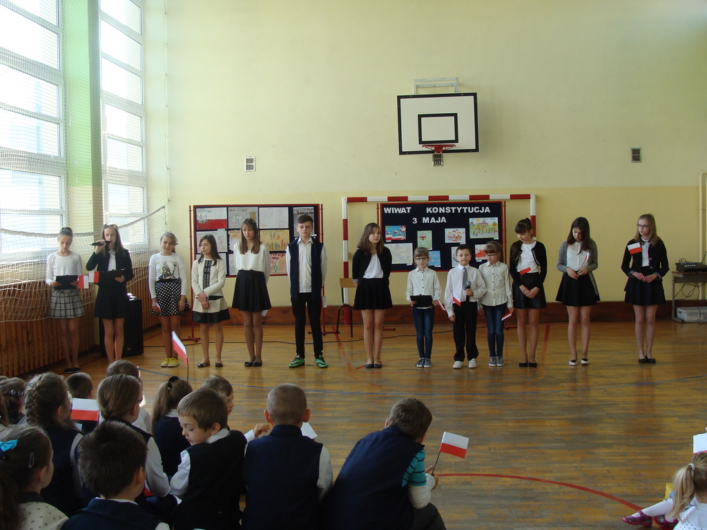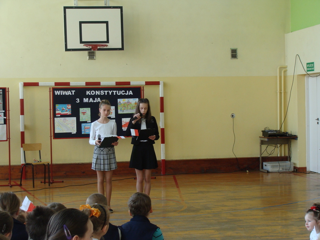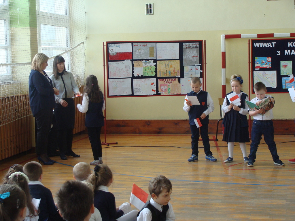 Uczniowie klasy szóstej, piątej i czwartej przygotowali lekcję historii, w której przypomnieli dlaczego czcimy dzień 3 Maja i z jakimi ważnymi wydarzeniami dla naszego kraju wiąże się ta data.