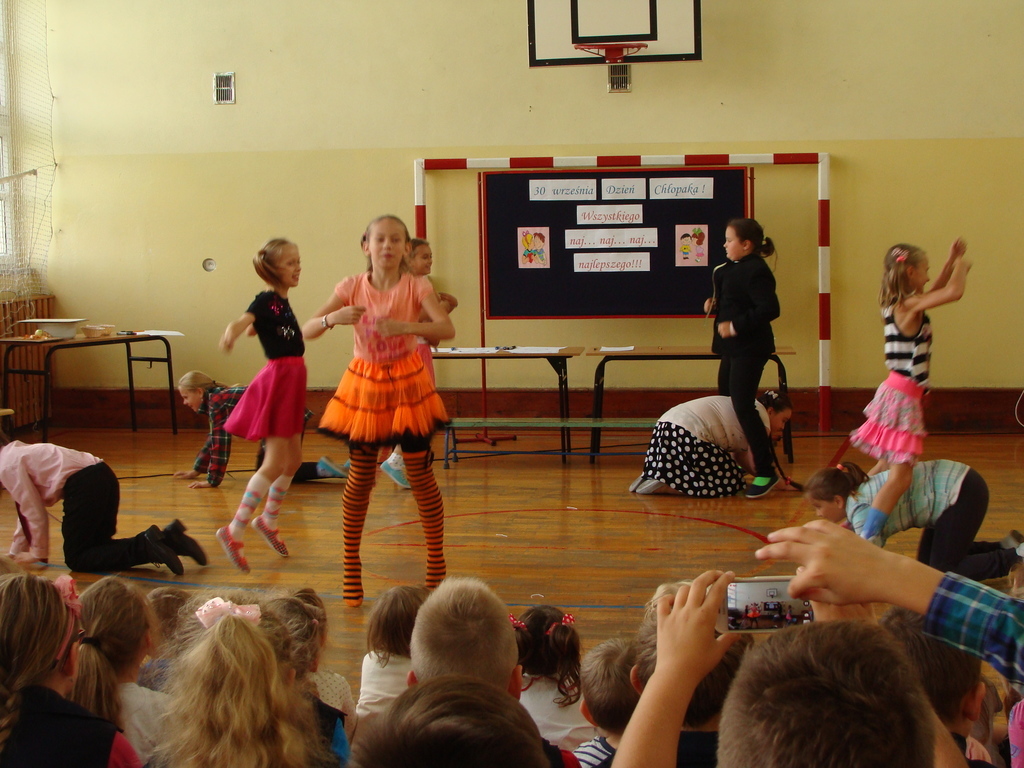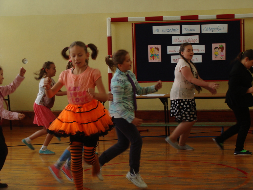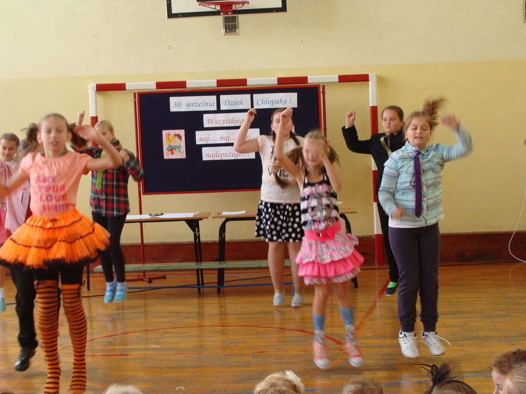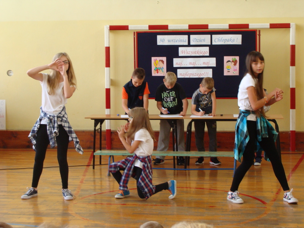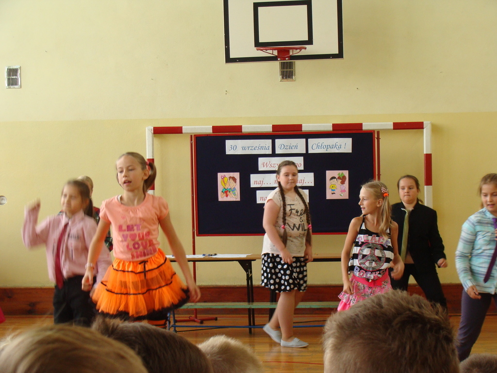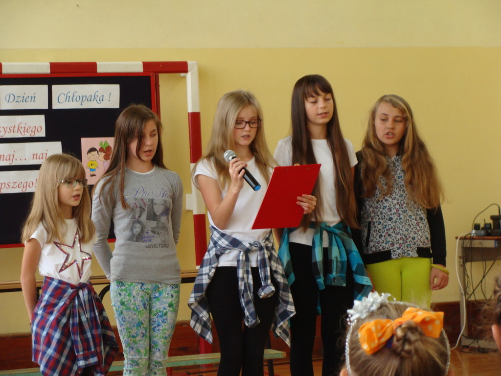 Dziewczynki z Samorządu Uczniowskiego oraz z klasy piątej i szóstej pod opieką opiekunów: pani Małgorzaty Malinkiewicz-Szot, pani Jadwigi Koguc i pani Anny Muchy przygotowały część artystyczną - tańce, prezentację mody męskiej oraz konkurs dla chłopców, którzy zmagali się w różnych konkurencjach, m.in. w: obieraniu cebuli na czas, narysowaniu autoportretu, uczesaniu koleżanki, przedstawieniu treści oświadczyn.
