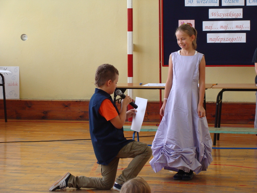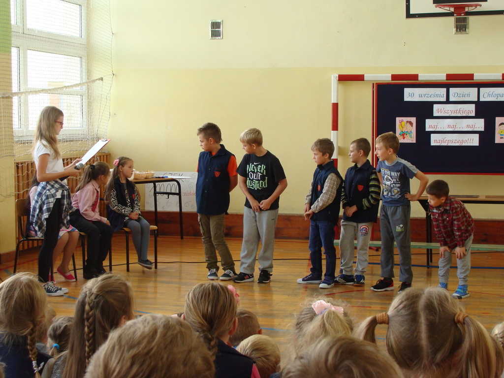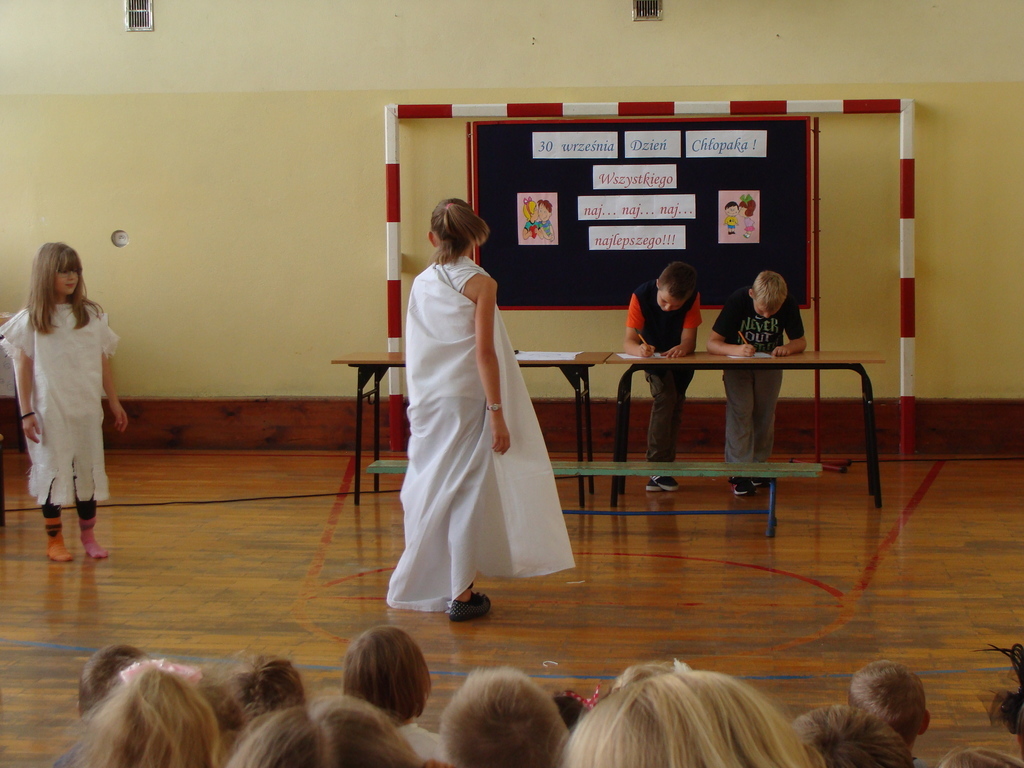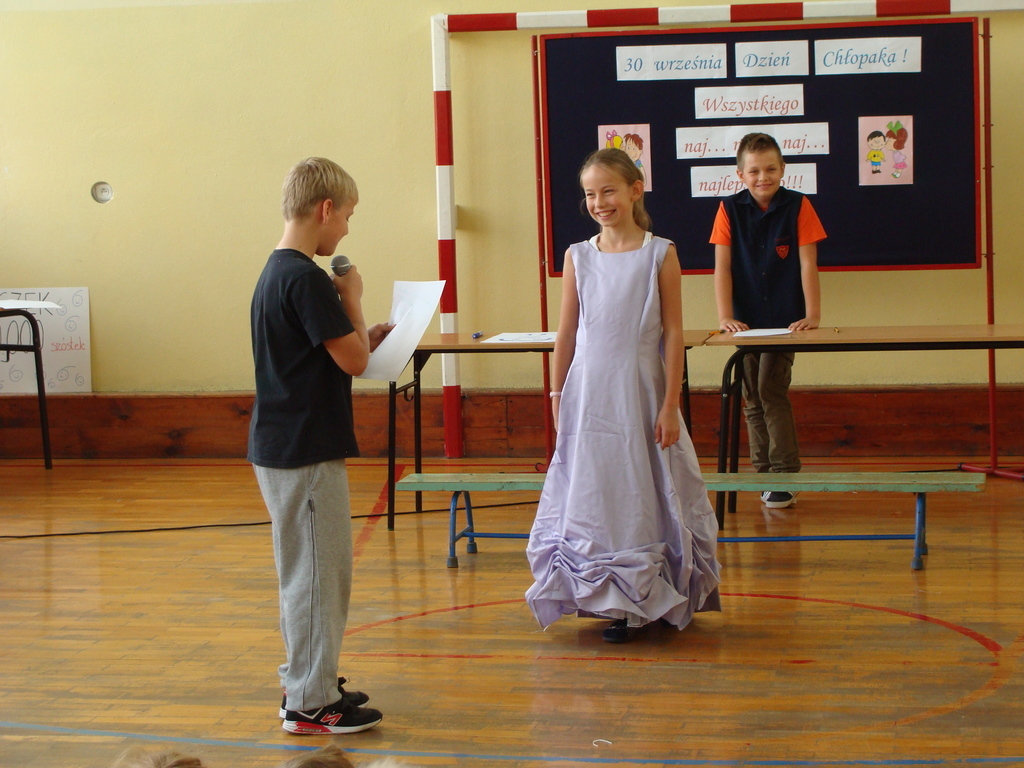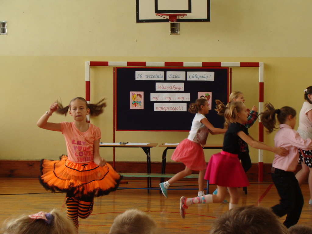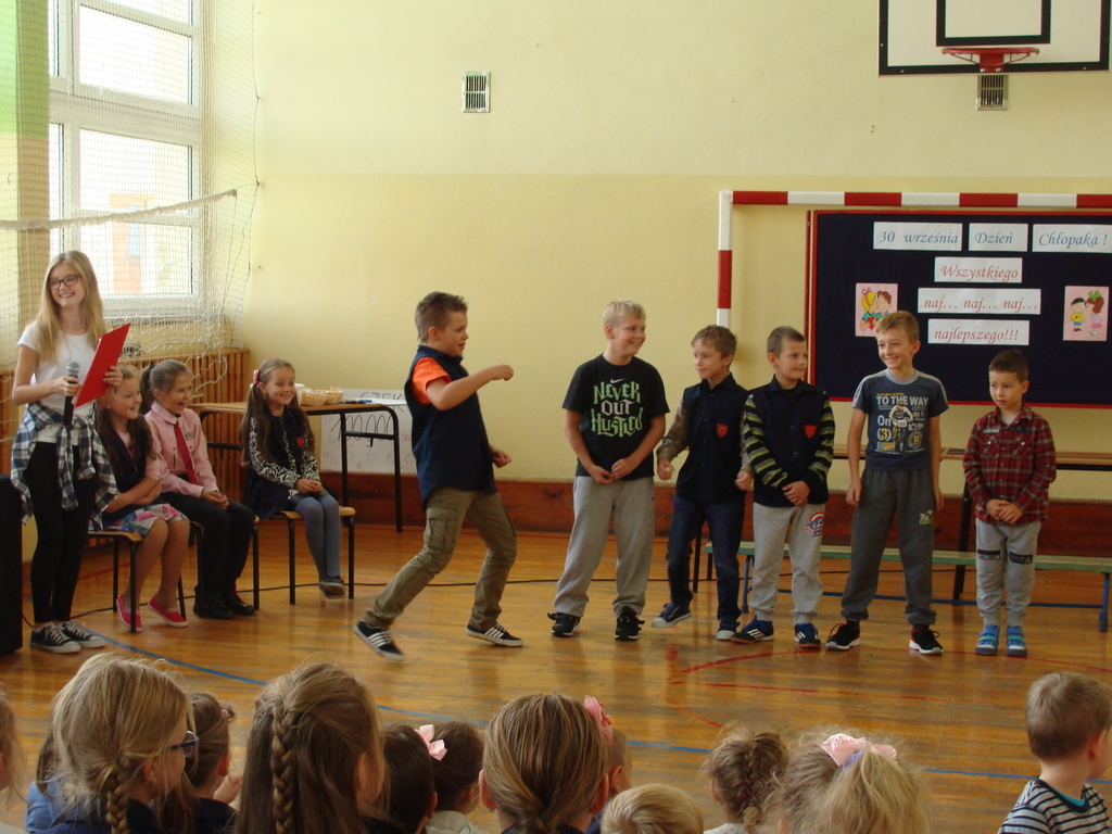 Dziewczynki z Samorządu Uczniowskiego oraz z klasy piątej i szóstej pod opieką opiekunów: pani Małgorzaty Malinkiewicz-Szot, pani Jadwigi Koguc i pani Anny Muchy przygotowały część artystyczną - tańce, prezentację mody męskiej oraz konkurs dla chłopców, którzy zmagali się w różnych konkurencjach, m.in. w: obieraniu cebuli na czas, narysowaniu autoportretu, uczesaniu koleżanki, przedstawieniu treści oświadczyn.