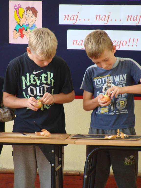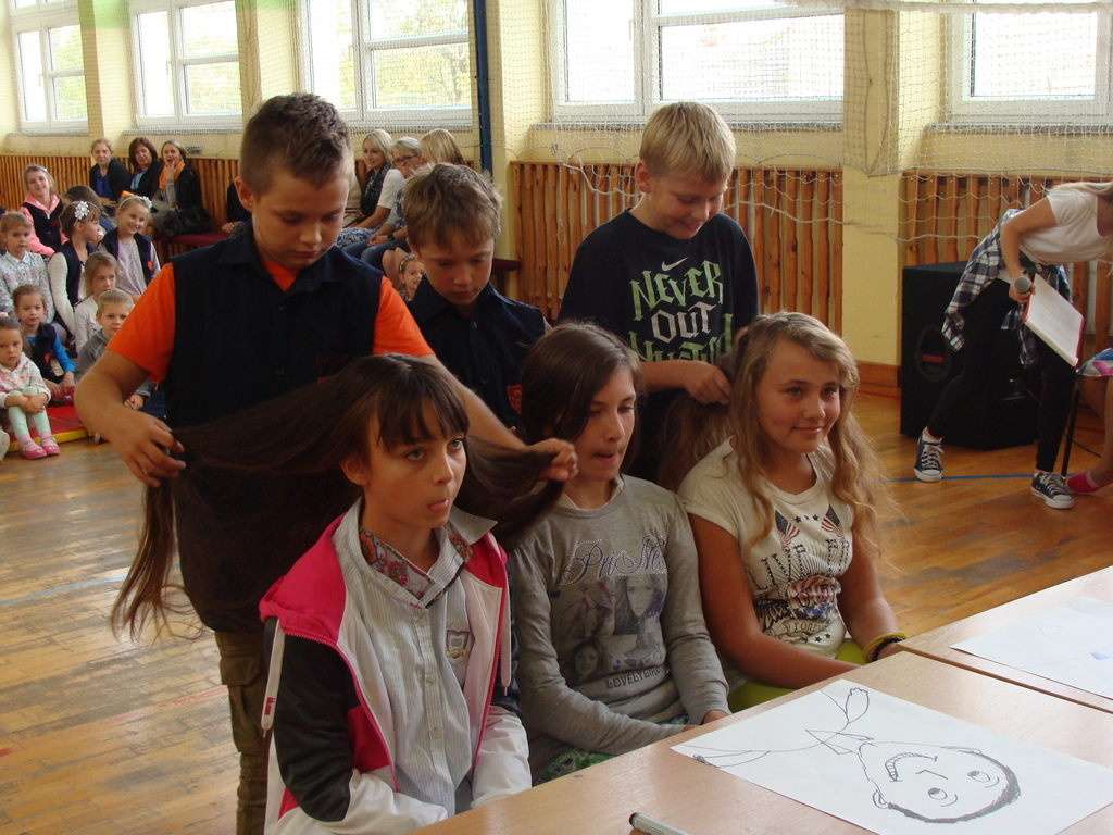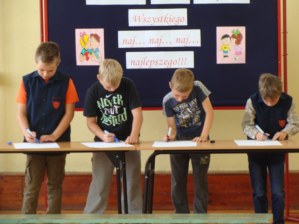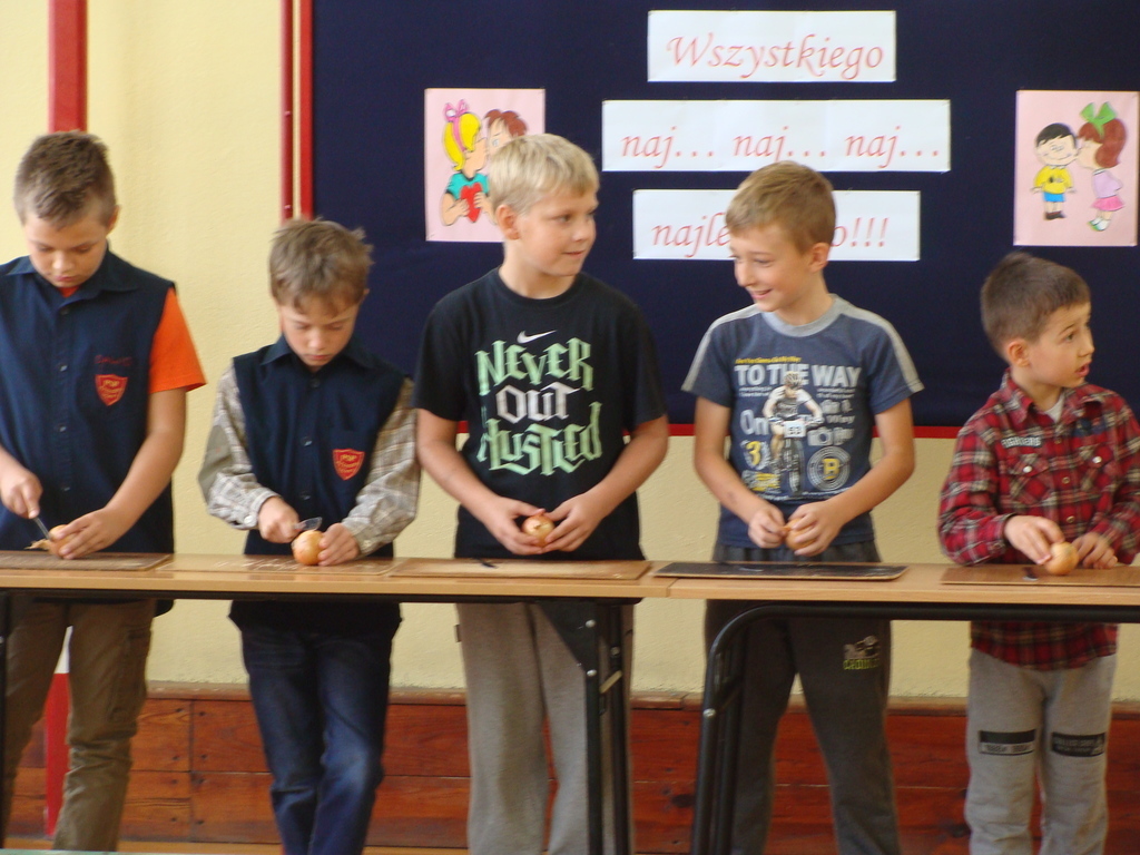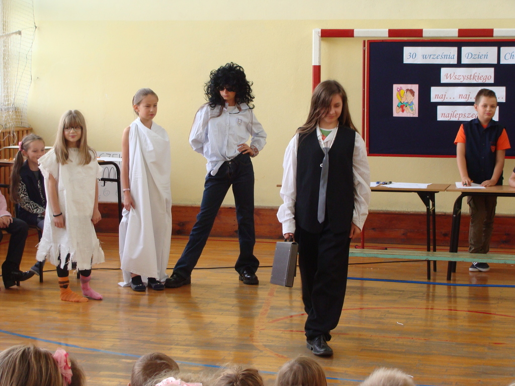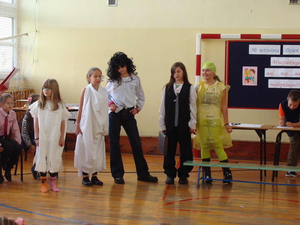 Dziewczynki z Samorządu Uczniowskiego oraz z klasy piątej i szóstej pod opieką opiekunów: pani Małgorzaty Malinkiewicz-Szot, pani Jadwigi Koguc i pani Anny Muchy przygotowały część artystyczną - tańce, prezentację mody męskiej oraz konkurs dla chłopców, którzy zmagali się w różnych konkurencjach, m.in. w: obieraniu cebuli na czas, narysowaniu autoportretu, uczesaniu koleżanki, przedstawieniu treści oświadczyn.