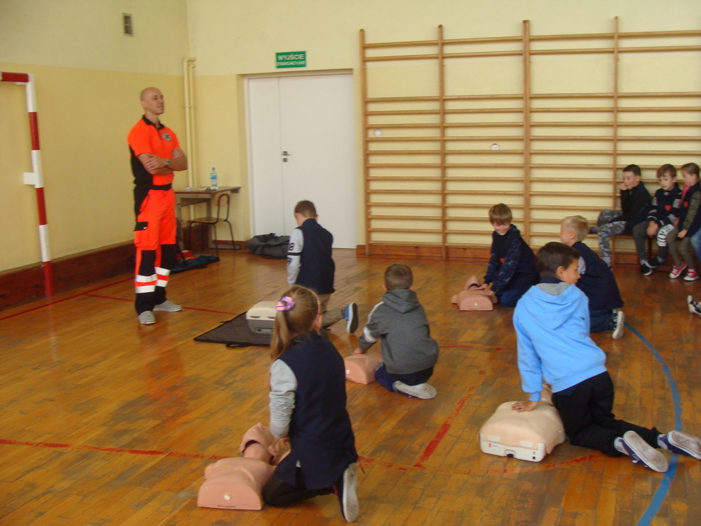 3 października uczniowie oraz wychowankowie naszej szkoły uczestniczyli w szkoleniu w zakresie udzielania pierwszej pomocy, przeprowadzonym przez ratownika medycznego, pana Bartka, zaproszonego przez pielęgniarkę szkolną - panią Anetę Fusiarz.