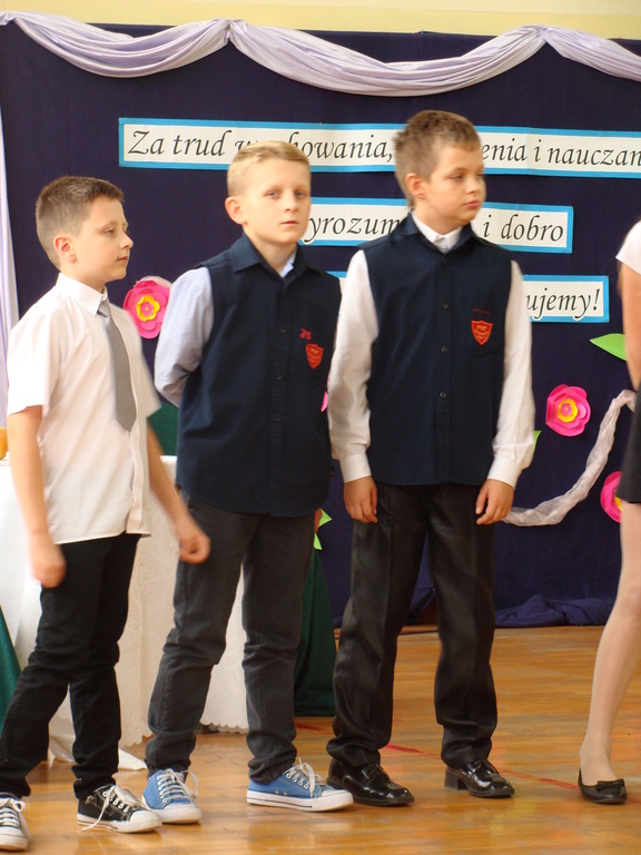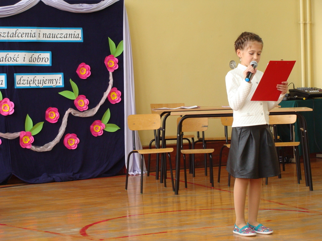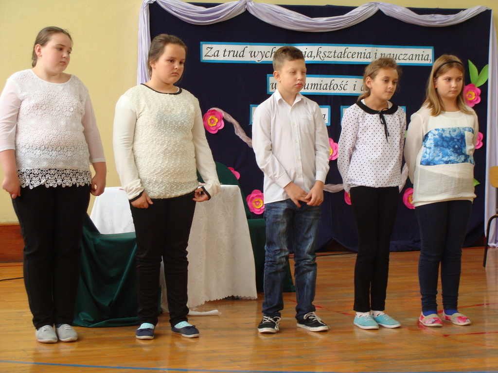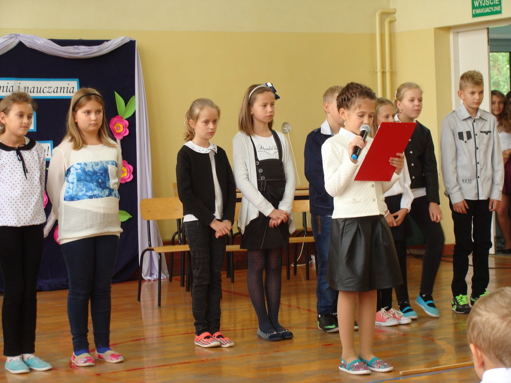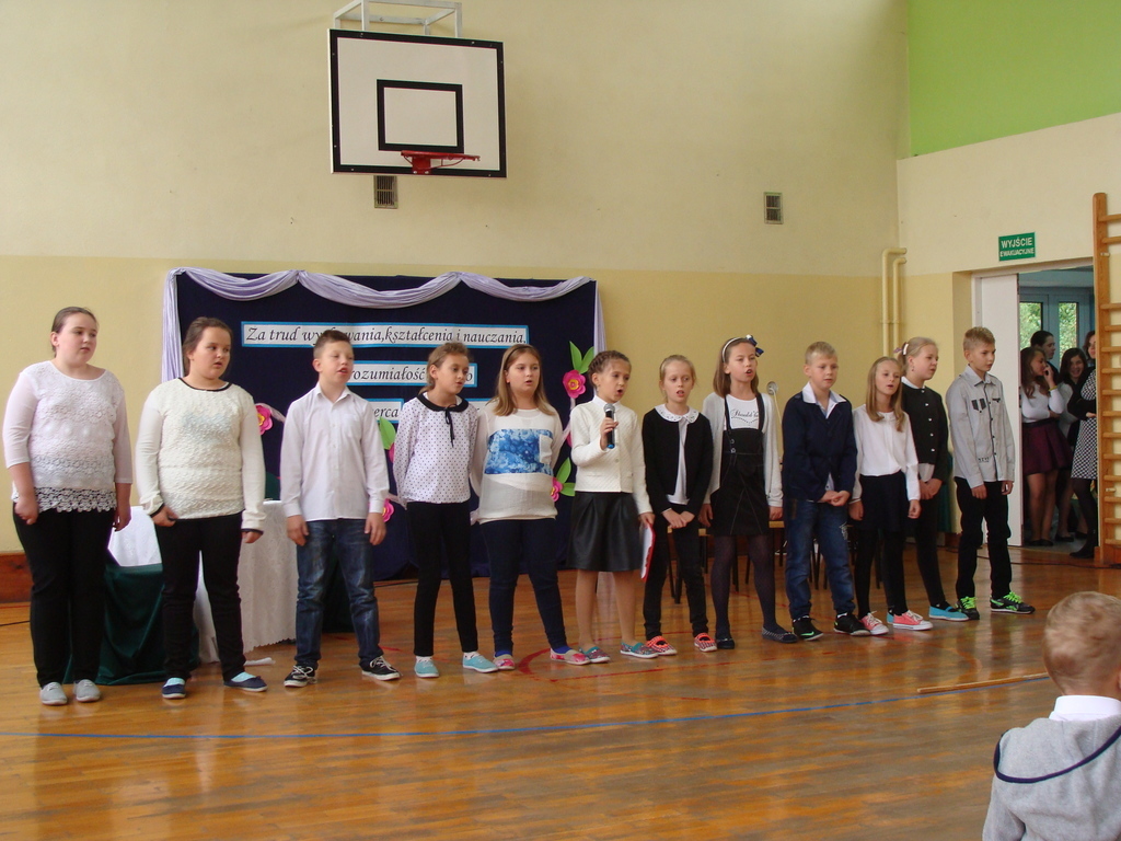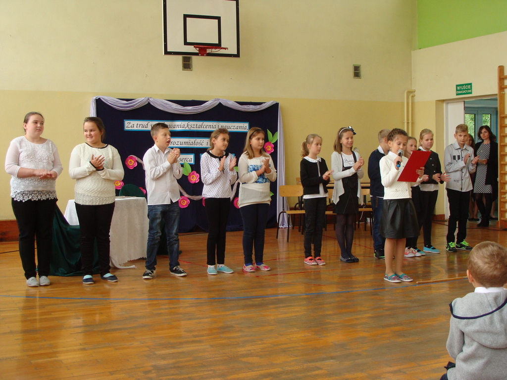 Na uroczystość przybyli nauczyciele, uczniowie, pracownicy szkoły oraz przedstawiciele Rady Rodziców. Program artystyczny zaprezentowali uczniowie klasy czwartej, piątej i szóstej pod opieką p. Małgorzaty Malinkiewicz-Szot, p. Anny Muchy oraz p. Jadwigi Koguc. Artyści pięknie wyśpiewali i wyrecytowali słowa podziękowania i uznania dla codziennej, trudnej pracy pedagogów oraz zaprezentowali scenki pokazujące w żartobliwy sposób dni z życia szkoły.