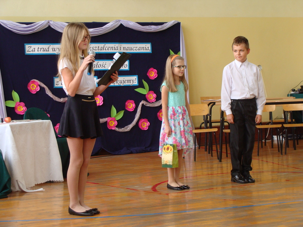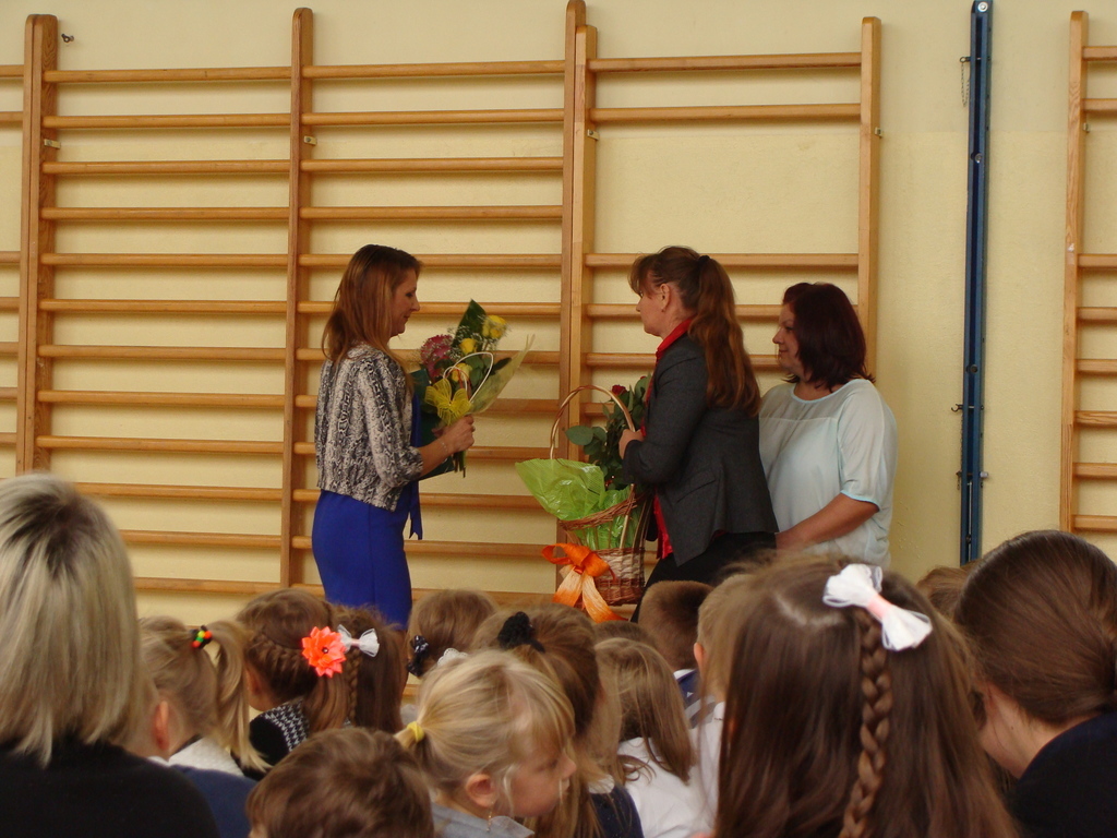 Życzenia i podziękowania za trud w pracy z dziećmi złożyła również przewodnicząca Rady Rodziców pani Marta Demidowska. Na zakończenie uroczystości przedstawiciele Rady Rodziców pani Agnieszka Dechnik i pani Anna Szwedo wręczyły kwiaty nauczycielom i pracownikom szkoły.
