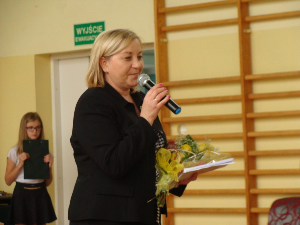 Po części artystycznej głos zabrała pani dyrektor Edyta Igras , która skierowała do grona pedagogicznego oraz pracowników obsługi wiele ciepłych słów, życząc dużo zdrowia i sił do podejmowania wyzwań jakie czekają nas w pracy z dziećmi i młodzieżą.