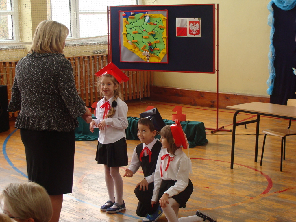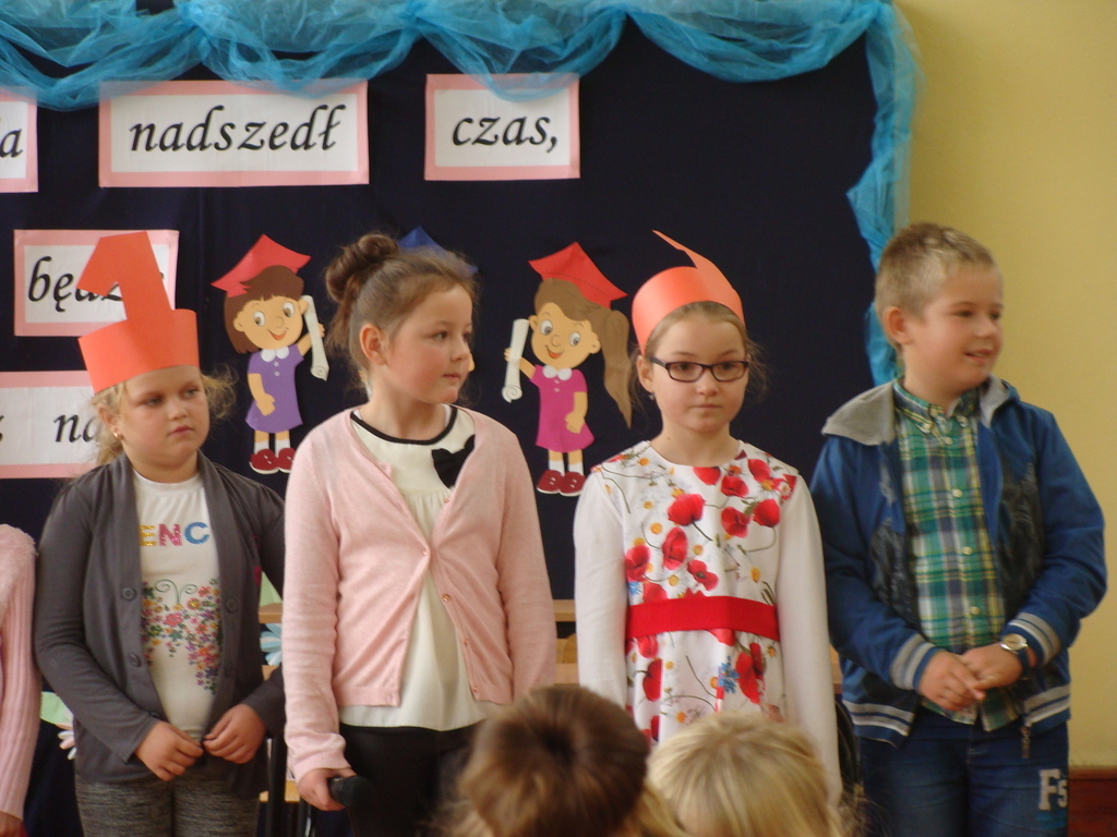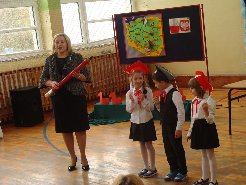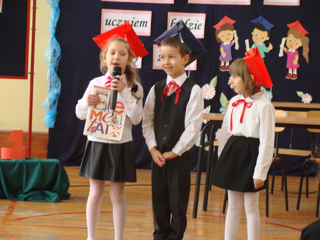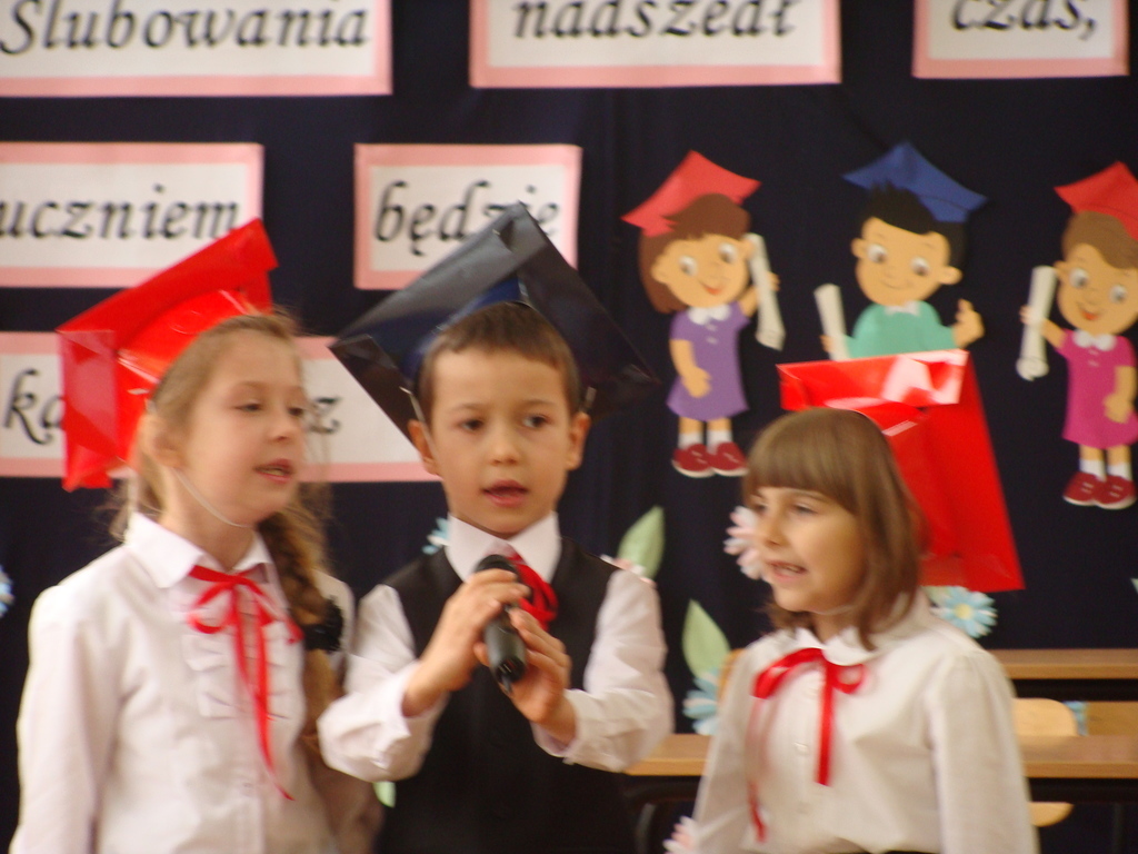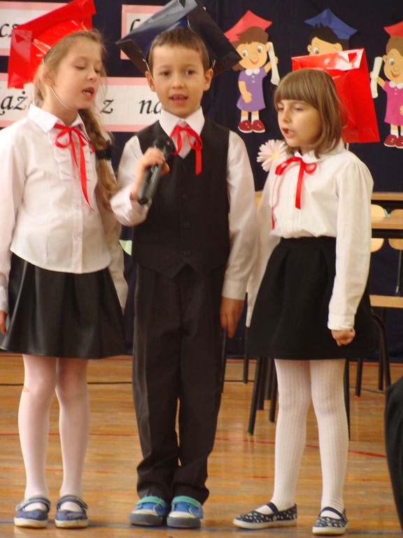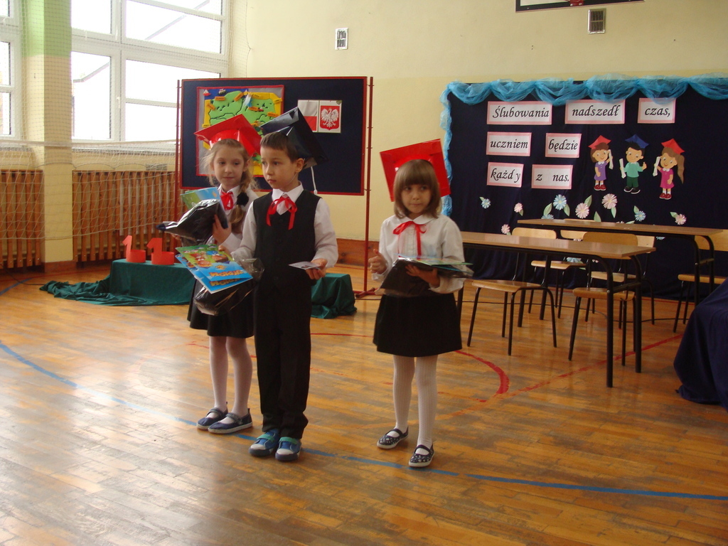 Po kilku tygodnia nauki pierwszoklasiści wykazali się wiedzą, umiejętnościami, znajomością ojczyzny i symboli narodowych, udowodnili, że poznali prawa i obowiązki ucznia, szkołę i jej otoczenie. Po wspaniale zdanym „egzaminie” uczniowie złożyli ślubowanie i zostali pasowani na uczniów przez dyrektora naszej szkoły panią Edytę Igras. Uczniowie klasy I otrzymali również pamiątkowe dyplomy, mundurki i pierwsze legitymacje. Ponadto pierwszoklasiści zostali obdarowani słodkim upominkiem przygotowanym przez rodziców. Kolejną niespodziankę dla pierwszaków przygotowali ich koledzy i koleżanki z klasy II, którzy przedstawili część artystyczną oraz wręczyli im misie – pluszaki. Uroczystość pasowania była niezwykłym przeżyciem dla wszystkich obecnych i pozostanie na długo w naszej pamięci.