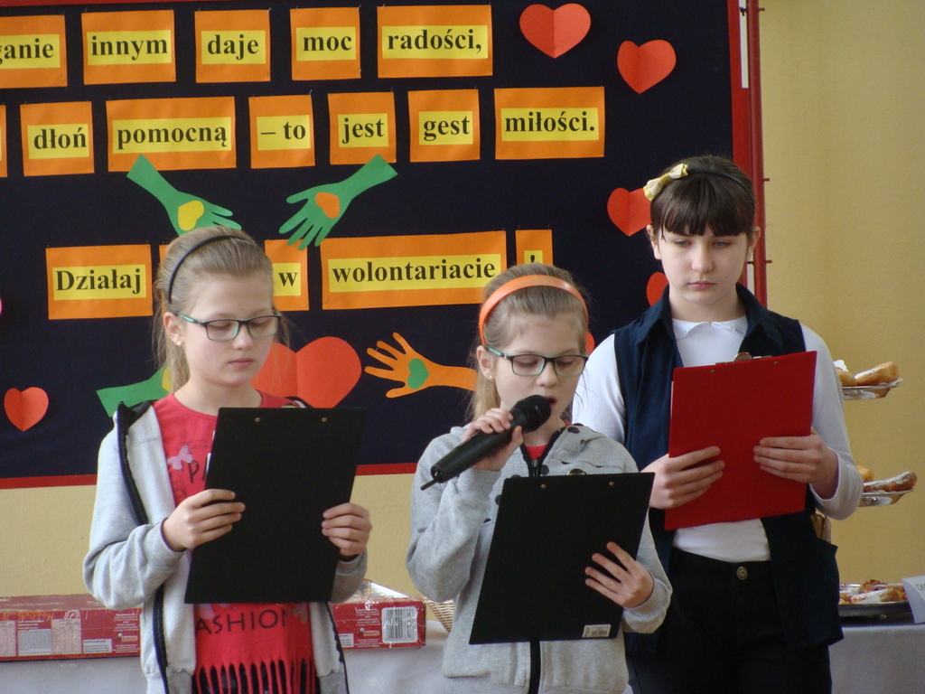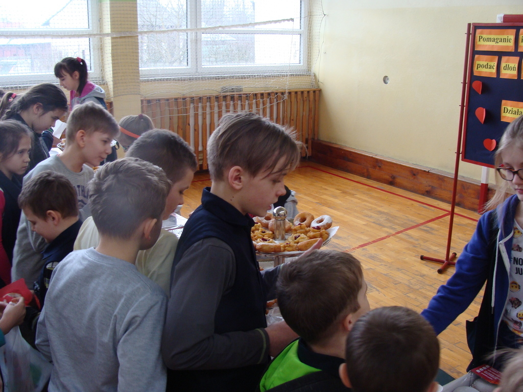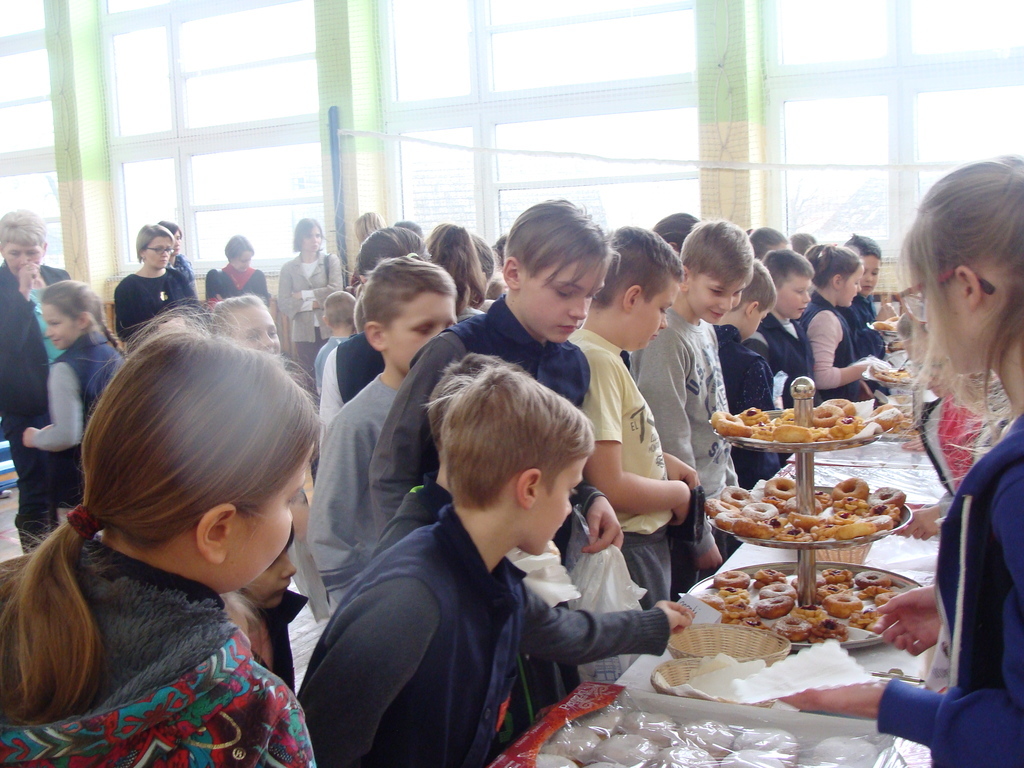 W dniu 23.02.2017 r. odbyła się w naszej szkole akcja charytatywna polegającą na sprzedaży z okazji Tłustego Czwartku pączków i innych słodkości. Zebrana w ten sposób kwota zostanie przekazana na pomoc w leczeniu chorej dziewczynki. W akcję mocno zaangażowała się Rada Rodziców i rodzice z poszczególnych klas, wszyscy nauczyciele i pracownicy szkoły, Samorząd Uczniowski oraz wszyscy uczniowie i wychowankowie.