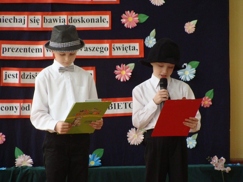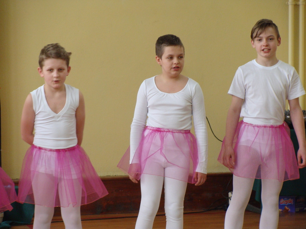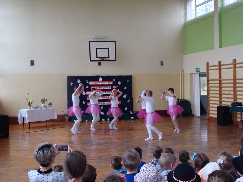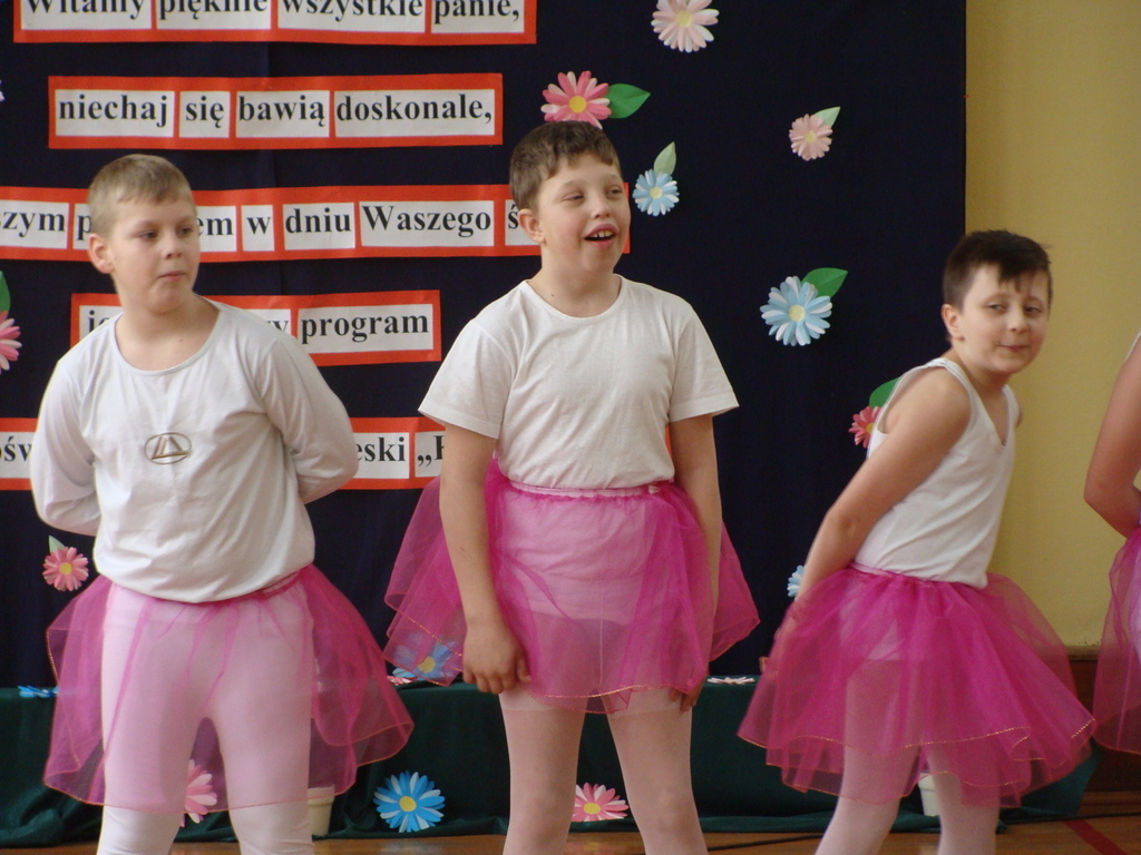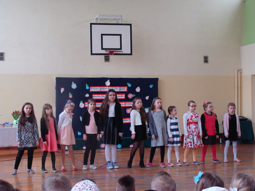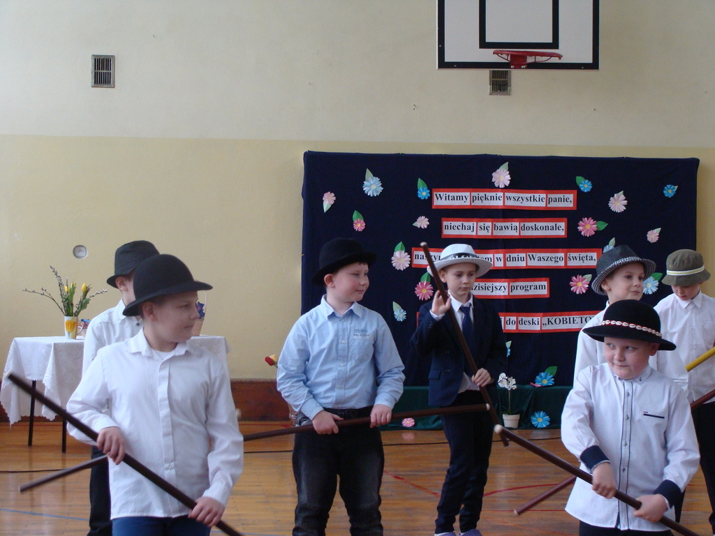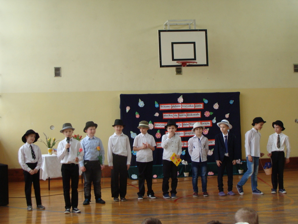Największe wrażenie na małych i dużych kobietach zrobiły tańce przygotowane przez chłopców. Wcielili się oni w baletnice z baletu "Jezioro łabędzie" oraz dżentelmenów tańczących w kapeluszach. Występy uświetniła piosenka w wykonaniu dziewczynek z klasy II i III.