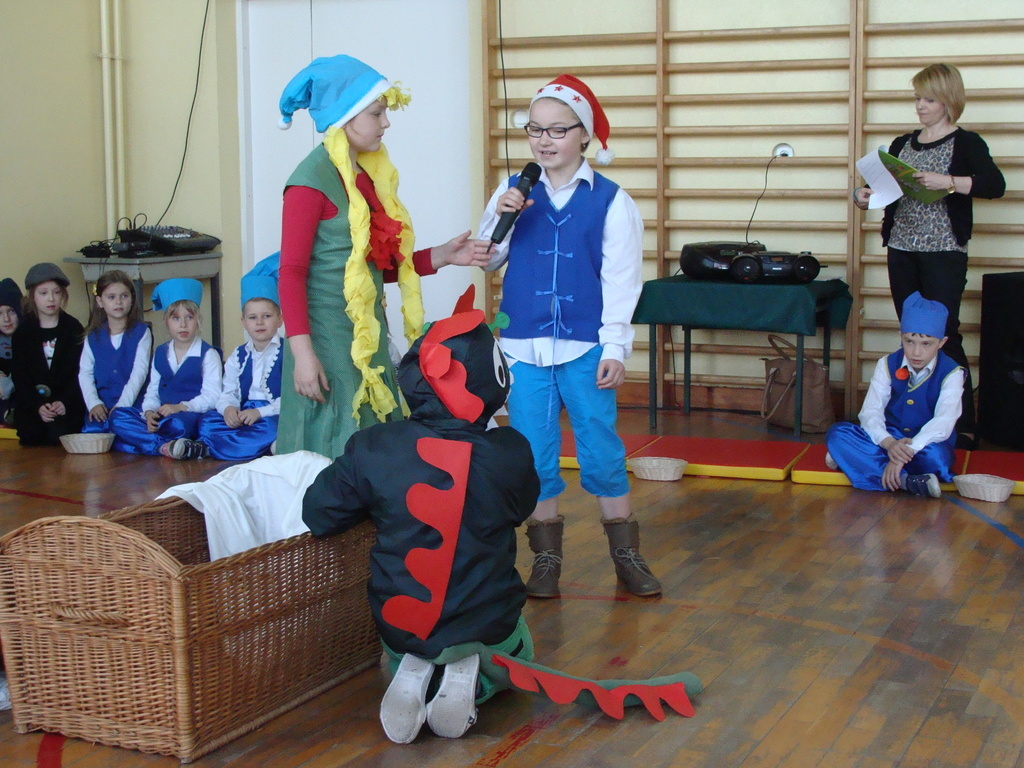 Jury w składzie p. Joanna Kasprzyk i p. Mariola Zielonka za najlepiej przygotowaną uznało scenkę uczniów klasy trzeciej, którzy zajęli 1. miejsce. 2. miejsce otrzymała klasa druga, a 3. miejsce zajęły klasy "0"-I.
