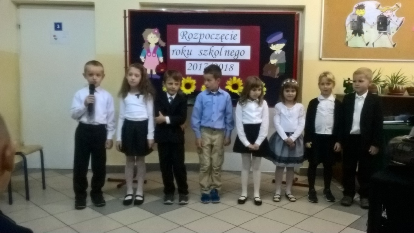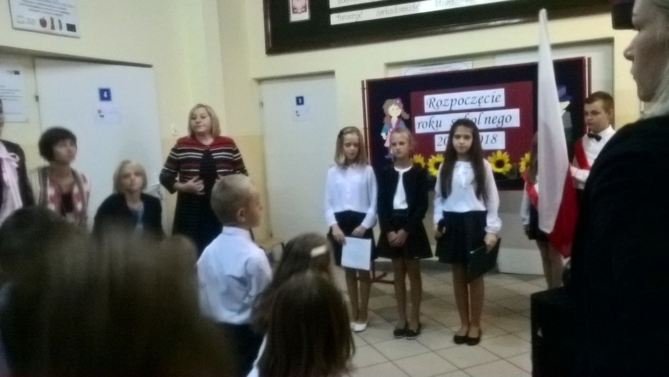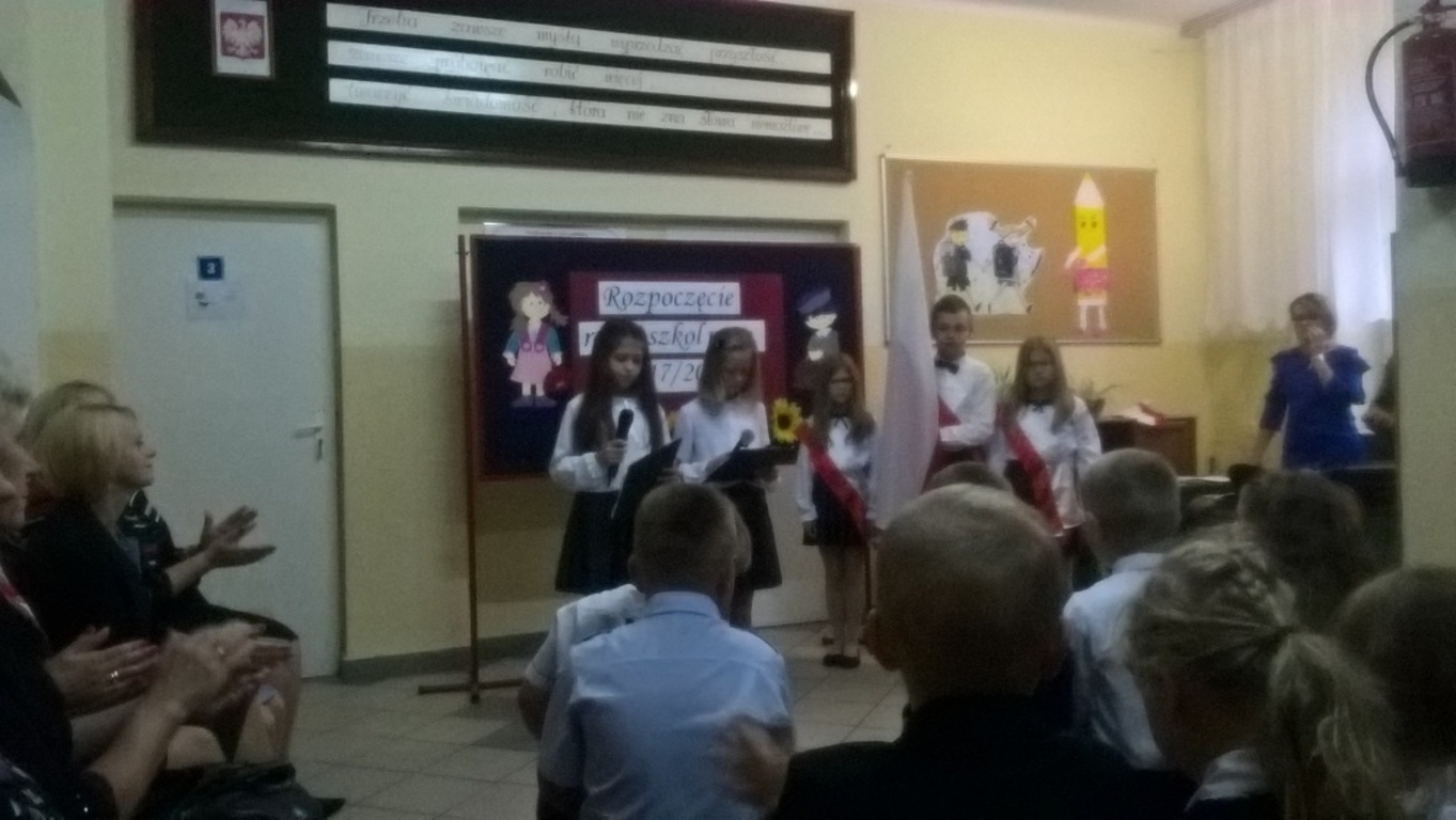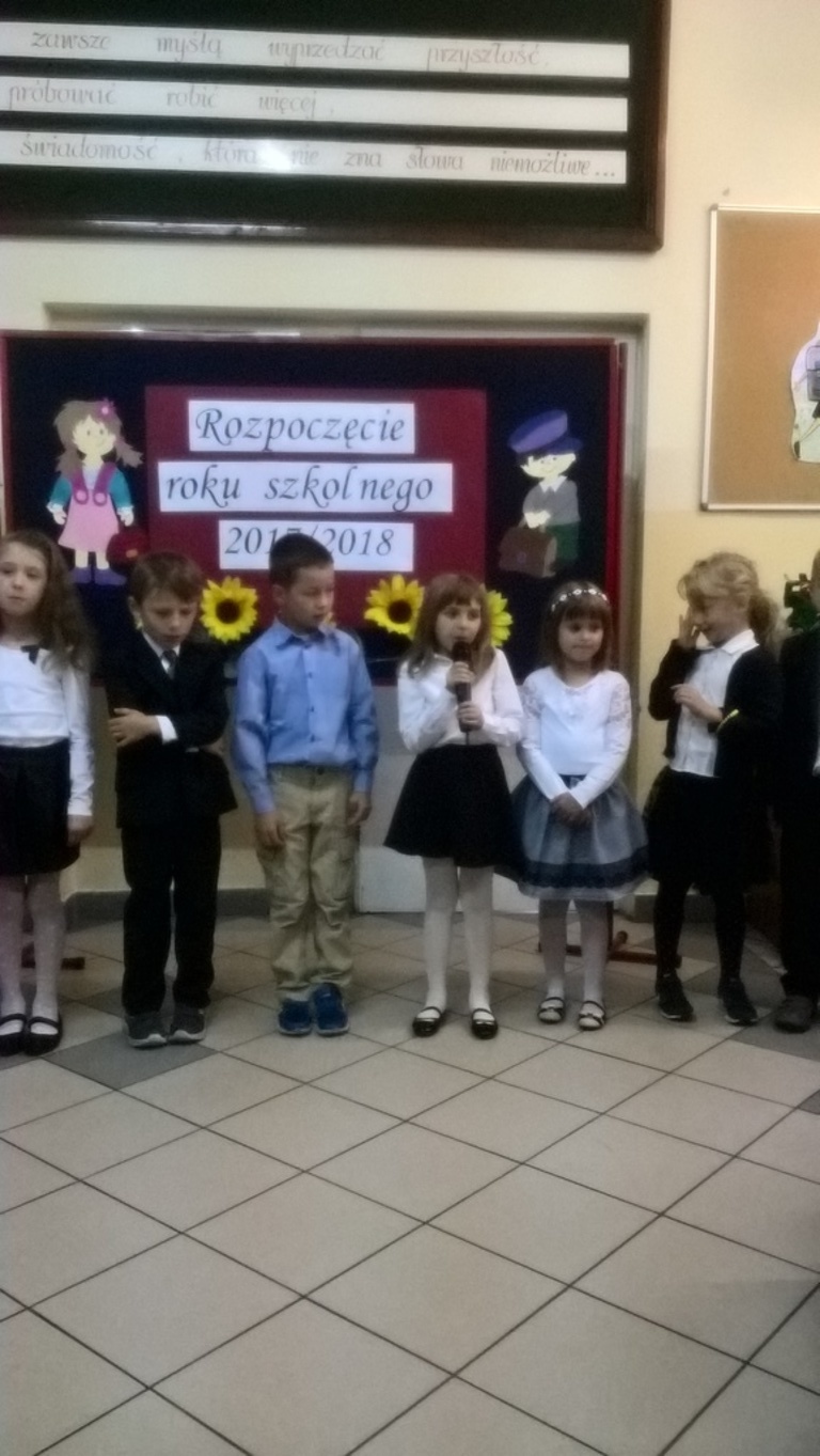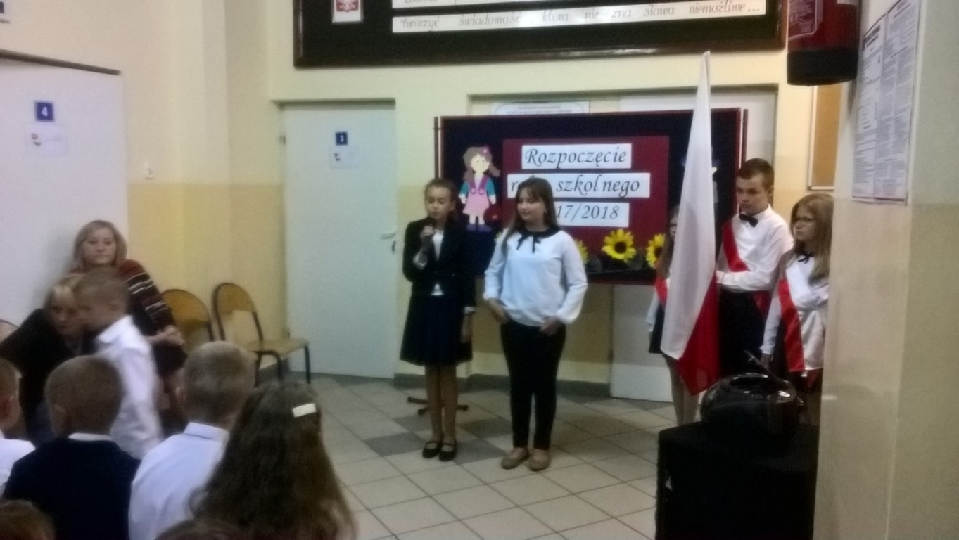 04 września 2017 rozpoczęliśmy nowy rok szkolny. Tym razem nieco niecodziennie, bo na korytarzu szkolnym, ale wszelkie niedogodności z tym związane wynagrodzi nam już wkrótce pięknie odremnontowana sala gimnastyczna. Część artystyczną w wykonaniu naszych uczniów przygotowały panie Ewa Jonik i Joanna Kasprzyk. Życzymy wszystkim samych sukcesów!