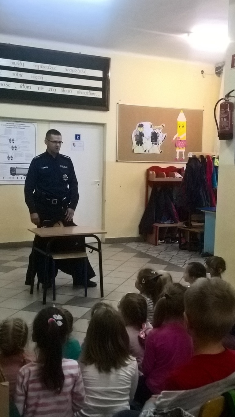 Dnia 21 września 2017r. naszą szkołę odwiedził pan policjant- dzielnicowy Jarosław Koza, który przypomniał dzieciom zasady bezpiecznego poruszania się po drogach. Wszyscy uczniowie i wychowankowie z zaciekawieniem słuchali pana policanta oraz zadawali pytania na tematy związane z bezpieczeństwem na drodze i w domu.