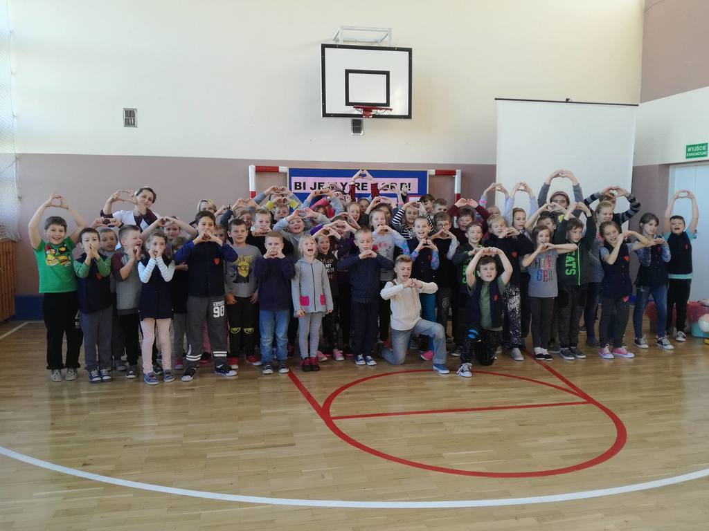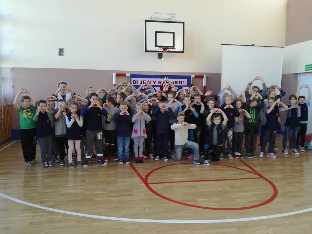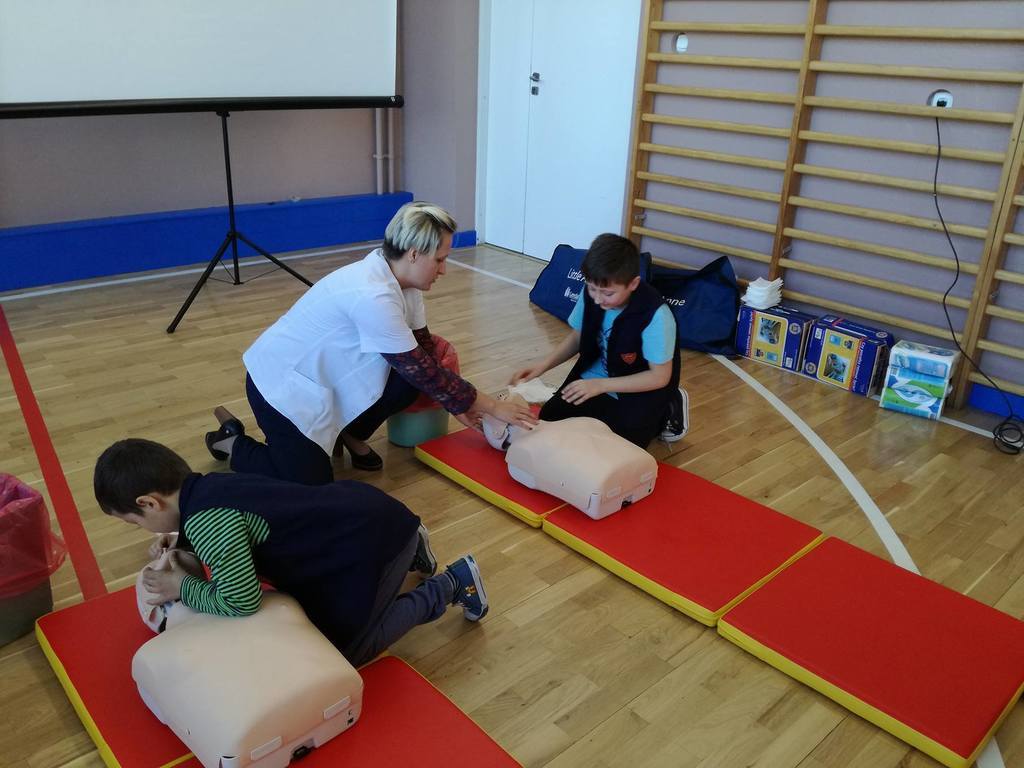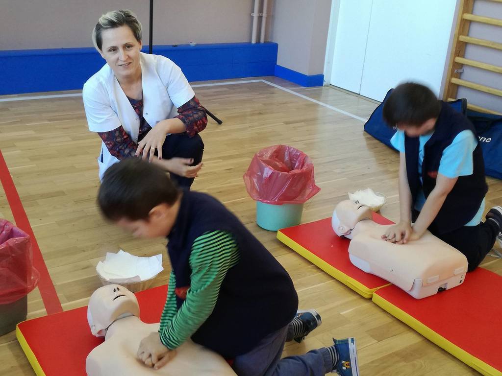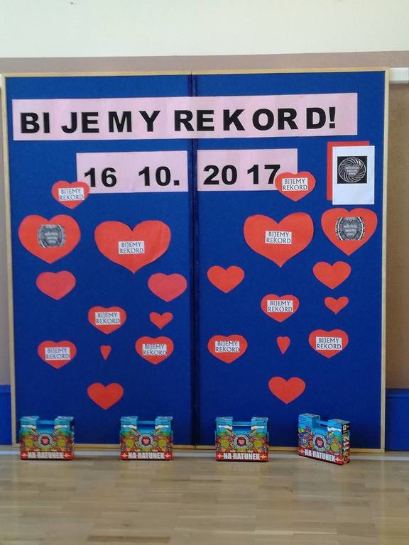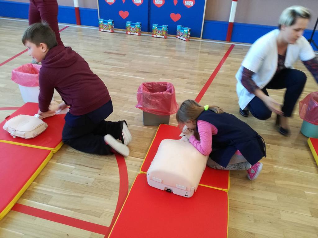 Dnia 16 października 2017r. nasza szkoła- jak co roku- dołączyła do akcji Ratujemy i Uczymy Ratować (bicie rakordu), organizowanej przez Wielką Orkiestrę Świątecznej Pomocy. W udzielaniu pierwszej pomocy wzięło udział 58 uczniów, którzy przez pół godziny ćwiczyli resyscytację krążeniowo- oddechową na pięciu fantomach.