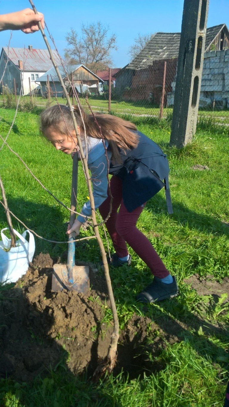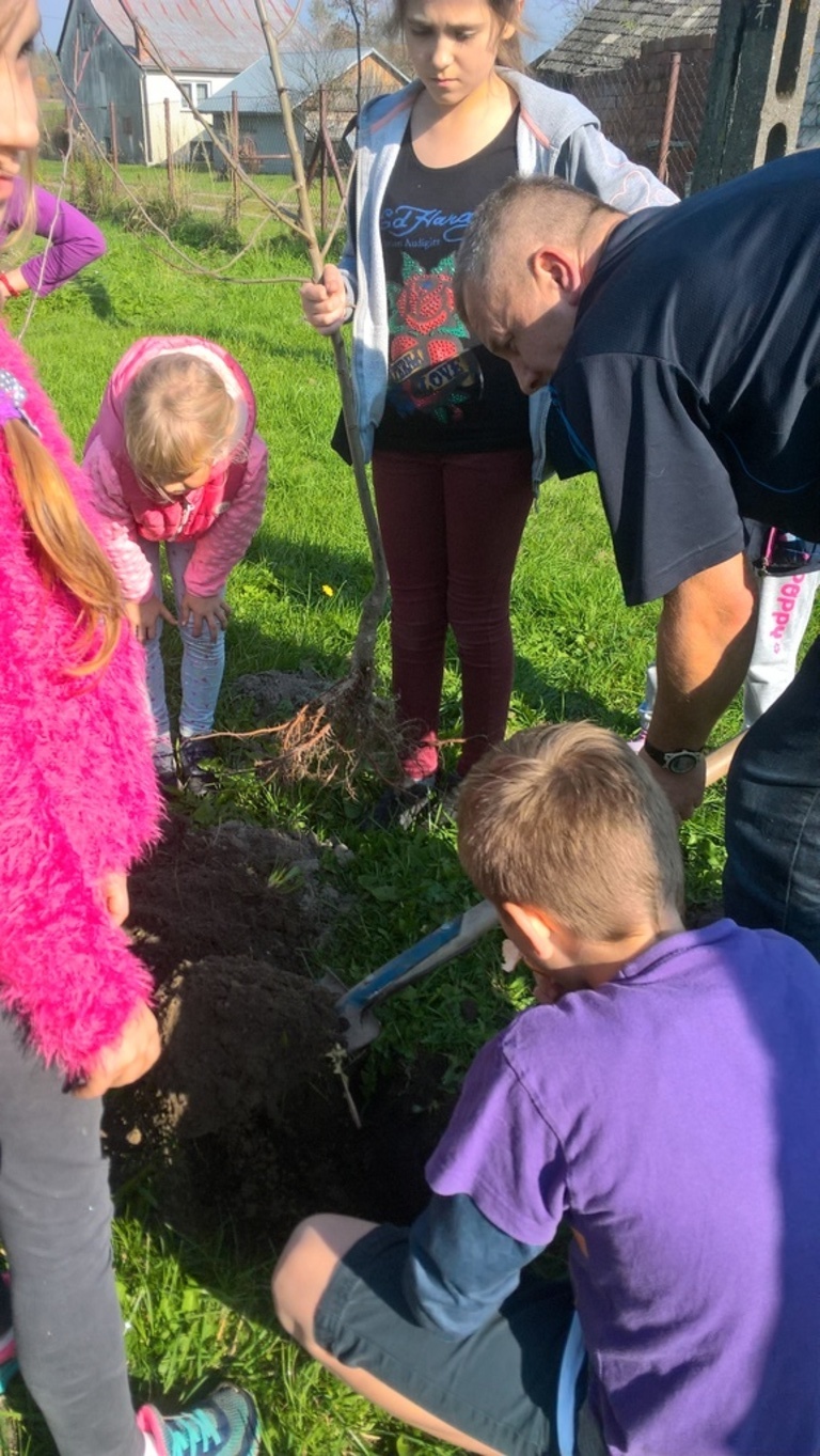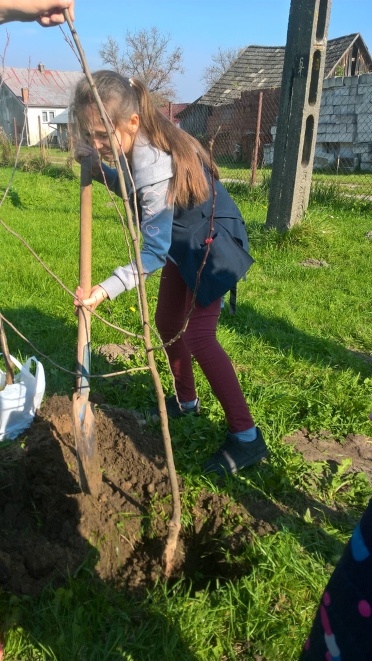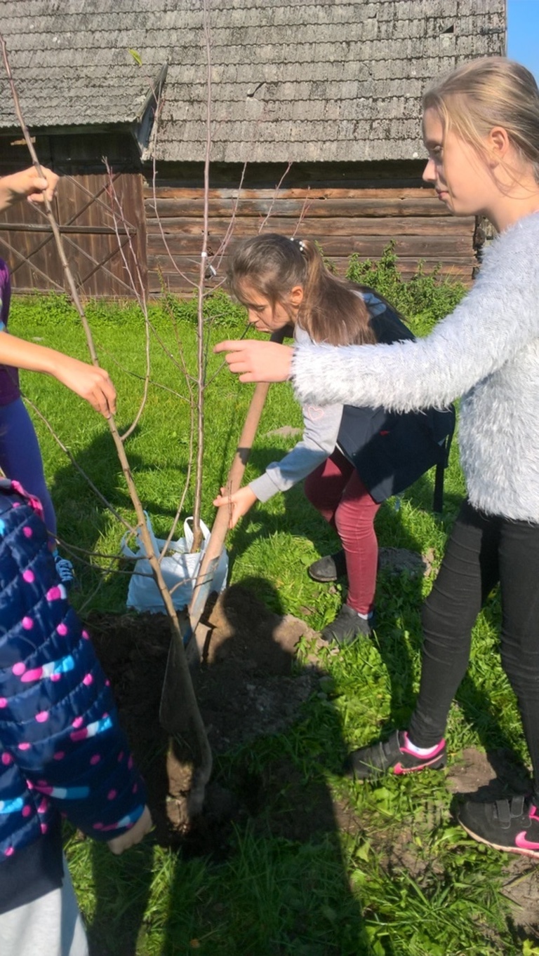 Punktem kulminacyjnym Święta Śliwki było zasadzenie w ogrodzie szkolnym dwóch odmian śliw- węgierki oraz katinki! Mamy nadzieję, że już wkrótce będziemy się cieszyć ich smacznymi owocami.