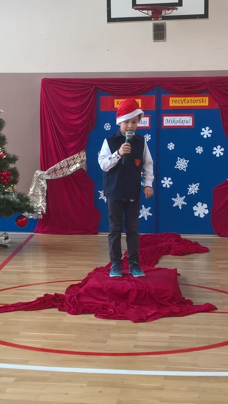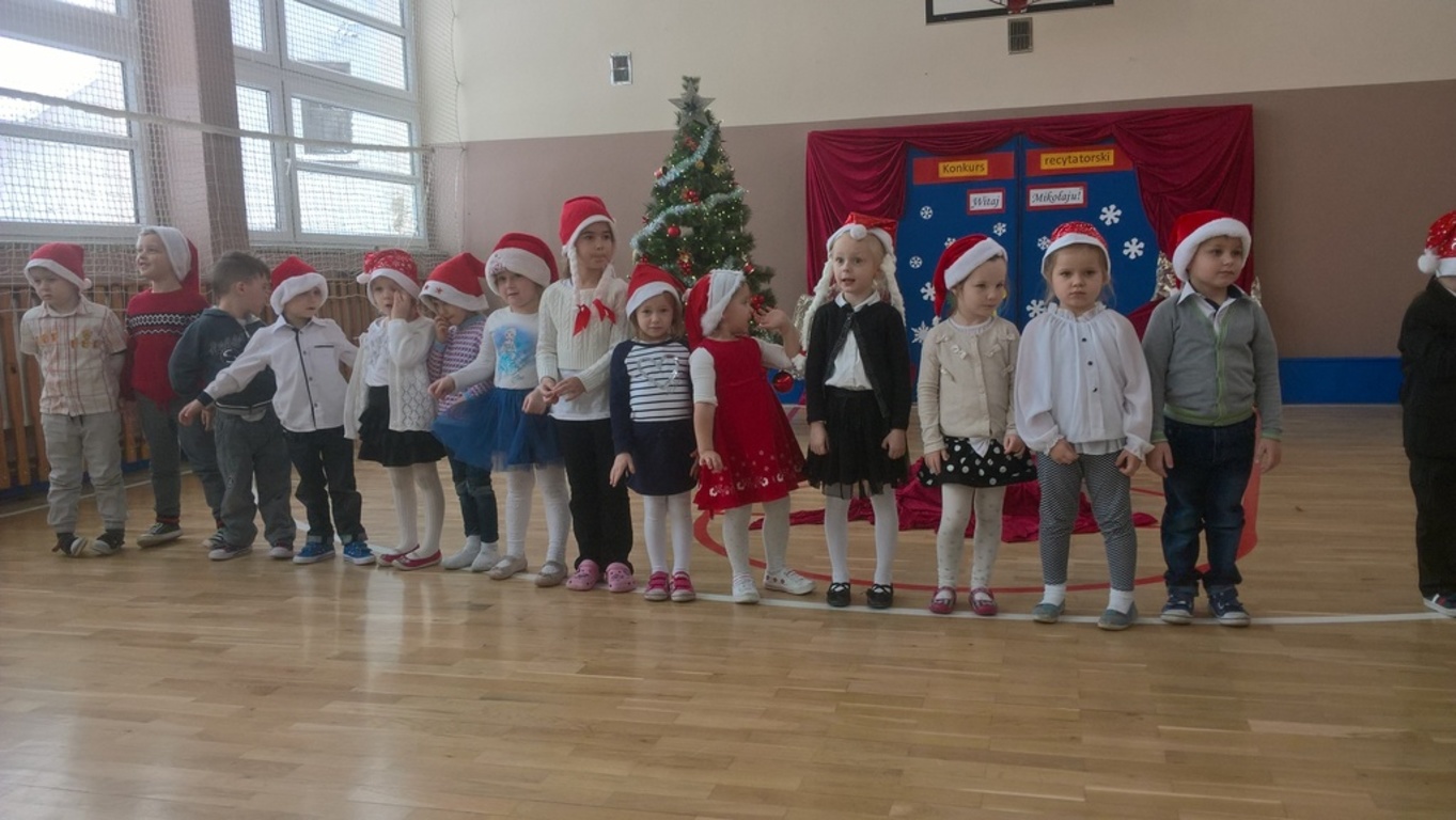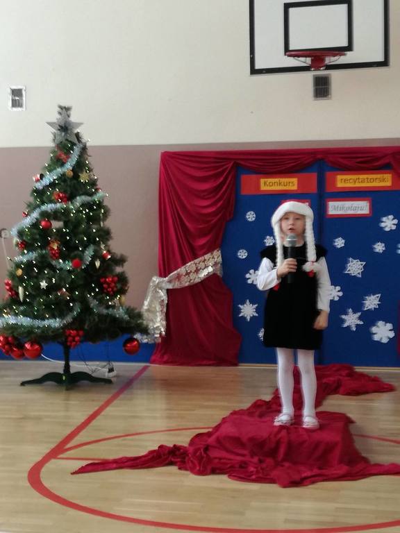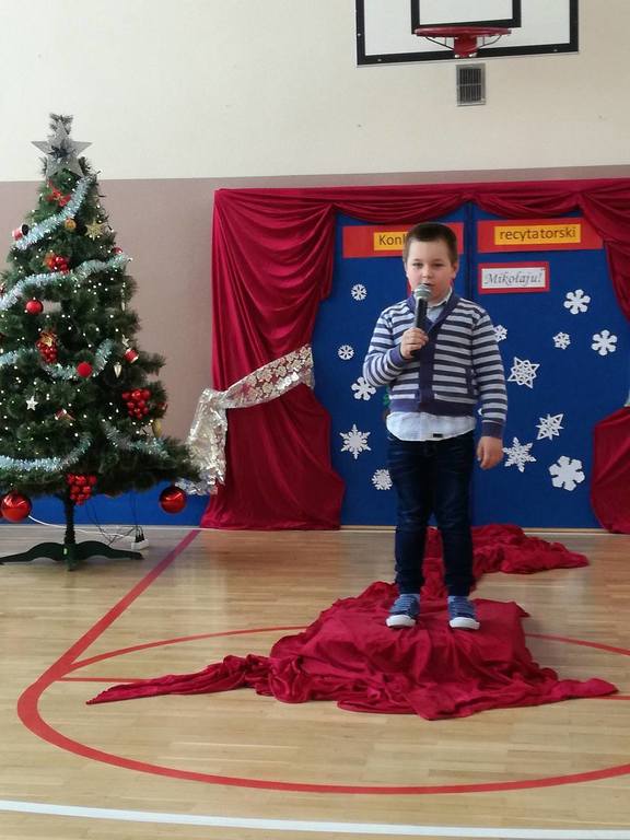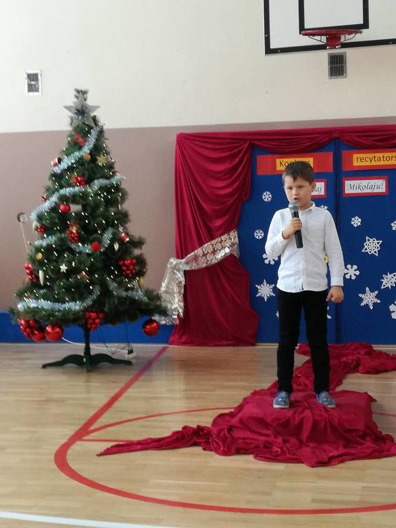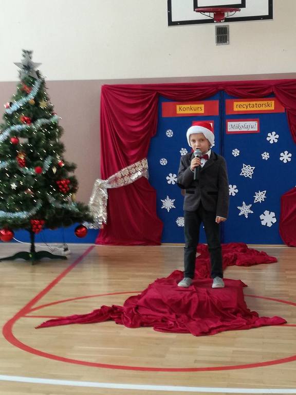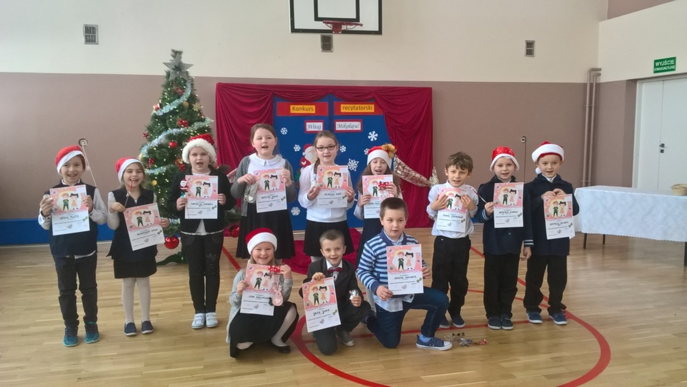 04 grudnia 2017r. odbył się konkurs recytatorski pod hasłem "Witaj Mikołaju". W konkursie brali udział uczniowie oddziałów 0-III oraz wychowankowie oddziału przedszkolnego.Najmłodsi uczestnicy zostali nagrodzeni za sam udział i przełamanie tremy, związanej z występem przed publicznością, natomiast dzieci z oddziałów 0-III walczyły o tytuł "Najlepszego recytatora wierszy".