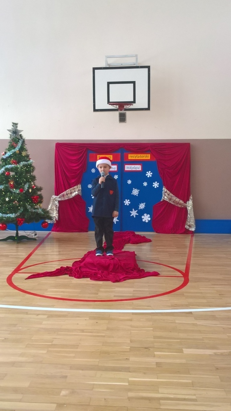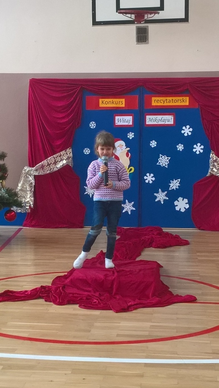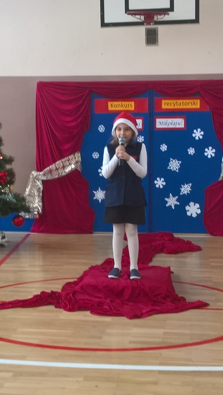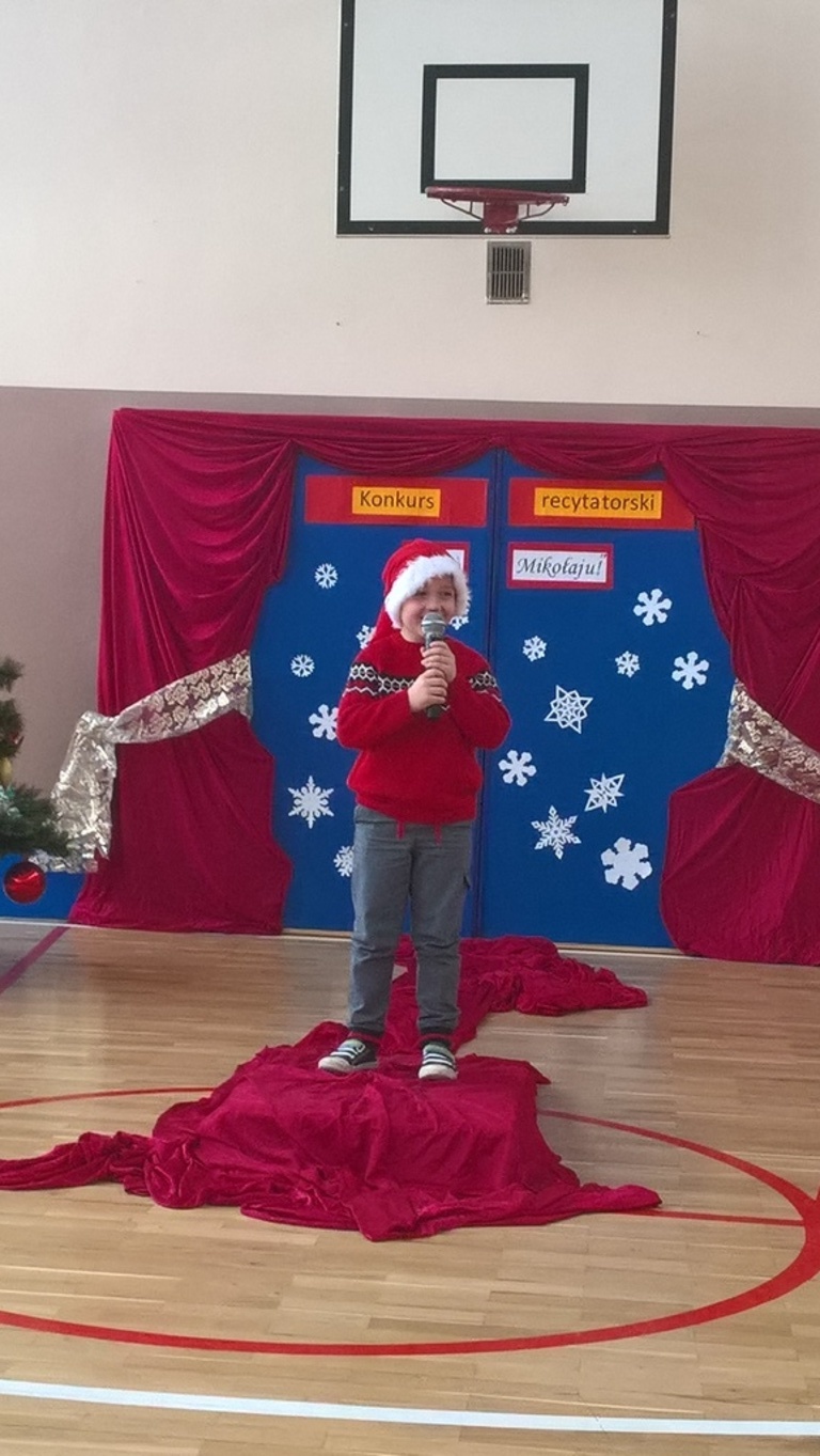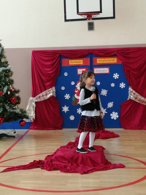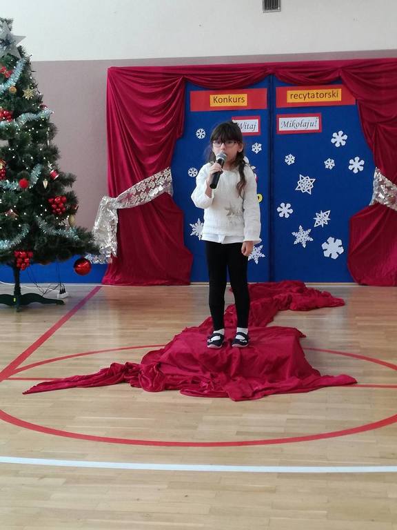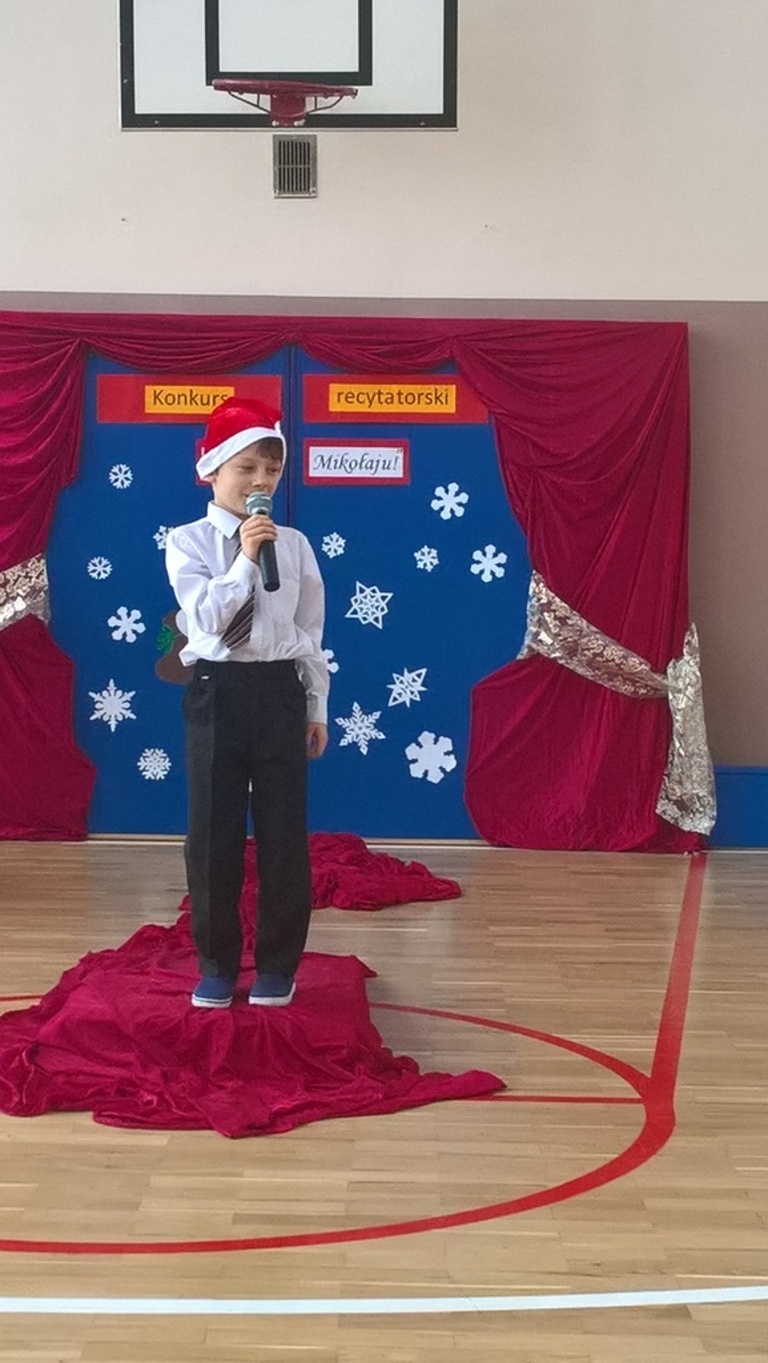 04 grudnia 2017r. odbył się konkurs recytatorski pod hasłem "Witaj Mikołaju". W konkursie brali udział uczniowie oddziałów 0-III oraz wychowankowie oddziału przedszkolnego.Najmłodsi uczestnicy zostali nagrodzeni za sam udział i przełamanie tremy, związanej z występem przed publicznością, natomiast dzieci z oddziałów 0-III walczyły o tytuł "Najlepszego recytatora wierszy".