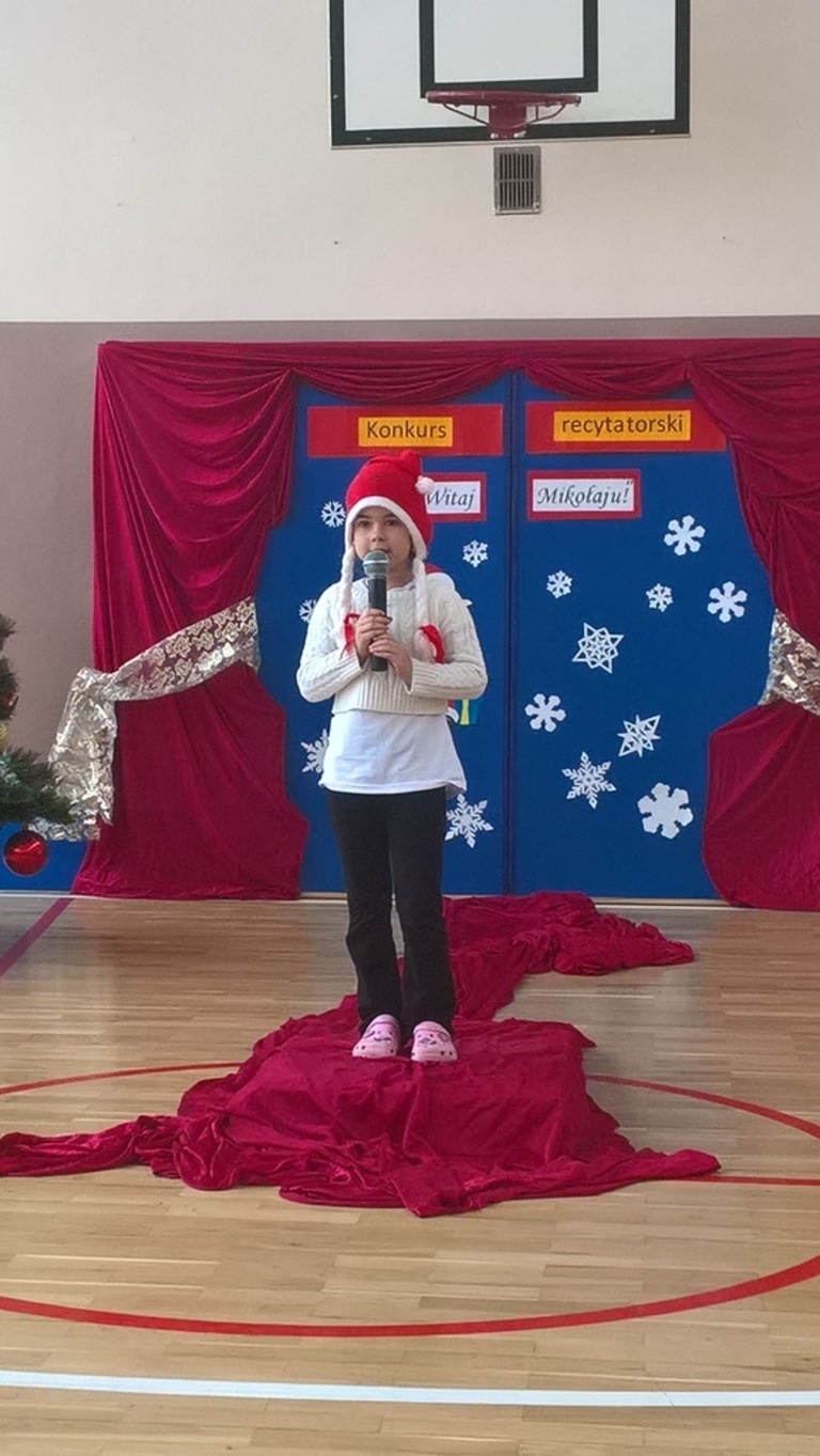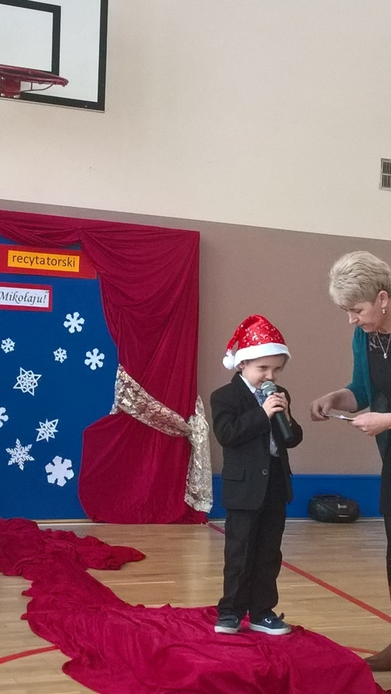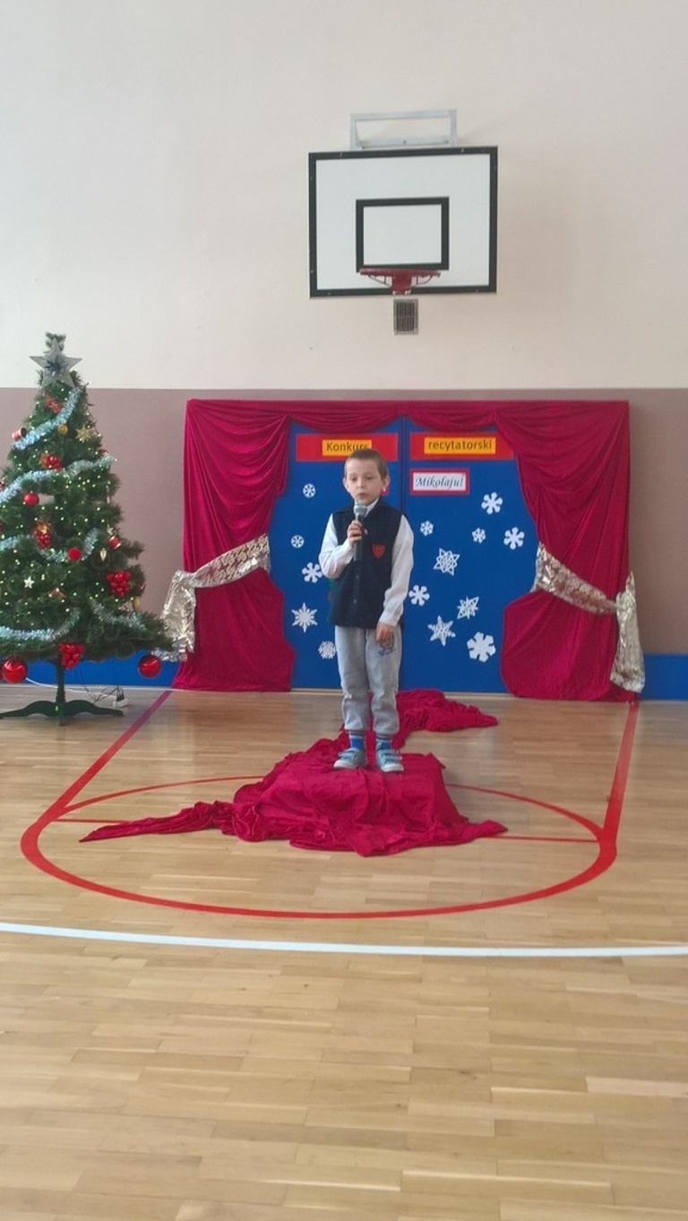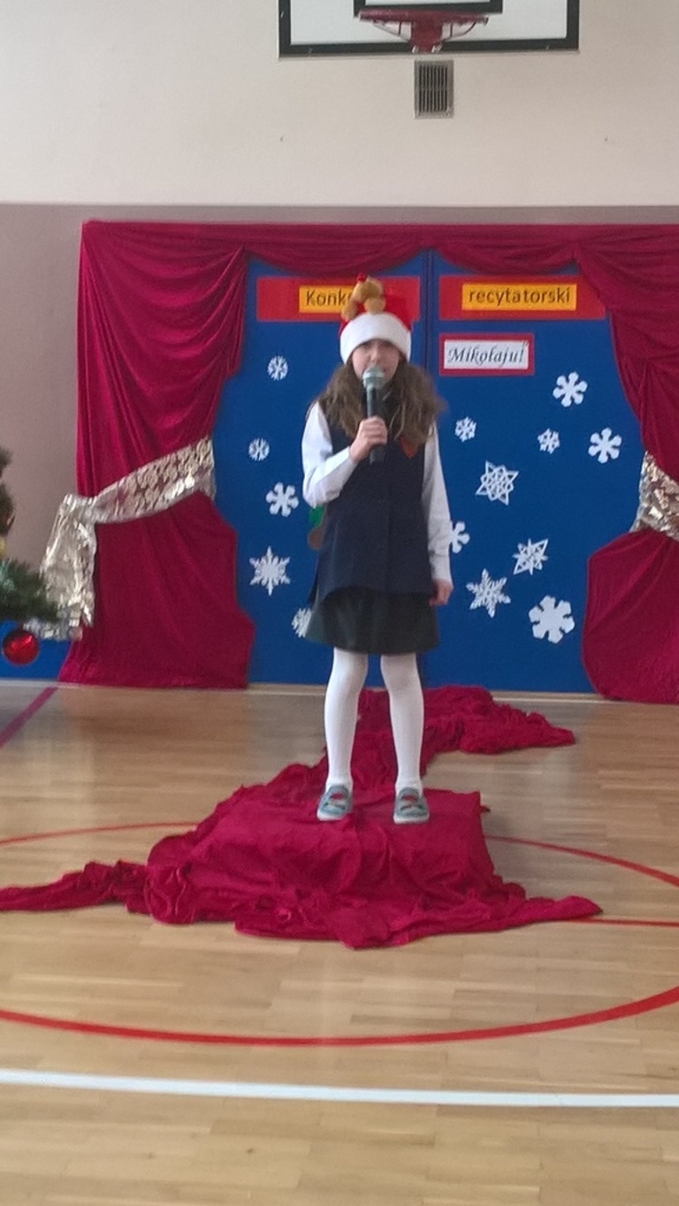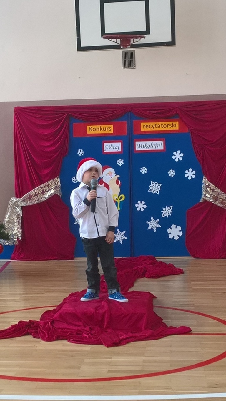 04 grudnia 2017r. odbył się konkurs recytatorski pod hasłem "Witaj Mikołaju". W konkursie brali udział uczniowie oddziałów 0-III oraz wychowankowie oddziału przedszkolnego.Najmłodsi uczestnicy zostali nagrodzeni za sam udział i przełamanie tremy, związanej z występem przed publicznością, natomiast dzieci z oddziałów 0-III walczyły o tytuł "Najlepszego recytatora wierszy".